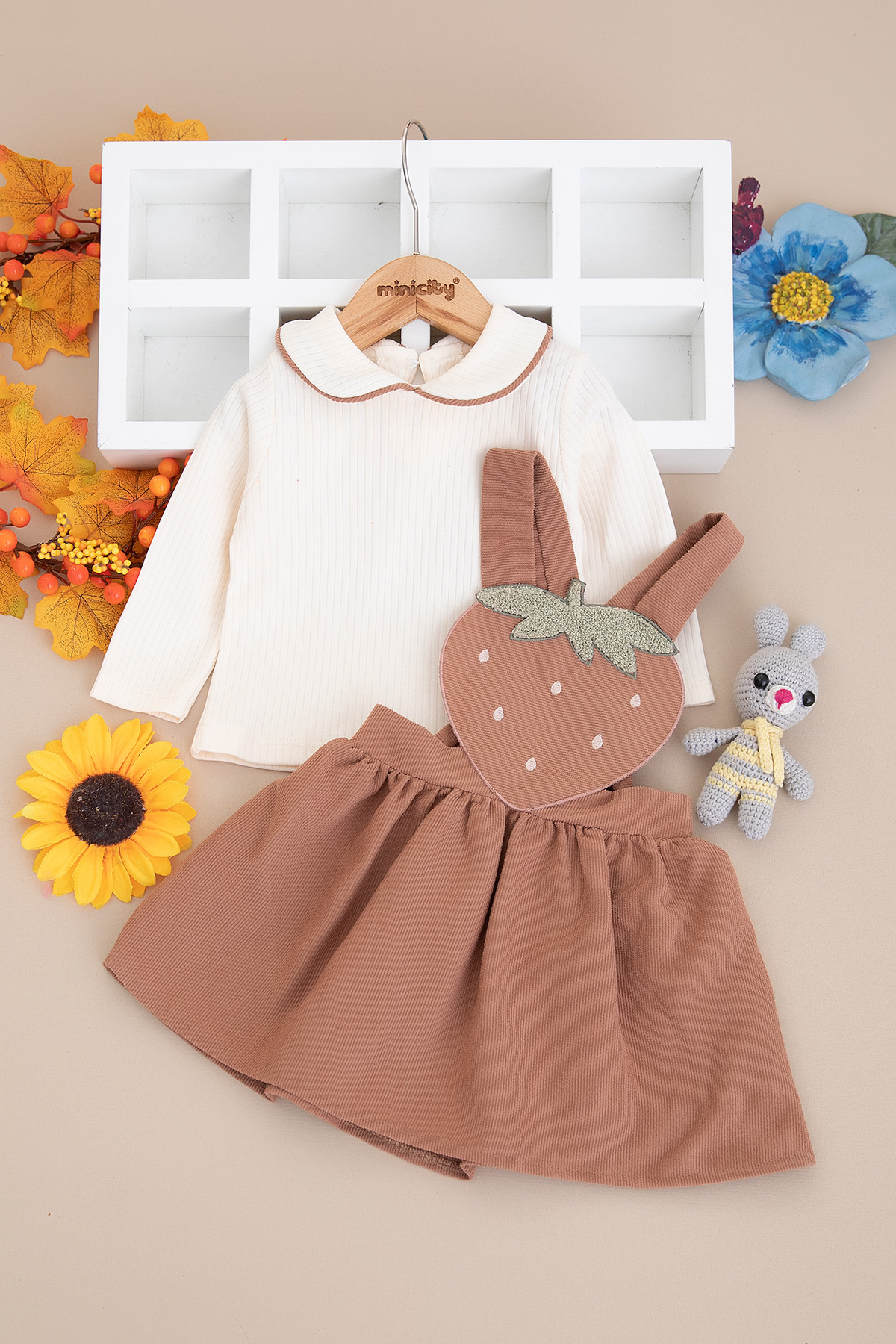 Kız Bebek Çilek Aplikeli Kadife Salopet - 3205 (9-24 Ay)