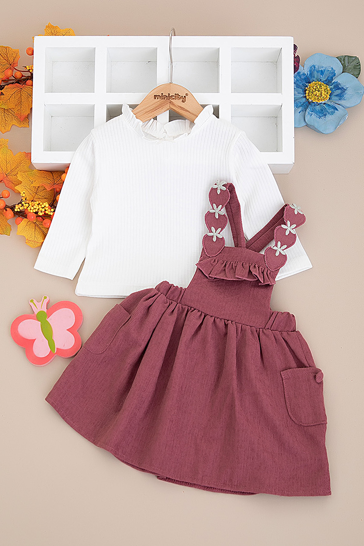 Kız Bebek Çilek Askılı Cepli Salopet - 3212 (9-24 Ay)