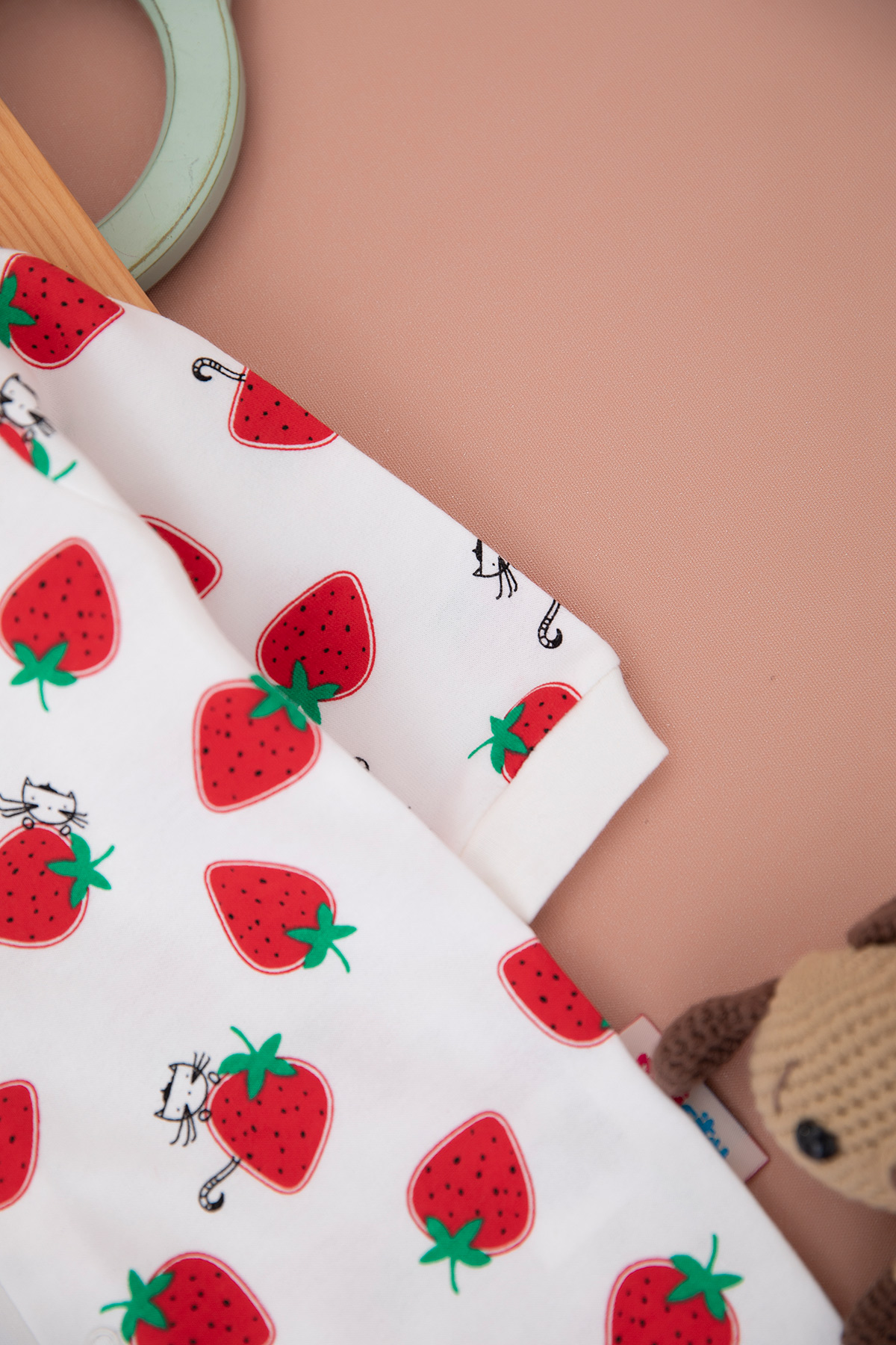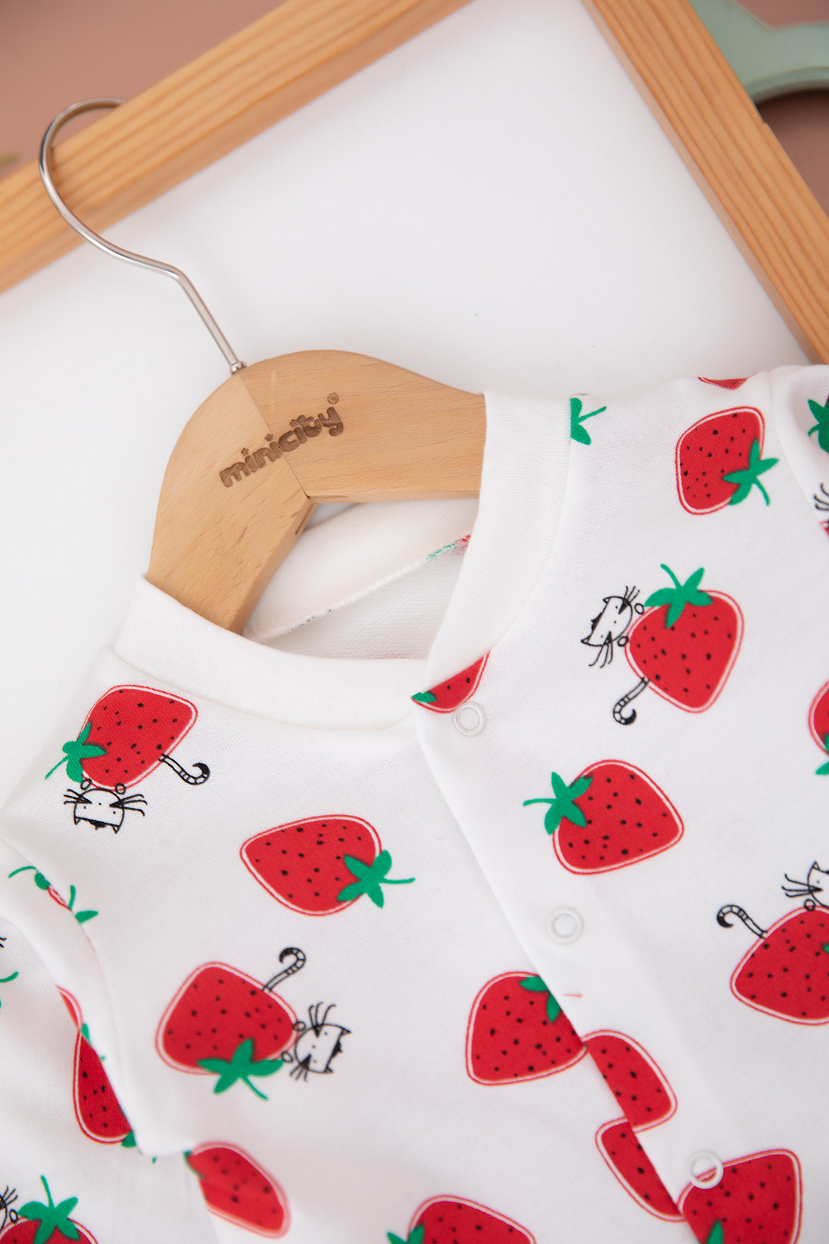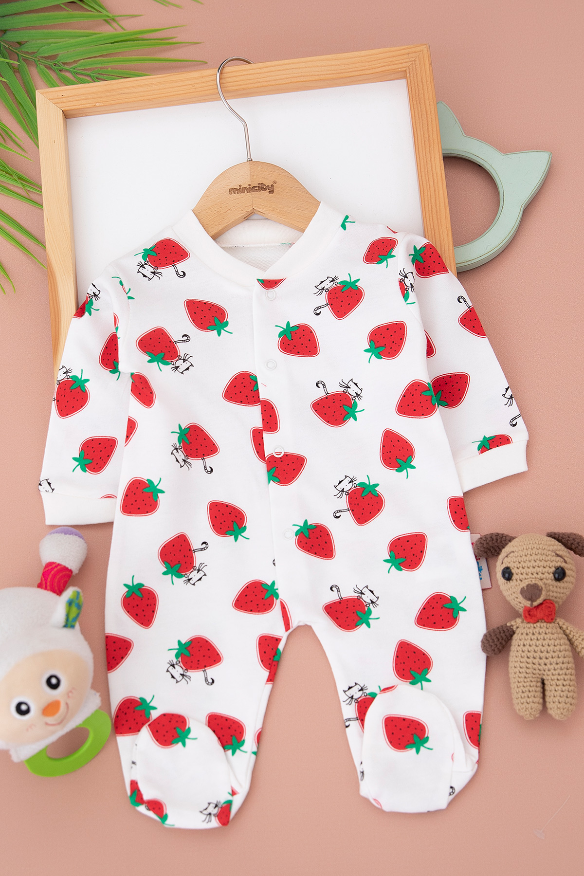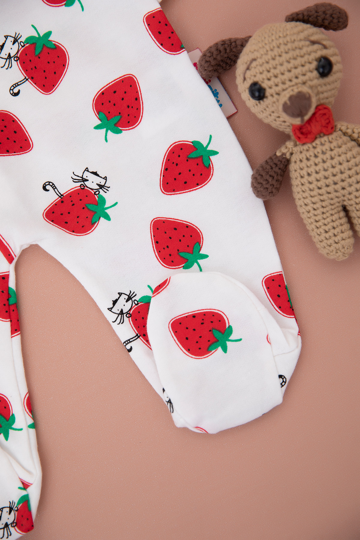 Kız Bebek Çilek Baskılı Patikli Tulum - 1892 (3-9 Ay)