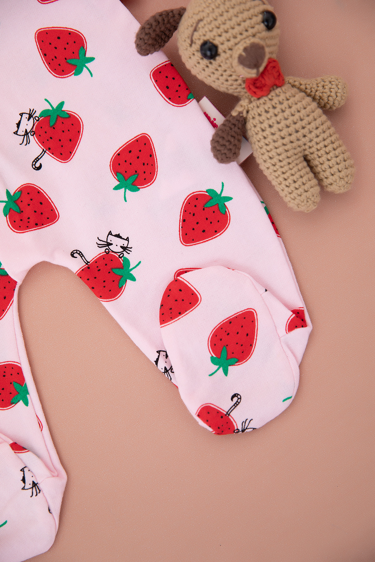 Kız Bebek Çilek Baskılı Patikli Tulum - 1892 (3-9 Ay)