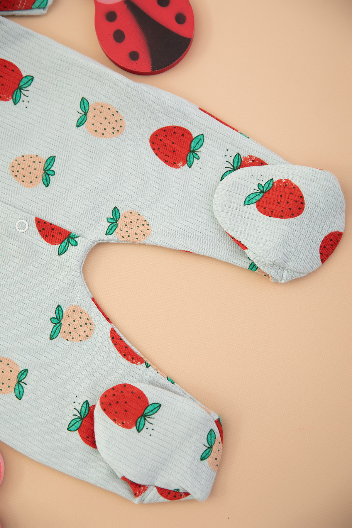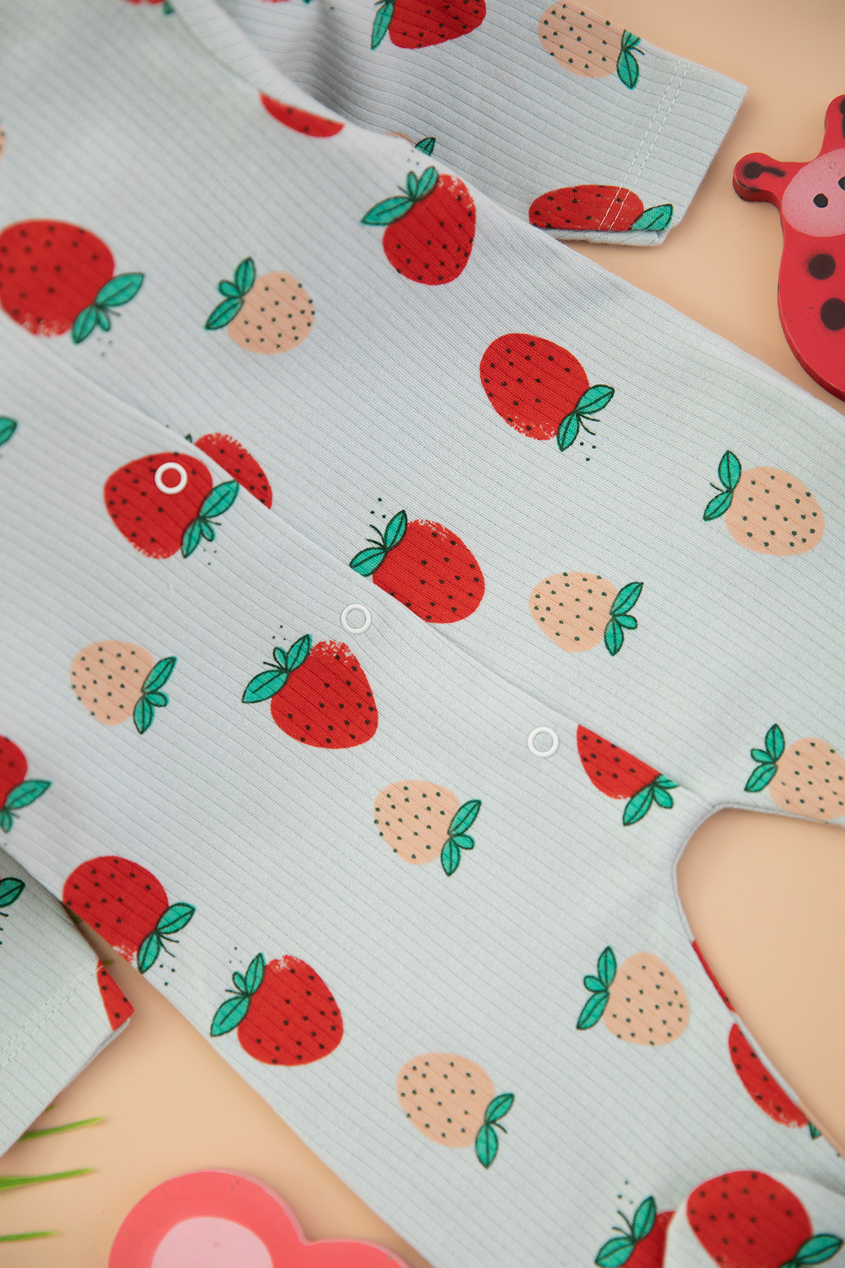Kız Bebek Çilek Baskılı Patikli Tulum - 1892 (3-9 Ay)