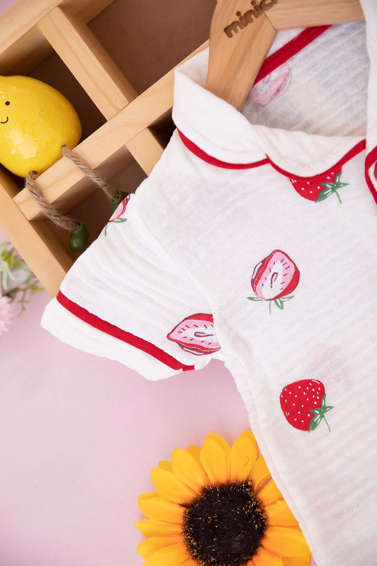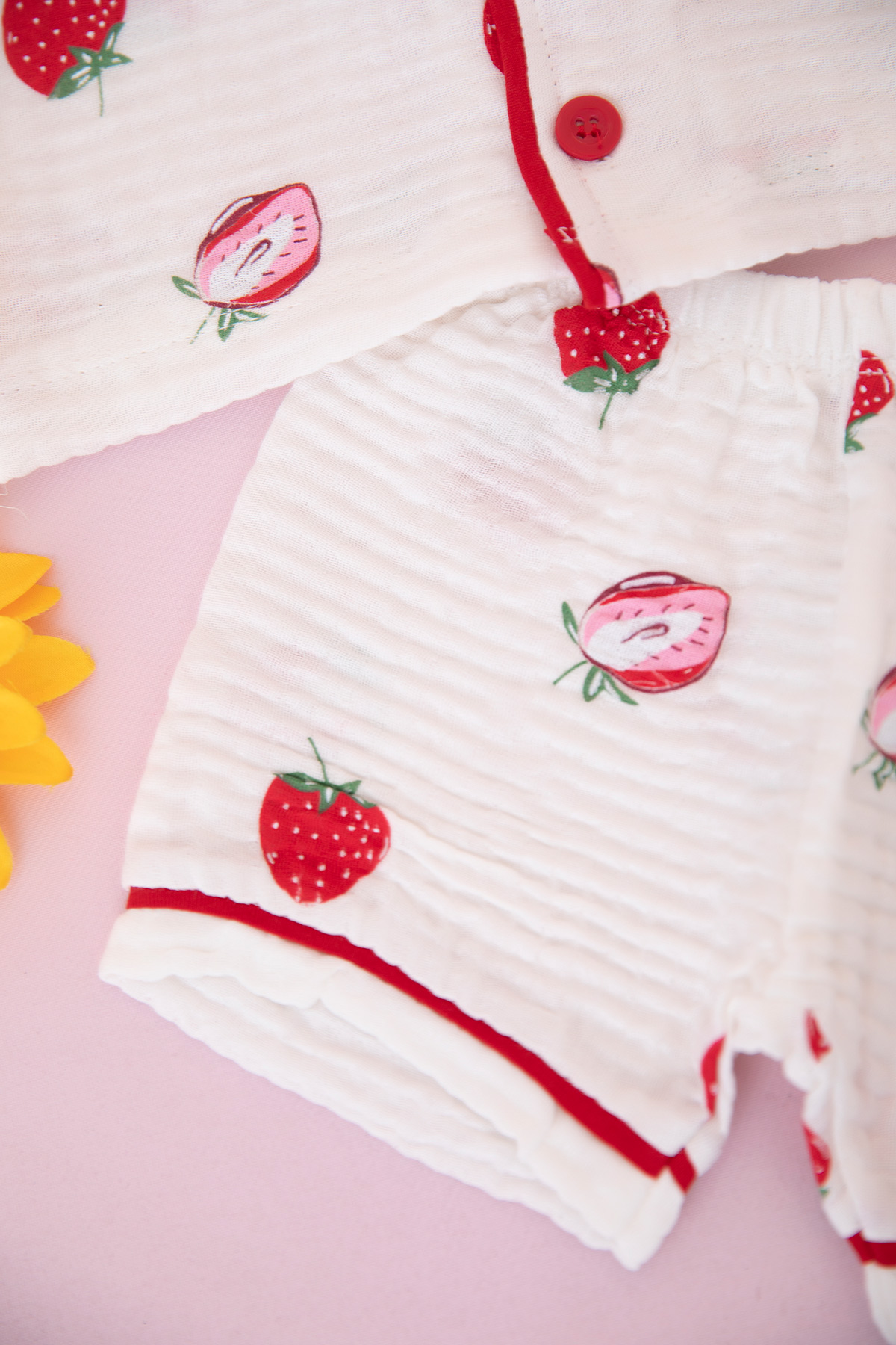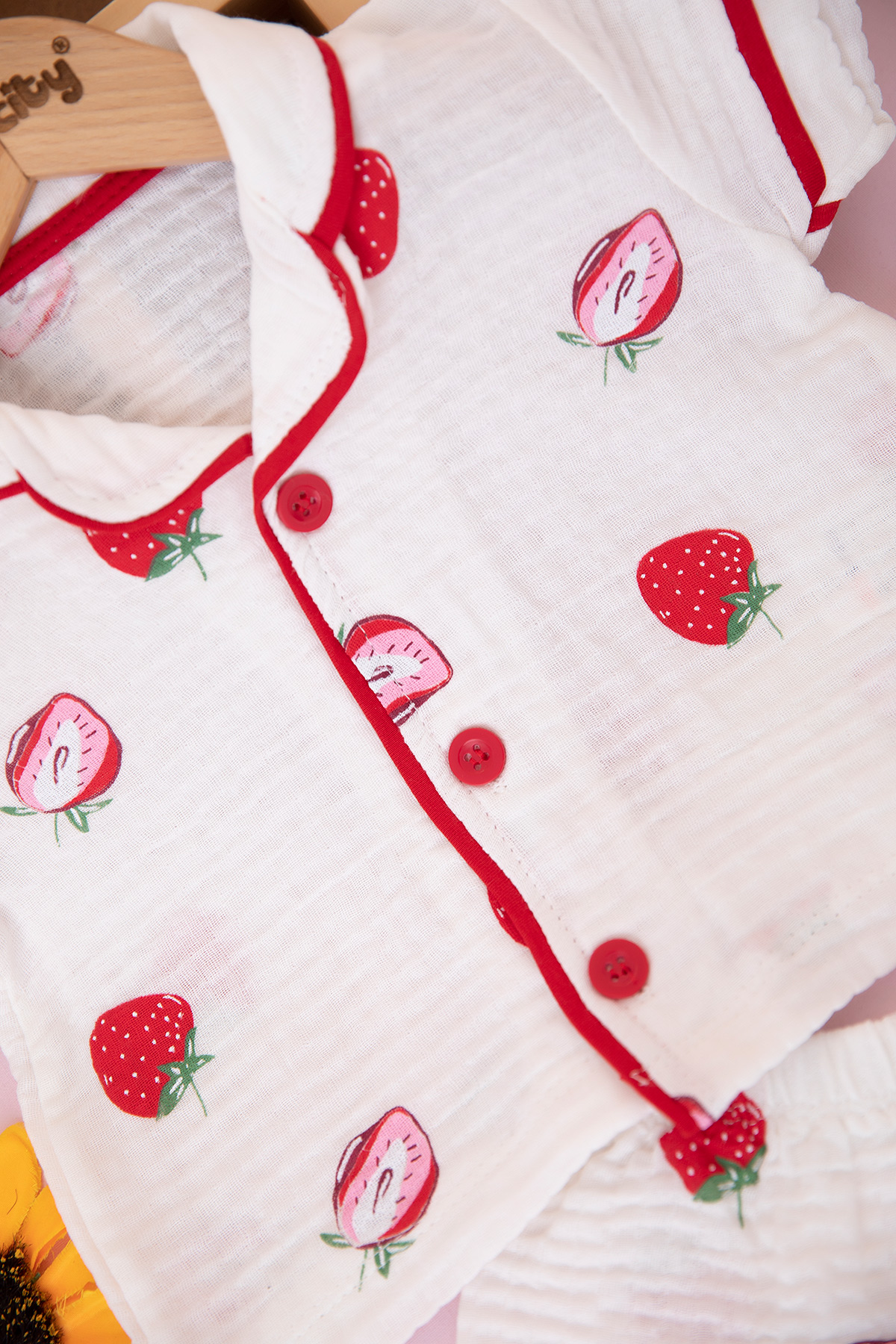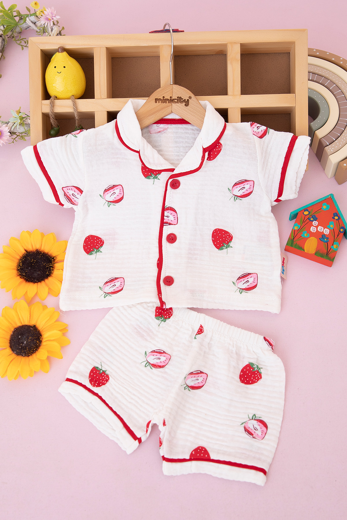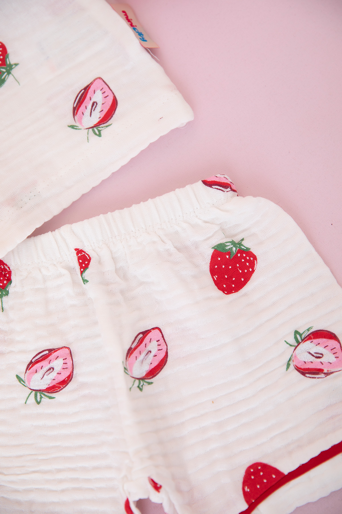 Kız Bebek Çilek Müslin Şortlu Pijama Takım - 6087 (6-24 Ay)
