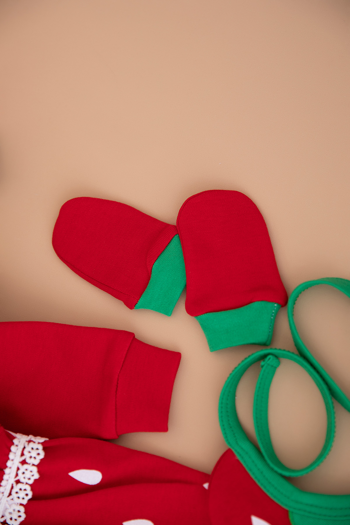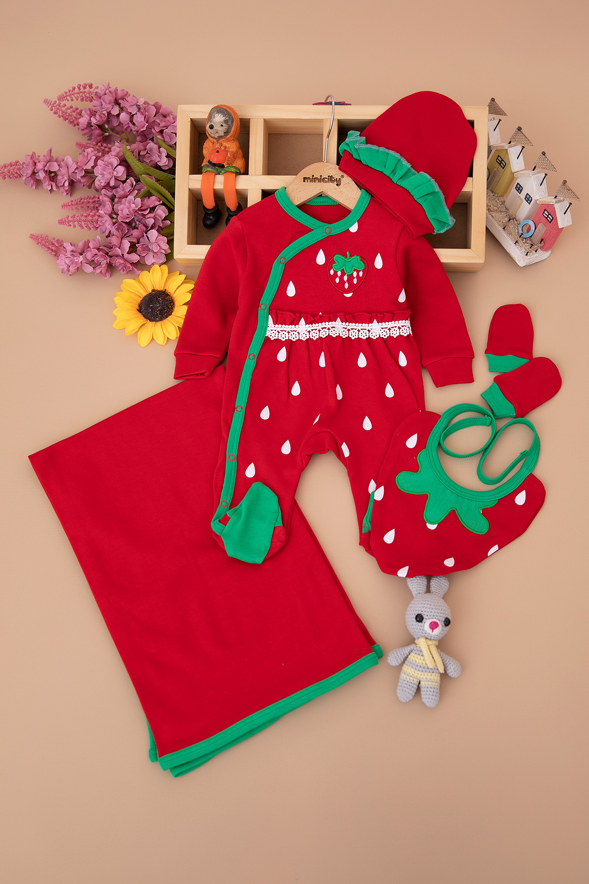 Kız Bebek Çilek Nakışlı 5 Li Tulum Set - 234 (0-3 Ay)