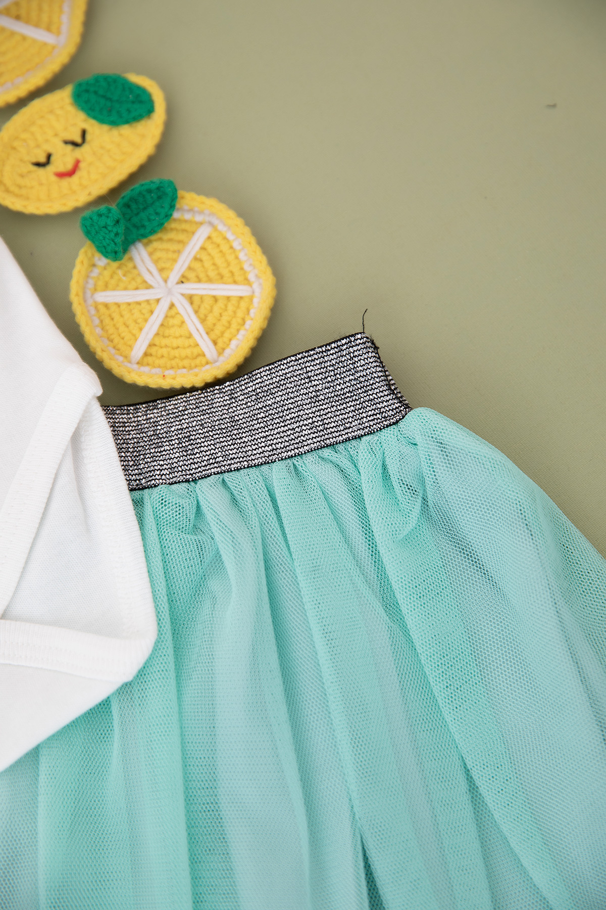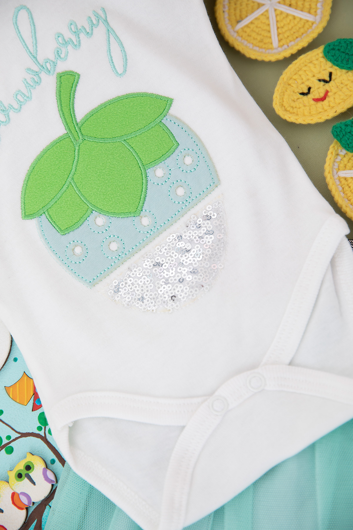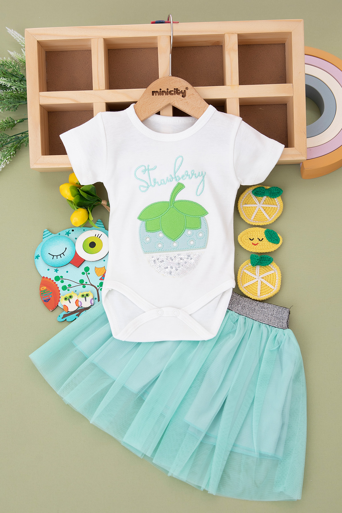 Kız Bebek Çilek Nakışlı Badi Tüllü Etek Takım - 3276 (3-9 Ay)