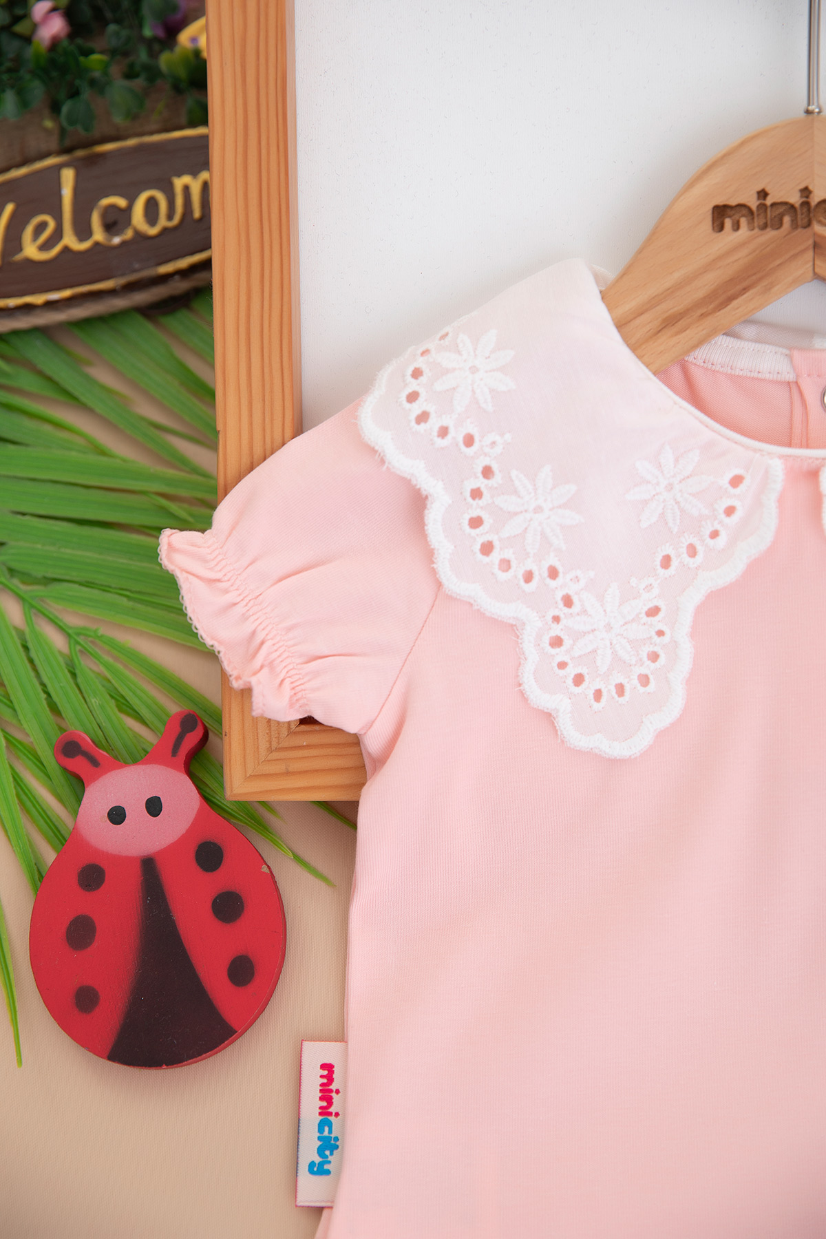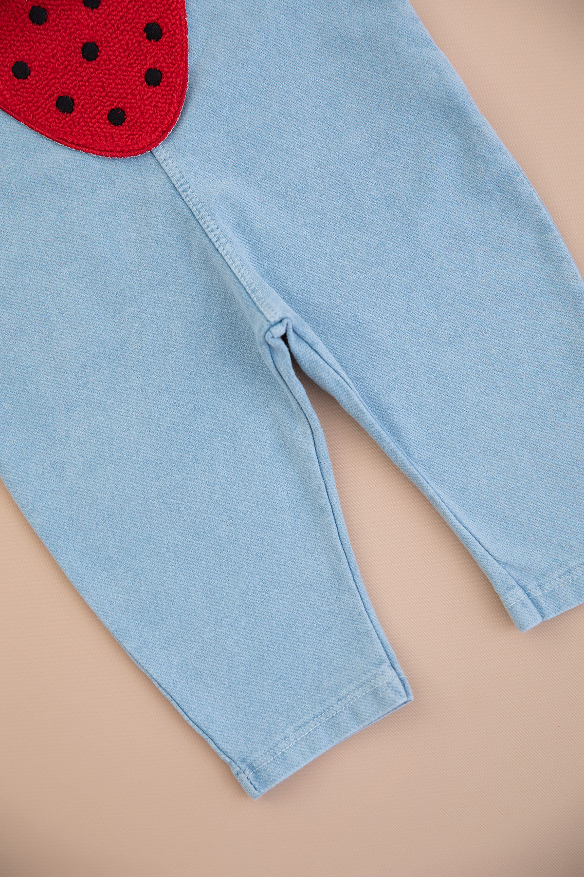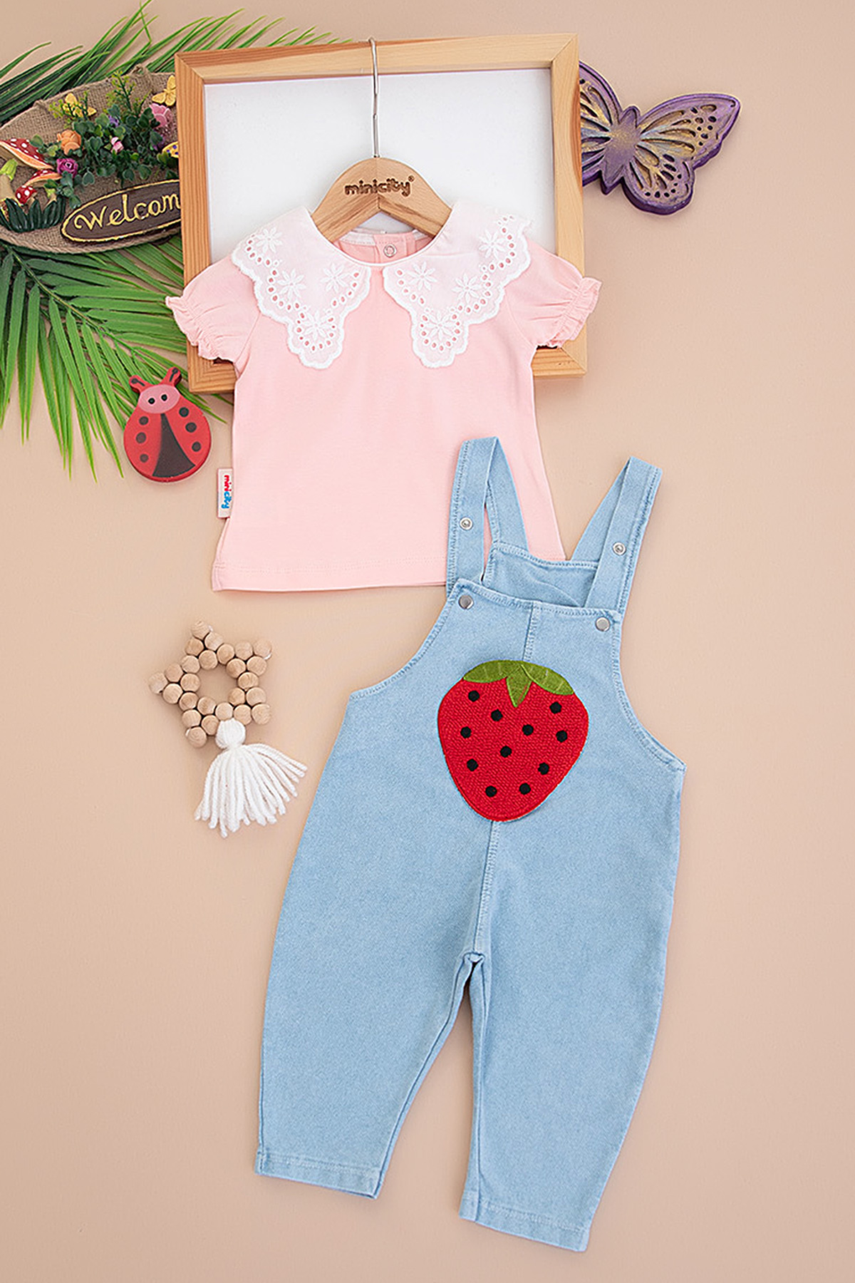Kız Bebek Çilek Nakışlı Badili Kot Salopet - 0222 (6-18 Ay)