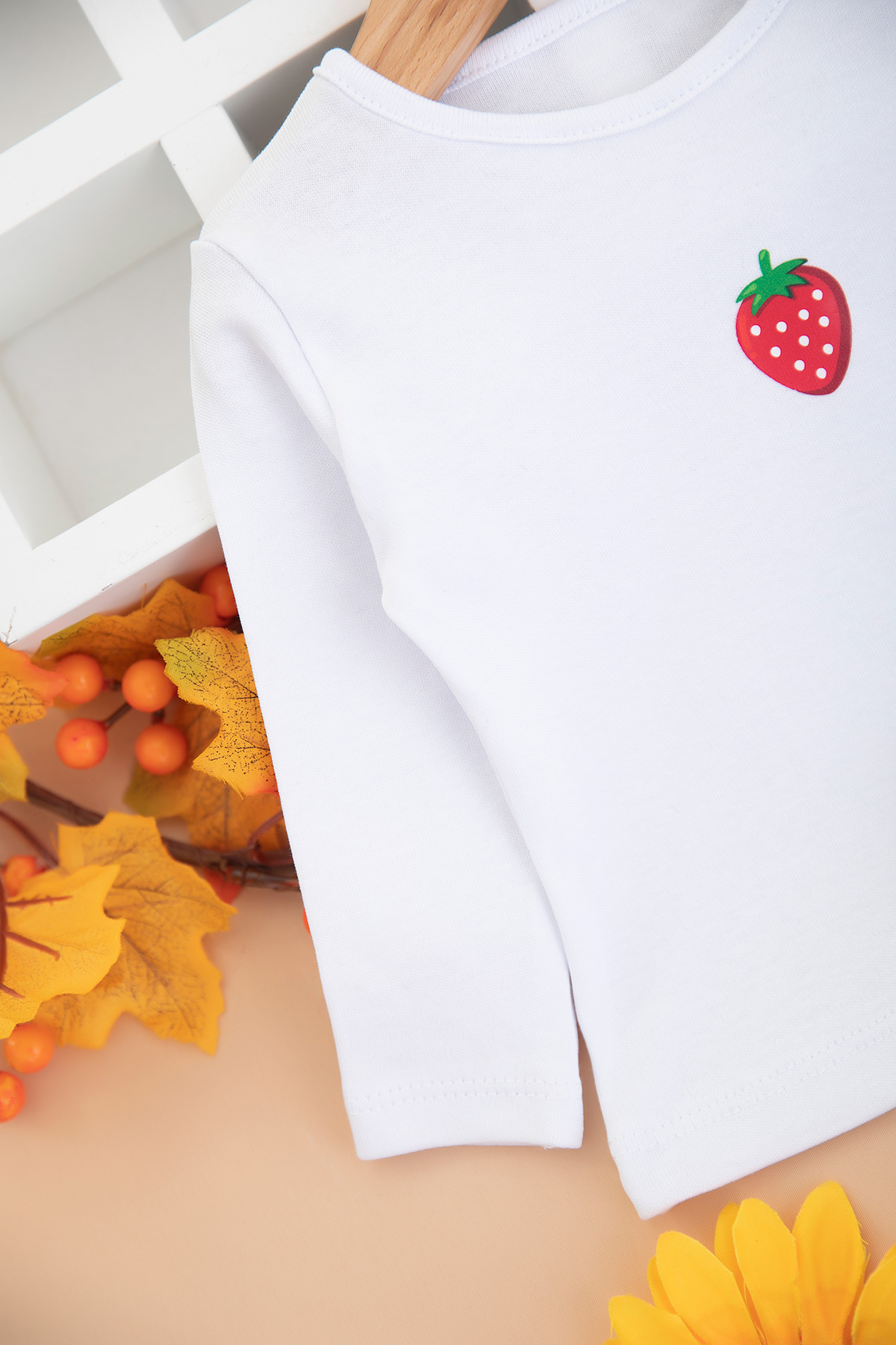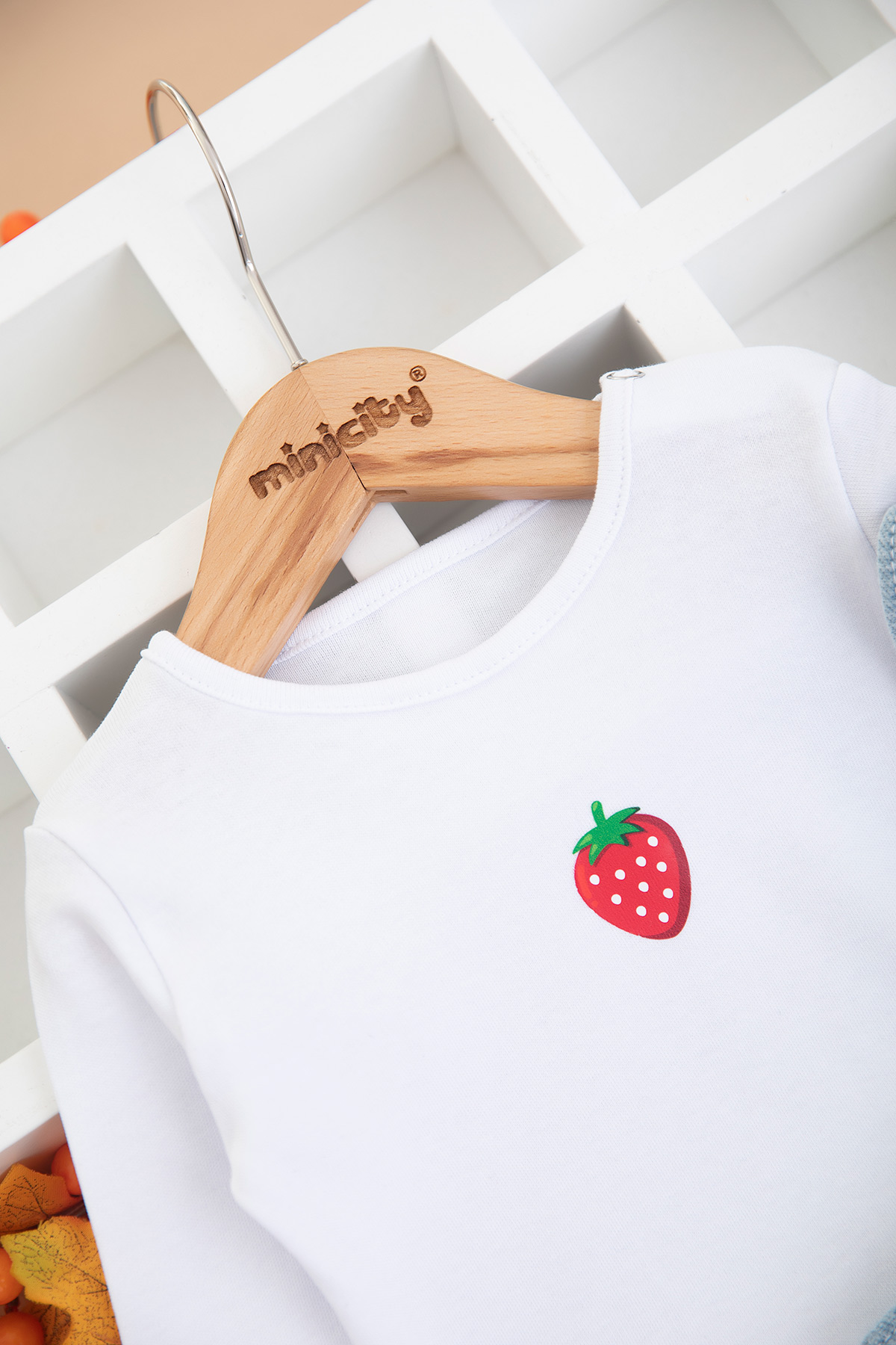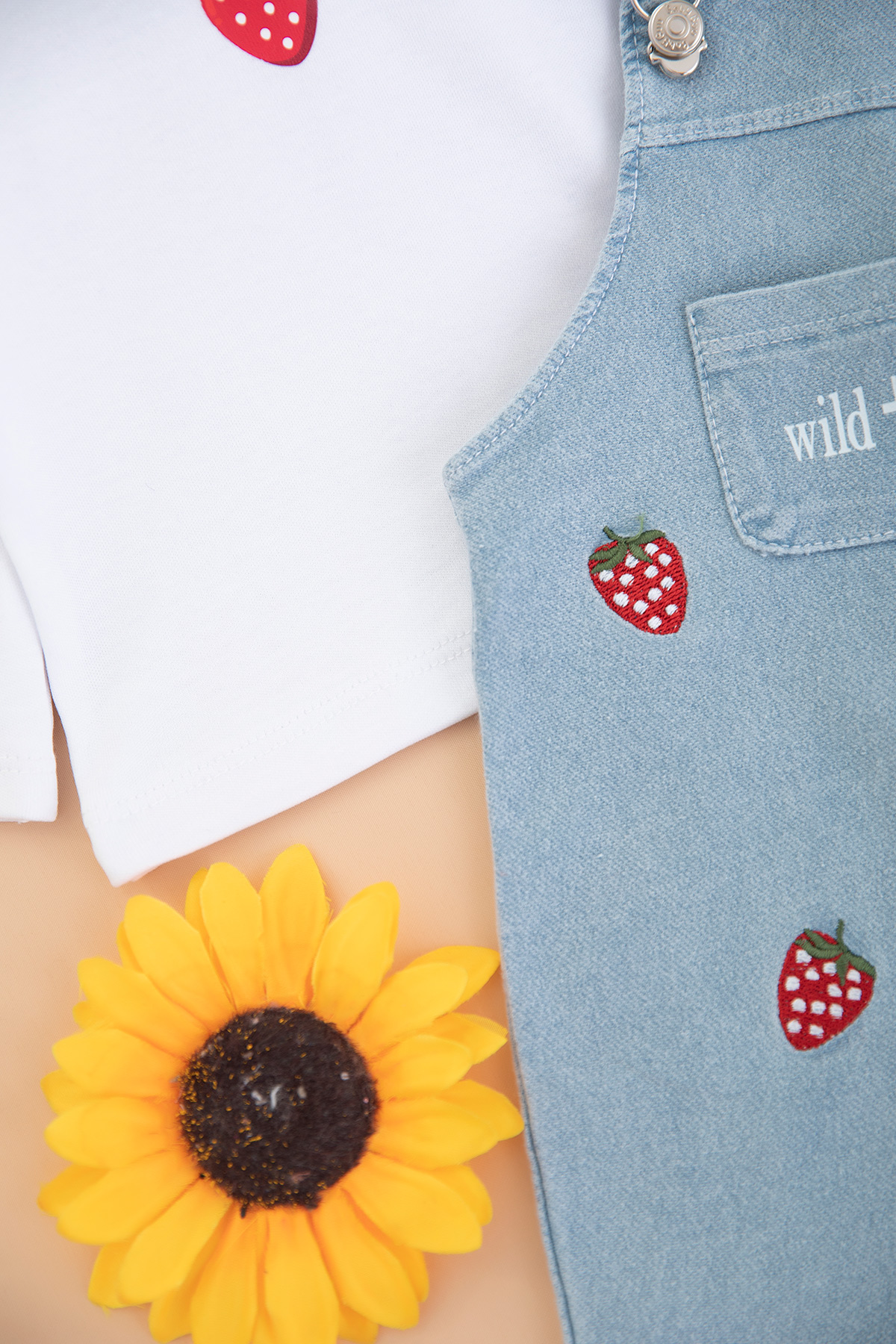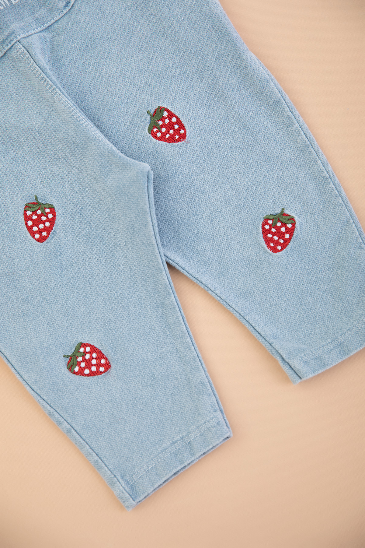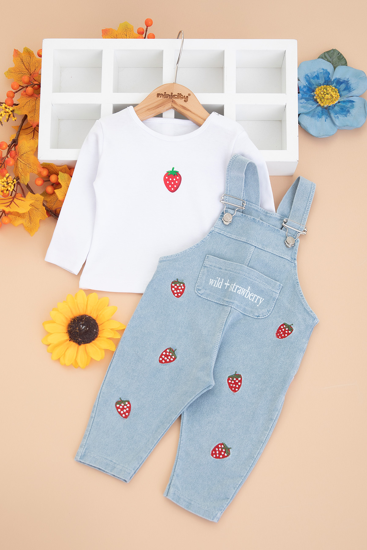 Kız Bebek Çilek Nakışlı Badili Kot Salopet - 0321 (9-24 Ay)