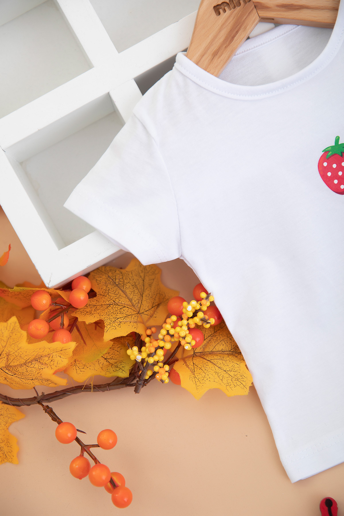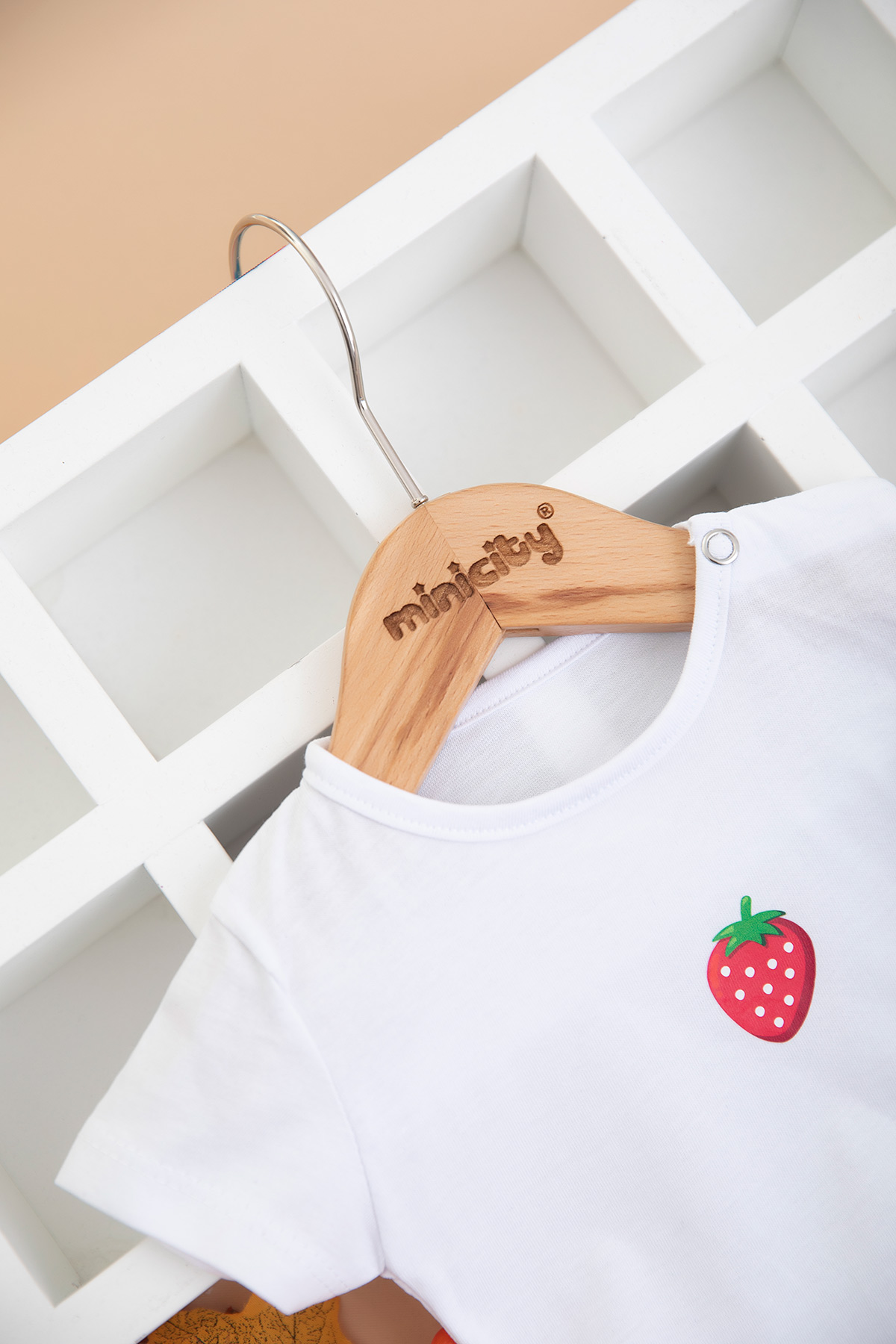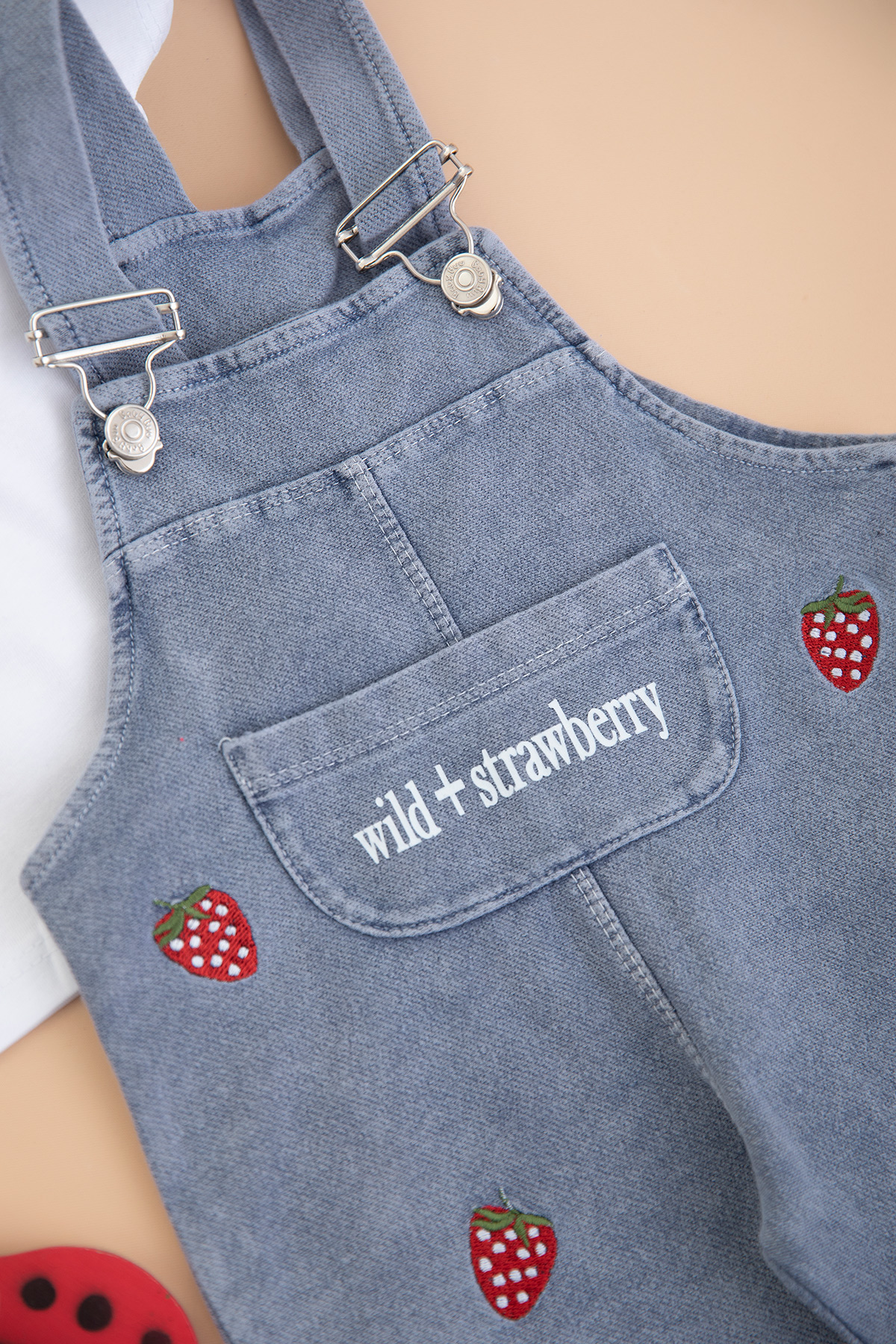 Kız Bebek Çilek Nakışlı Badili Kot Salopet - 0370 (9-24 Ay)