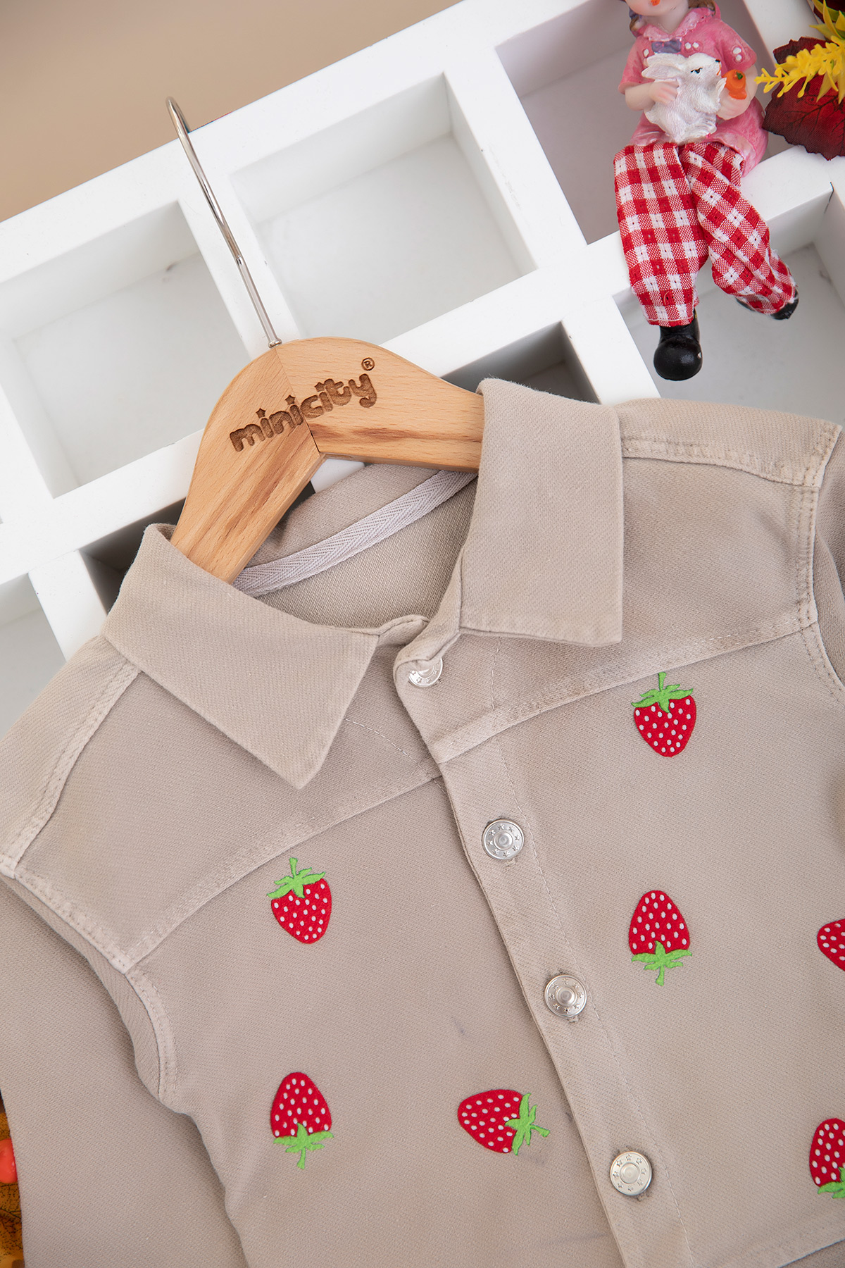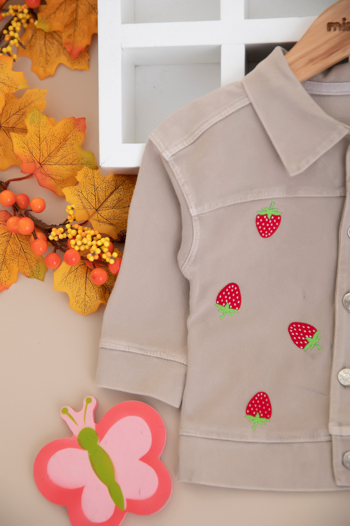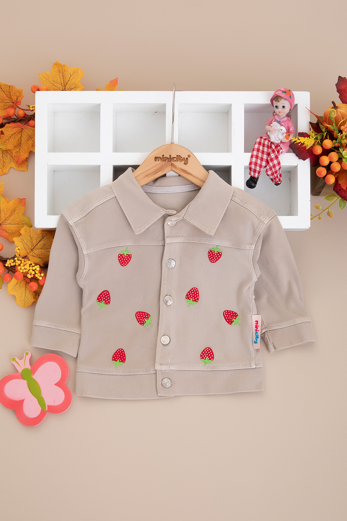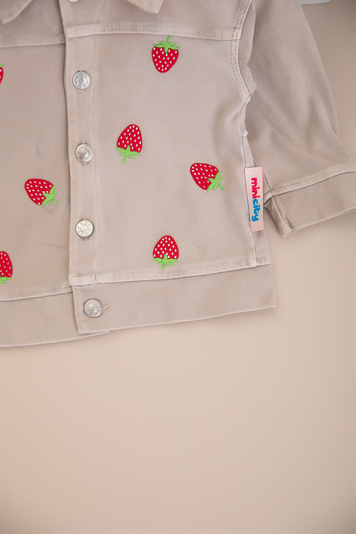 Kız Bebek Çilek Nakışlı Kot Ceket - 0261 (9-24 Ay)