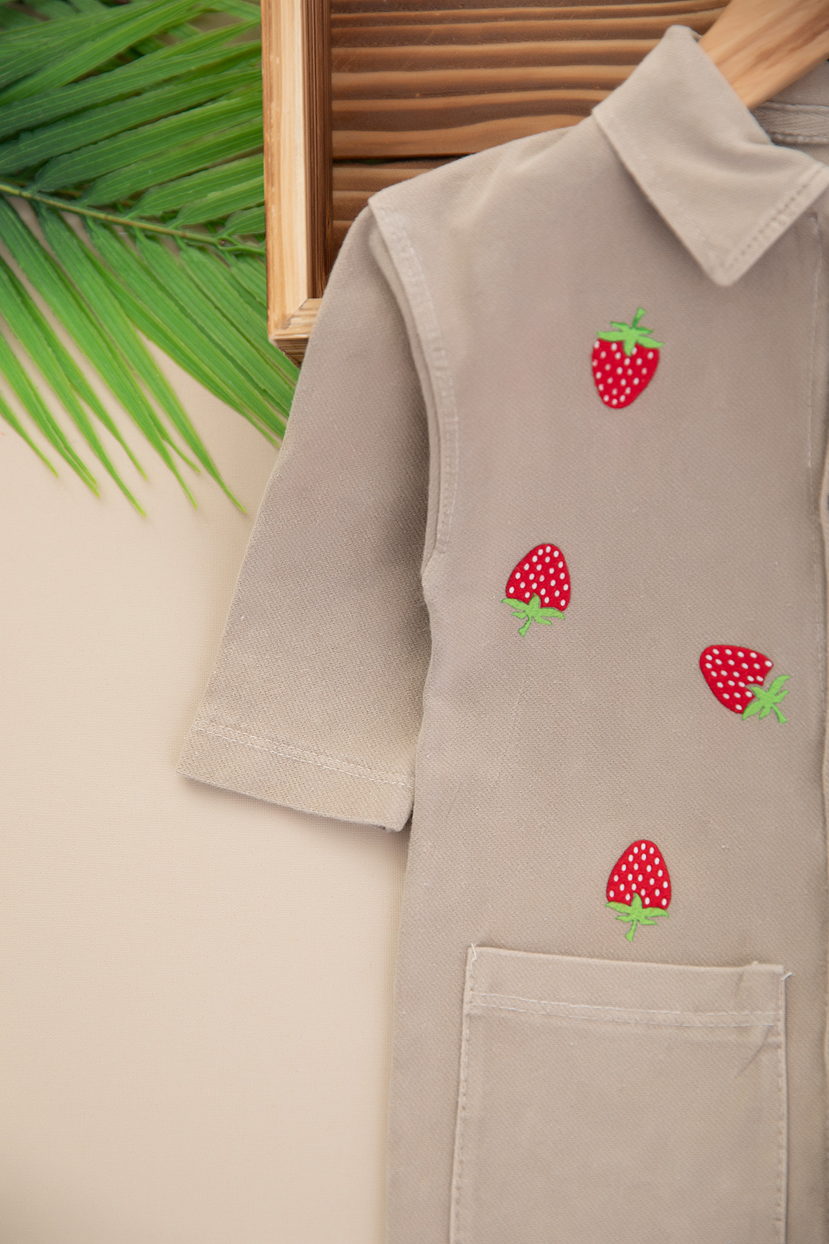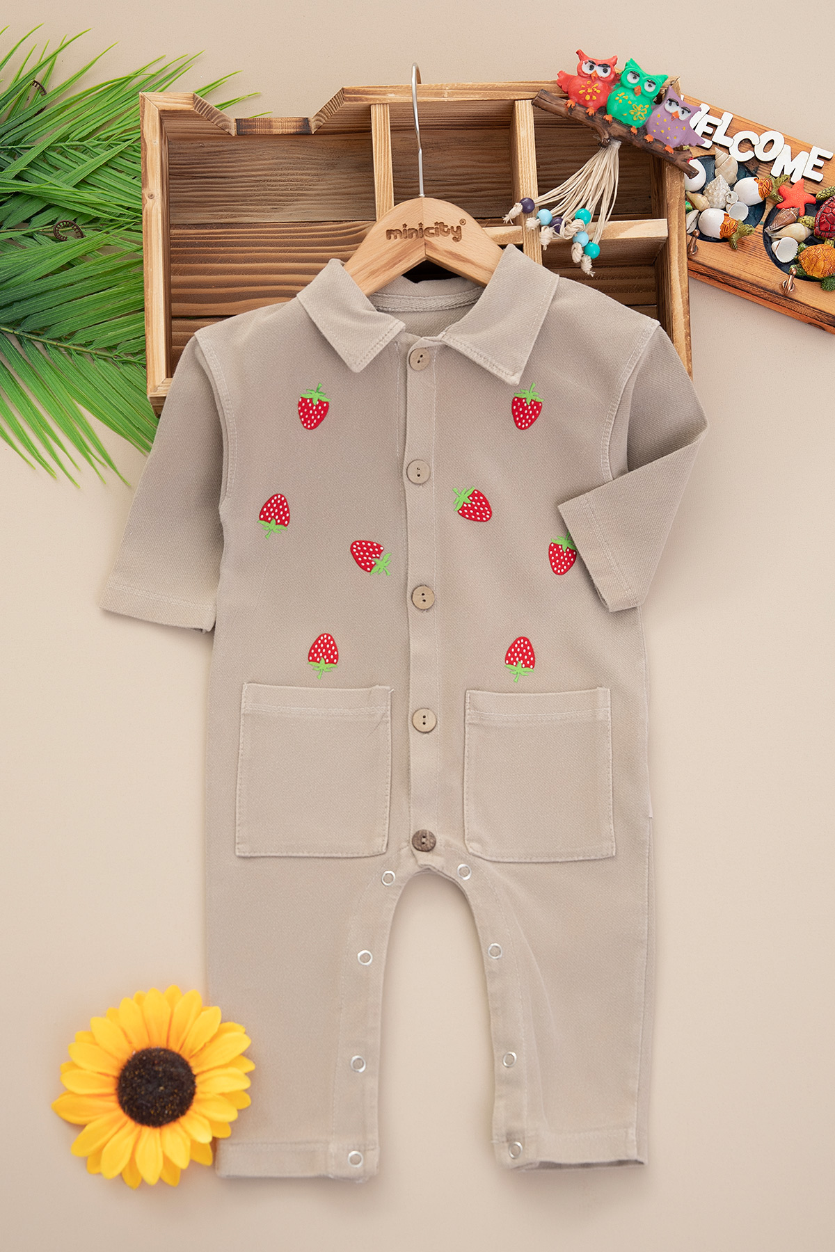 Kız Bebek Çilek Nakışlı Kot Tulum - 0256 (9-24 Ay)