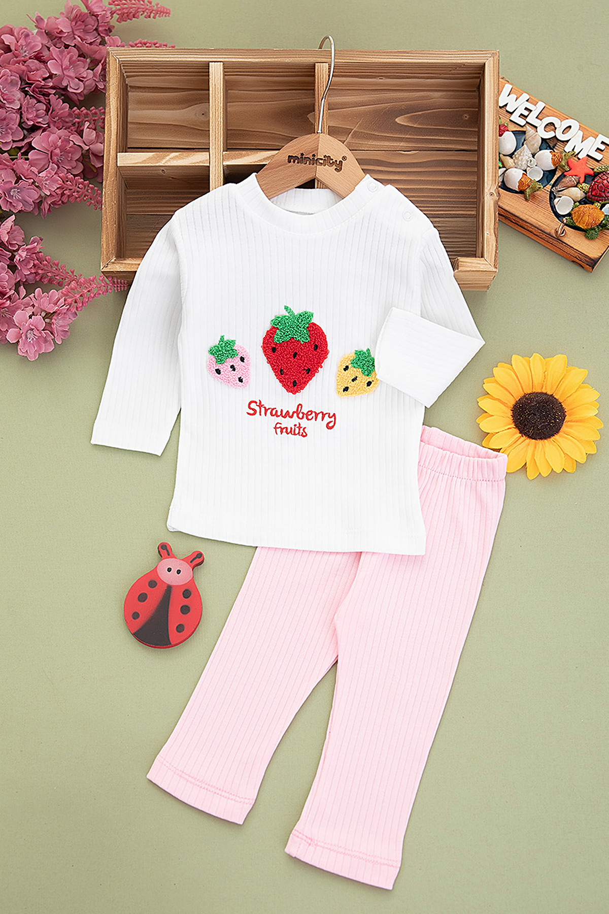 Kız Bebek Çilek Nakışlı Raporlu Takım (9-18 Ay)