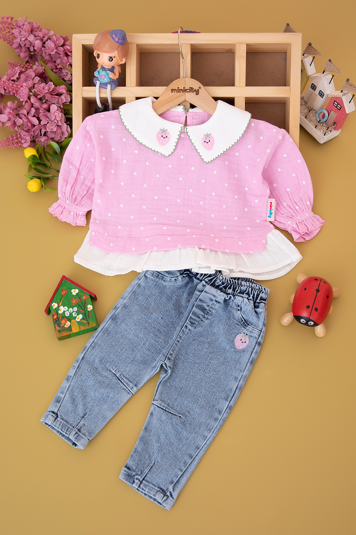Kız Bebek Çilek Nakışlı Süveterli Takım - 251486 (6-24 Ay)