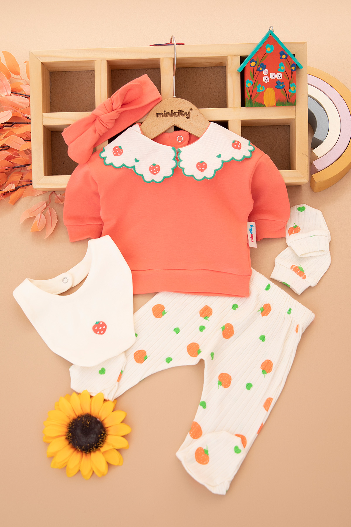 Kız Bebek Çilek Yakalı 5`Li Zıbın Seti - 52750 (0-3 Ay)