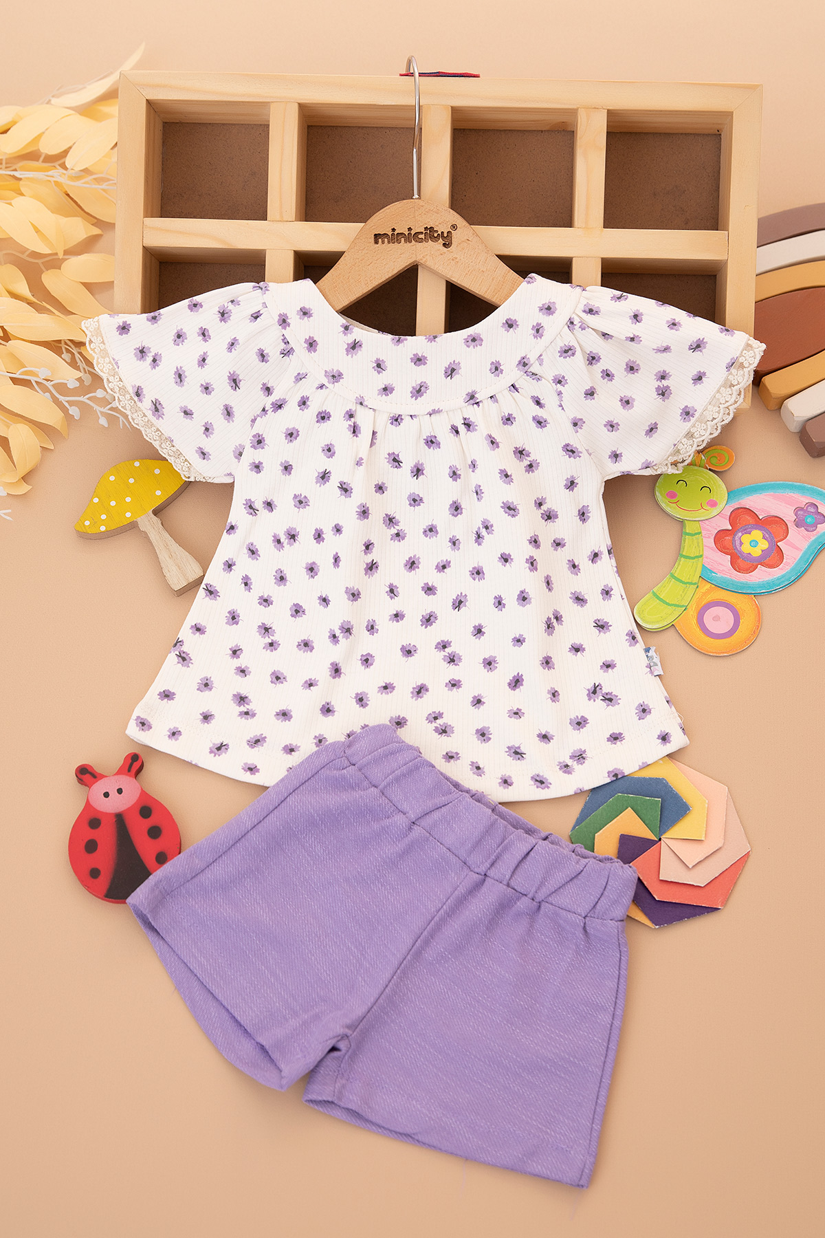 Kız Bebek Çıtır Desenli Şortlu Takım - 25548 (9-24 Ay)