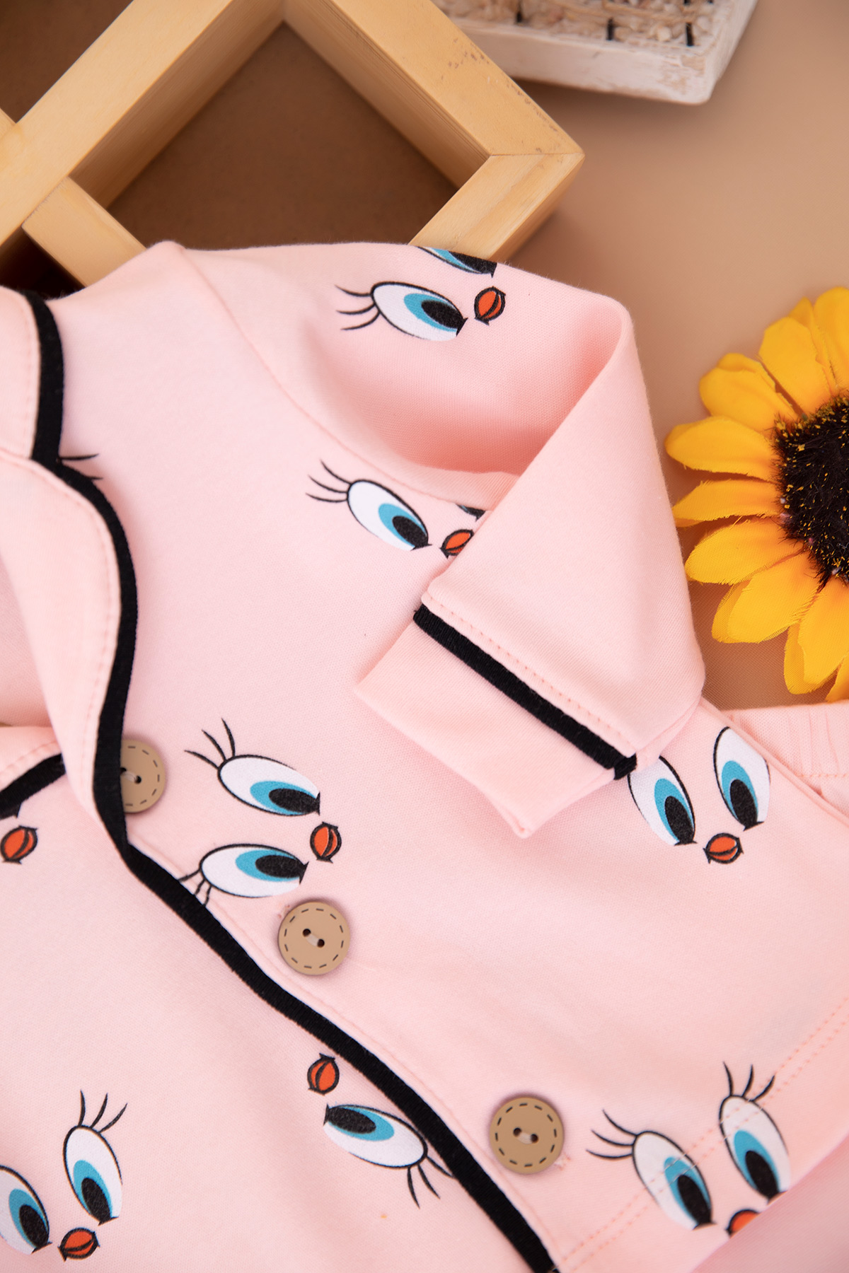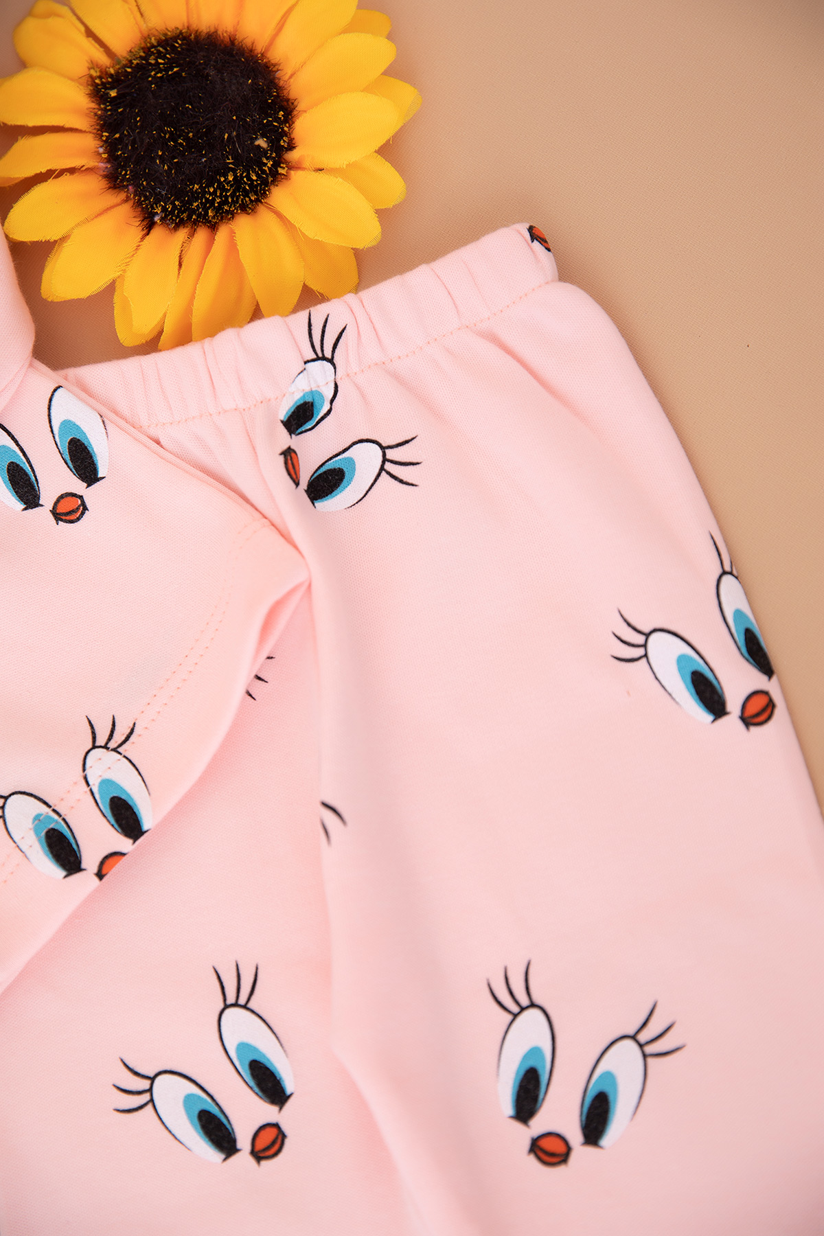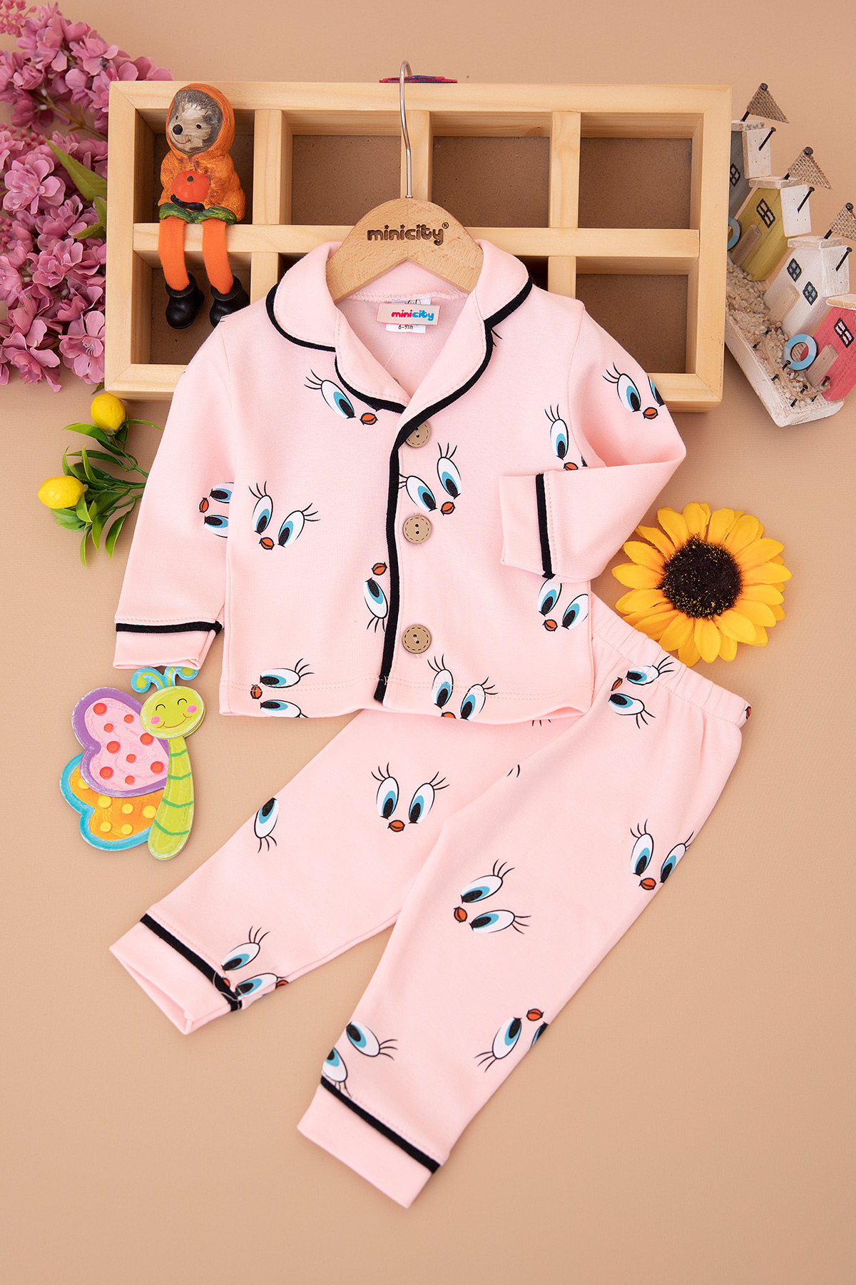 Kız Bebek Civciv Baskılı Pijama Takım - 8210 (6-24 Ay)