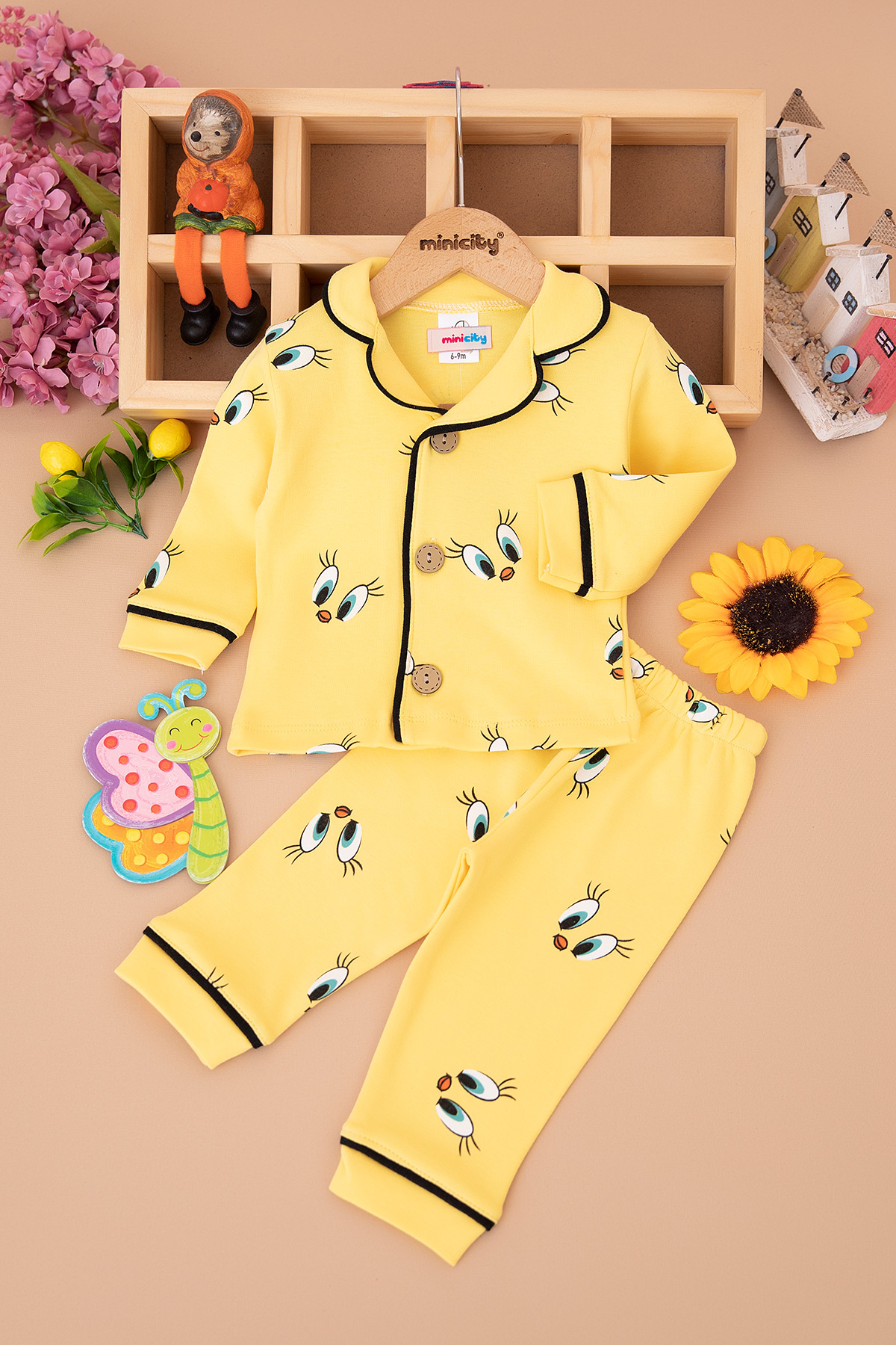 Kız Bebek Civciv Baskılı Pijama Takım - 8210 (6-24 Ay)