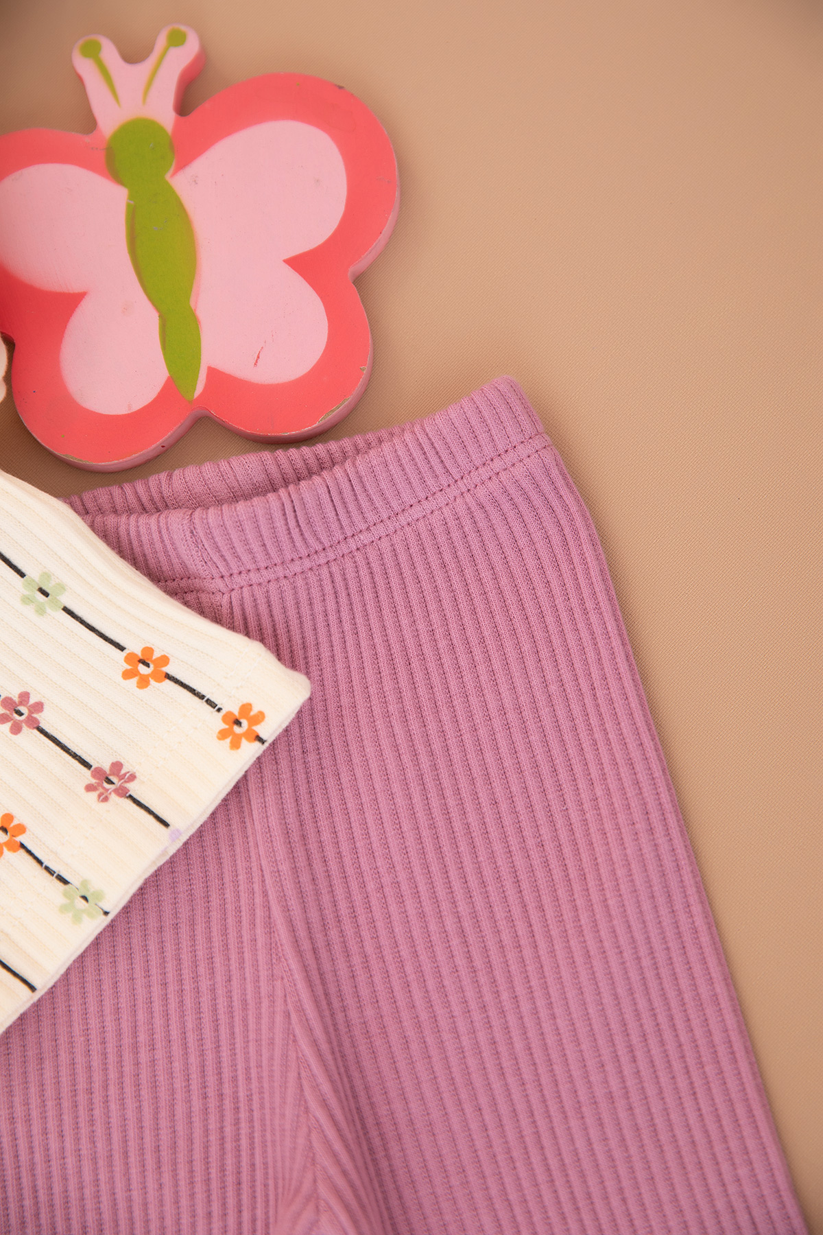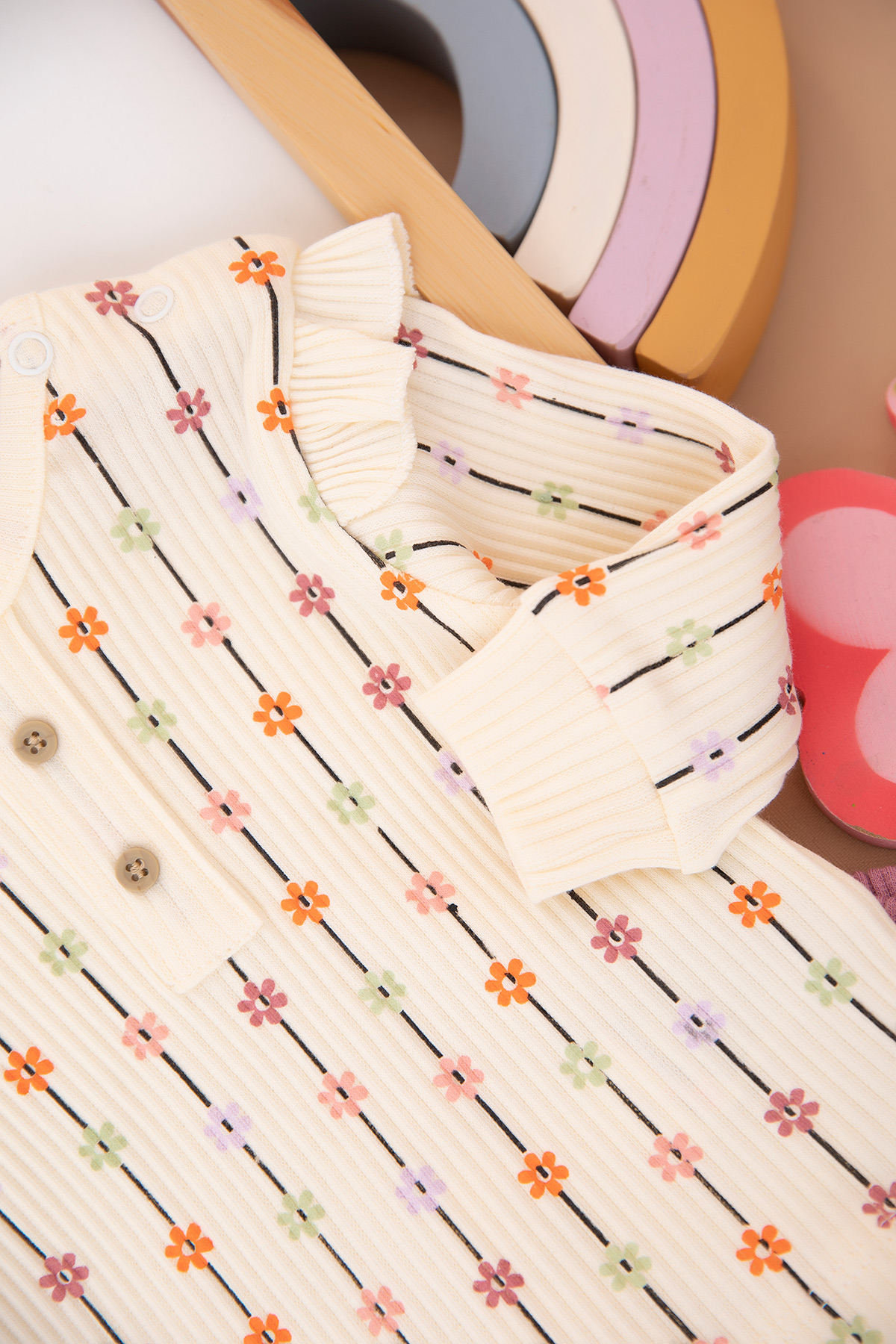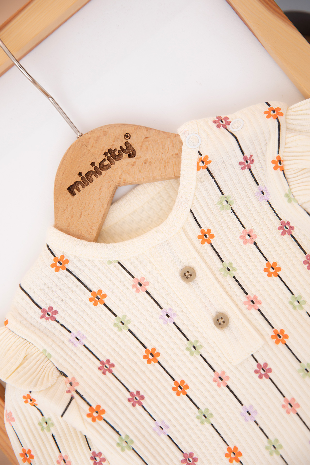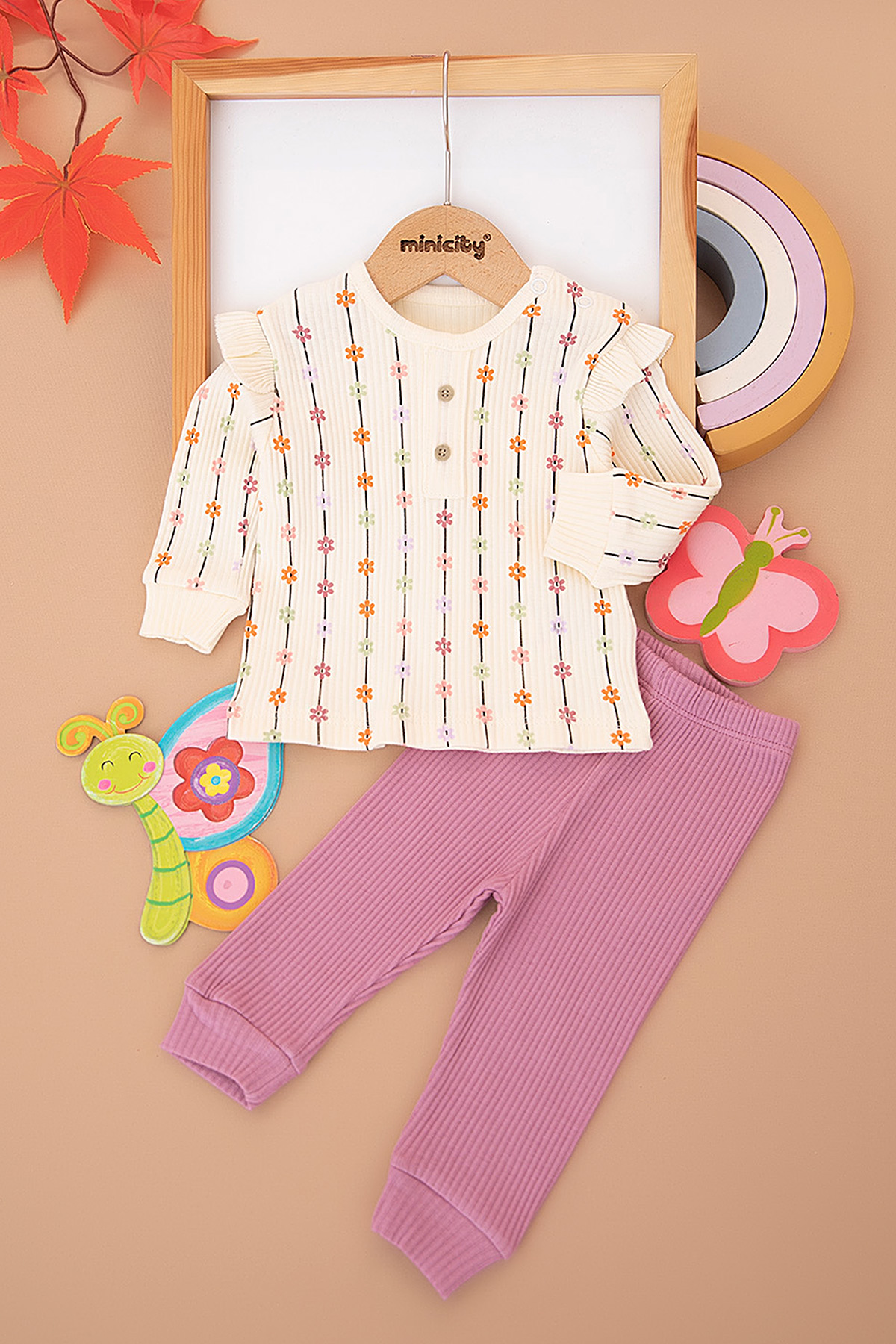 Kız Bebek Çizgili Çiçekli Fitilli Takım - 1282 (3-12 Ay)