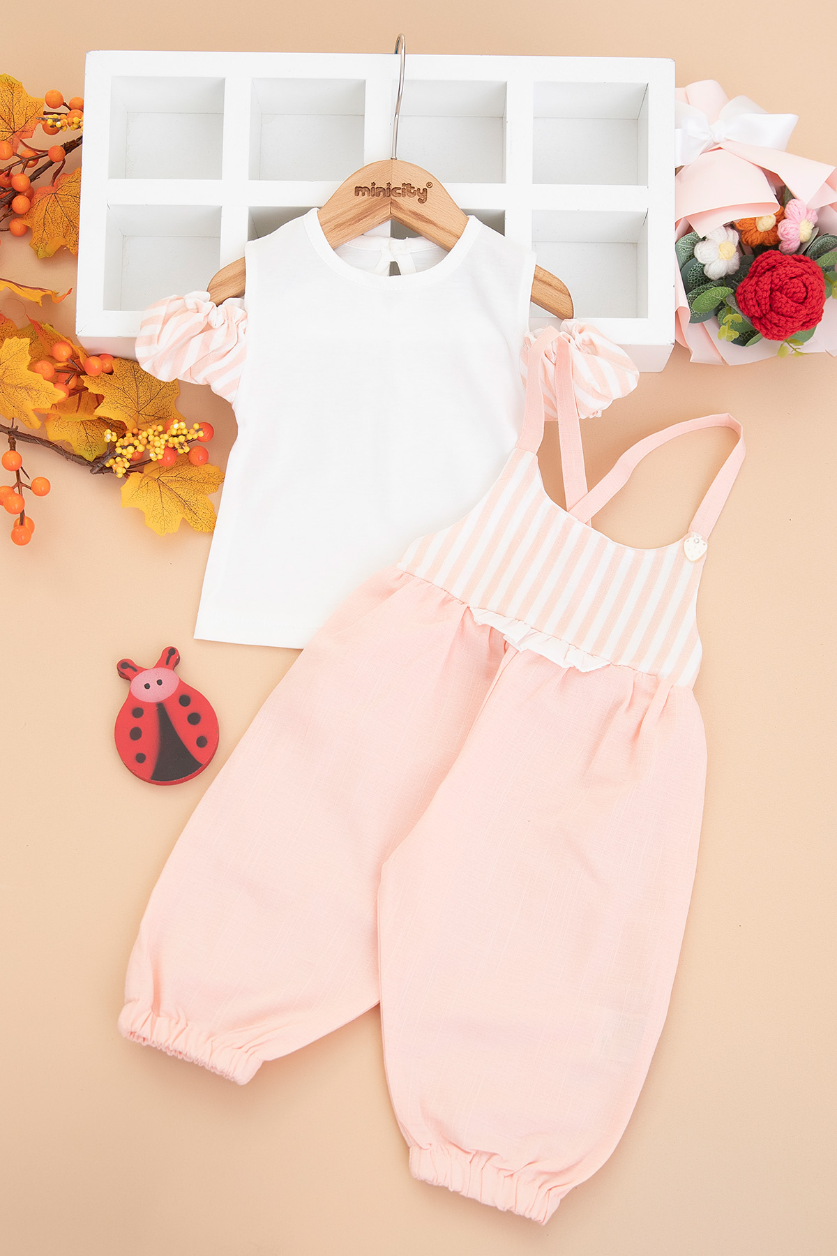Kız Bebek Çizgili Keten Tulum - 3183 (9-24 Ay)
