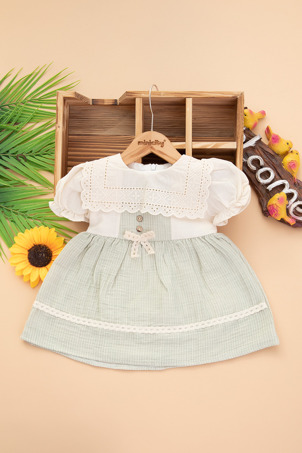 Kız Bebek Çizgili Müslin Elbise - 3009 (9-24 Ay)