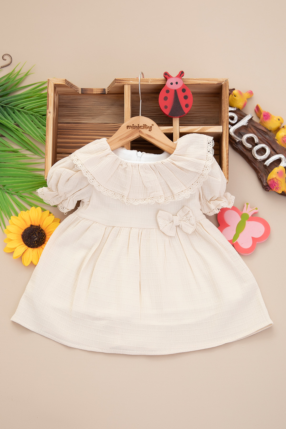 Kız Bebek Çizgili Şile Bezi Elbise - 3005 (9-24 Ay)