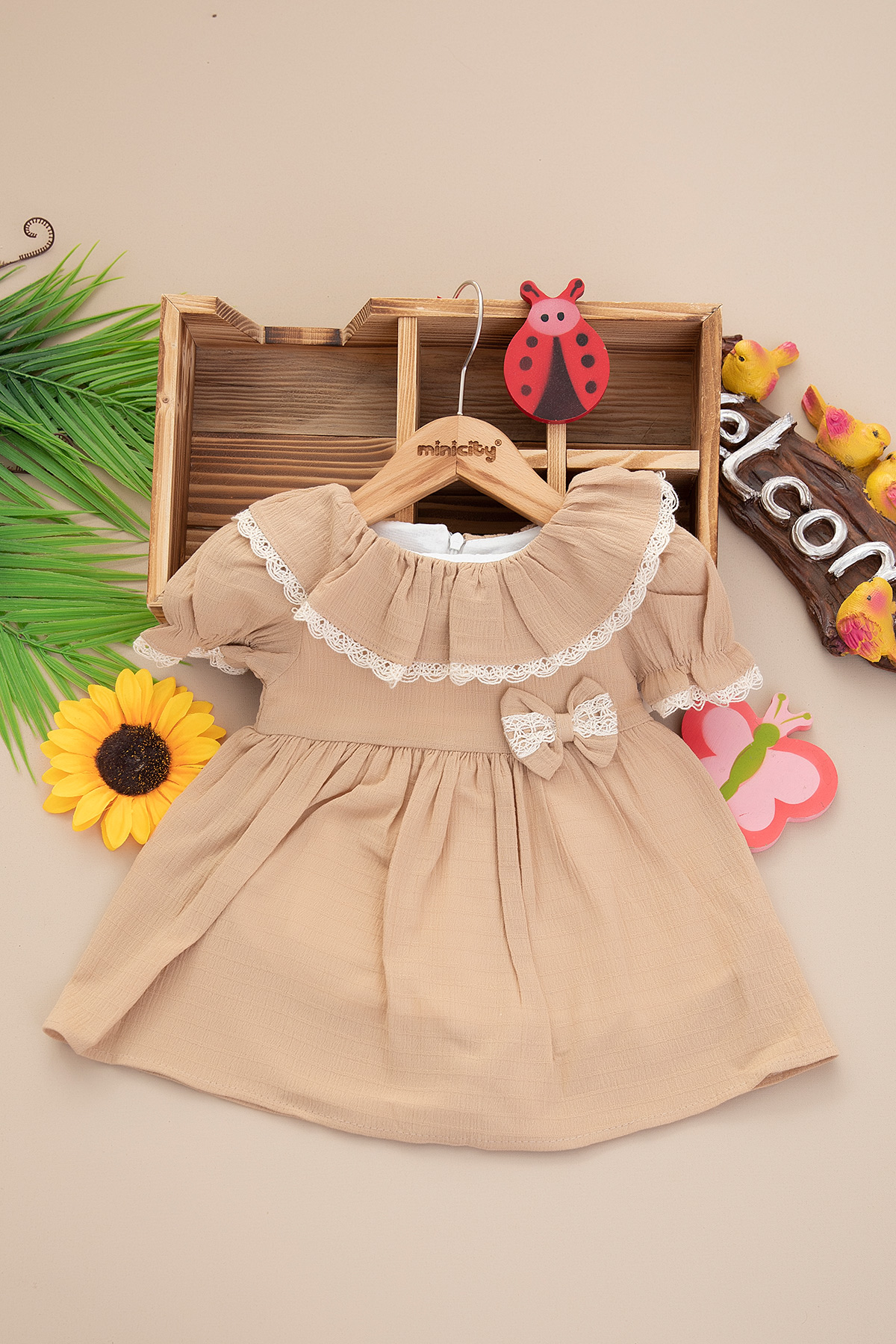 Kız Bebek Çizgili Şile Bezi Elbise - 3005 (9-24 Ay)