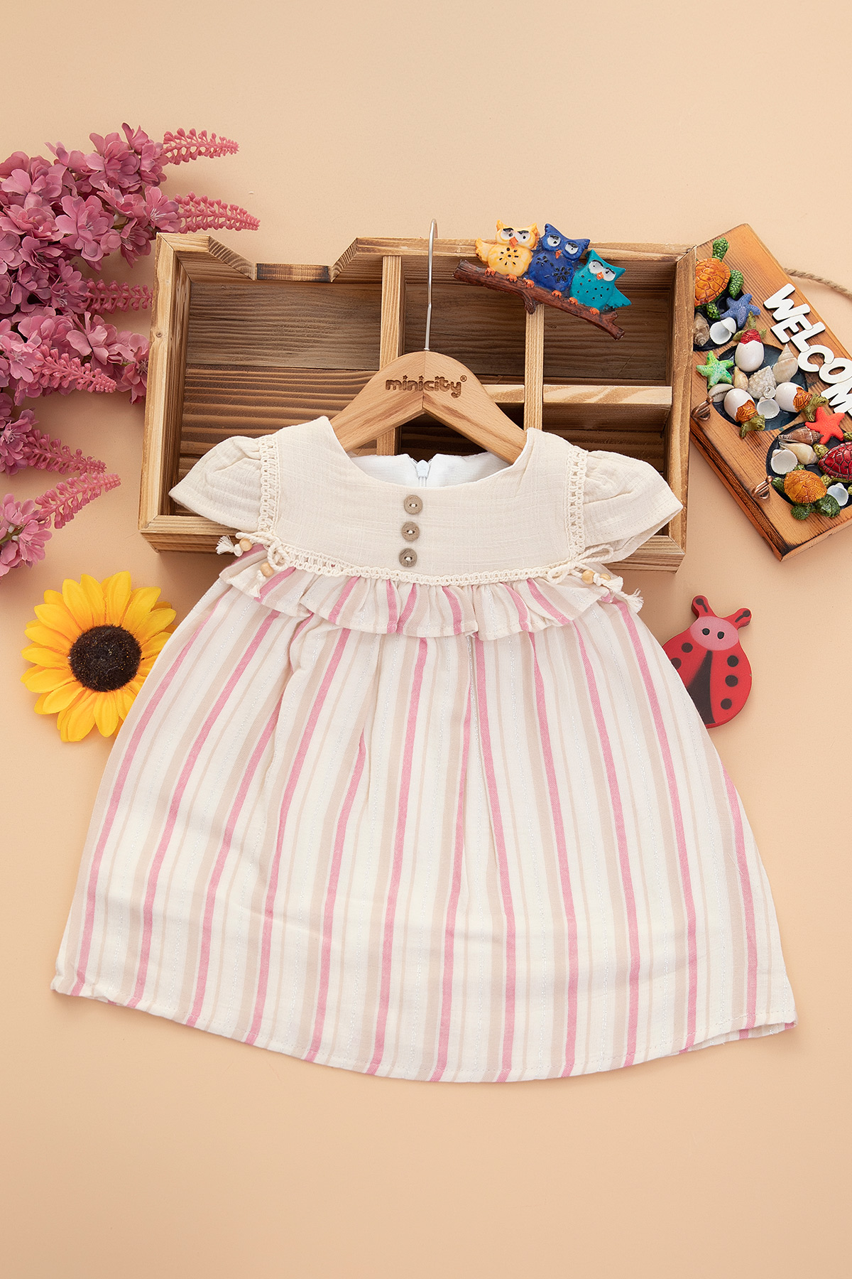 Kız Bebek Çizgili Simli Elbise - 3014 (9-24 Ay)