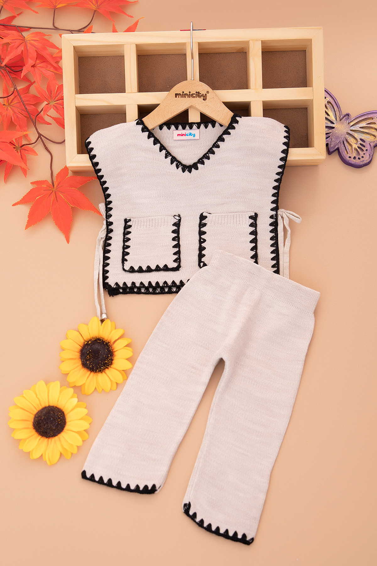 Kız Bebek Çoban Dikişli Triko Takım - 6408 (6-24 Ay)