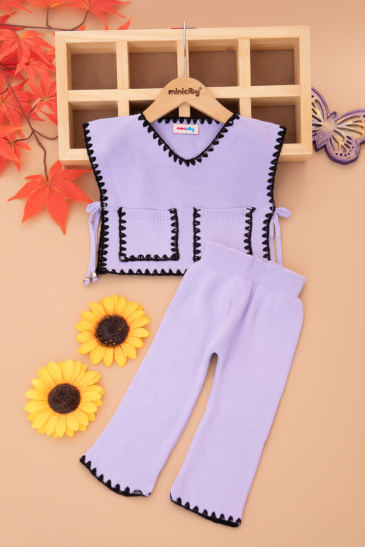 Kız Bebek Çoban Dikişli Triko Takım - 6408 (6-24 Ay)