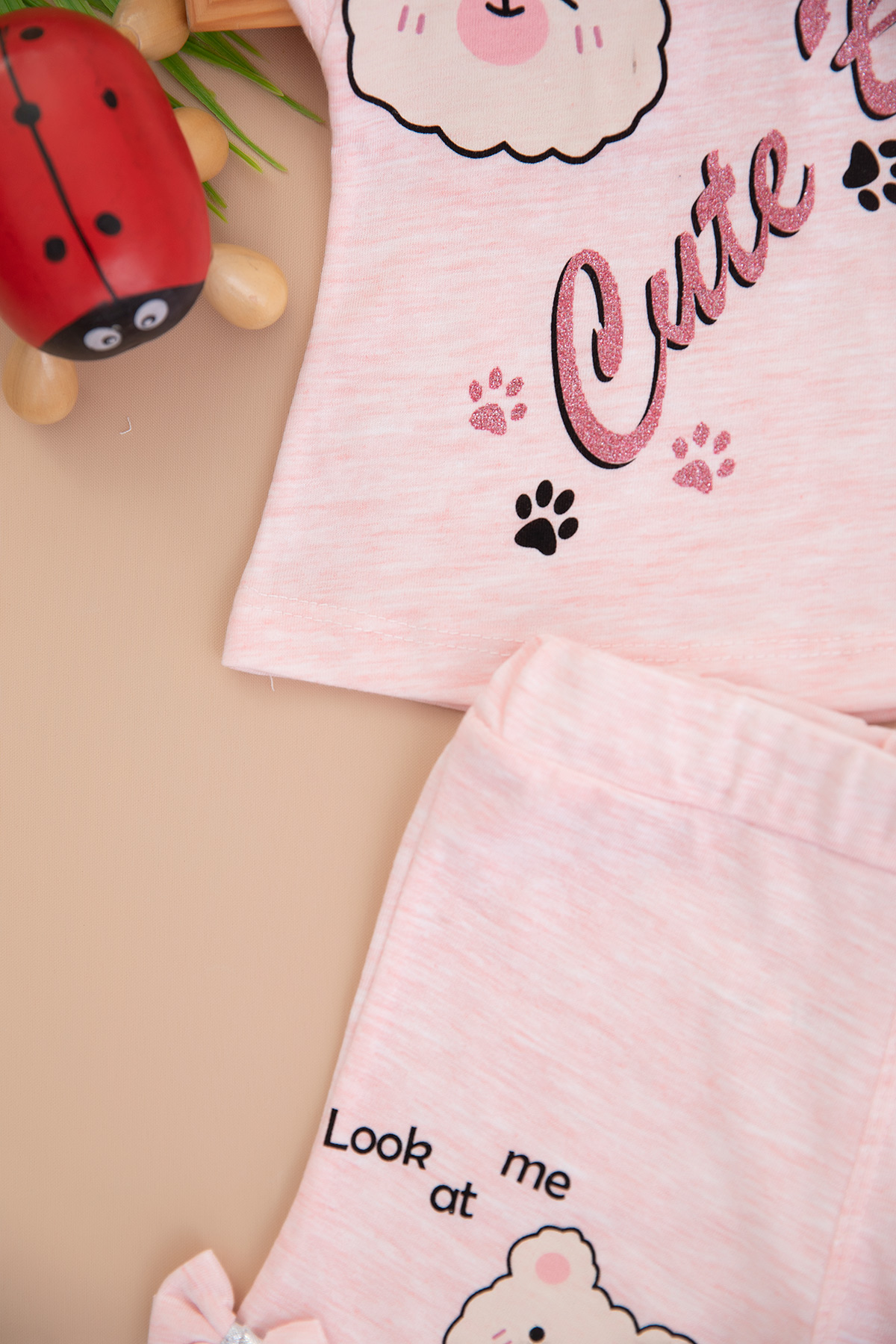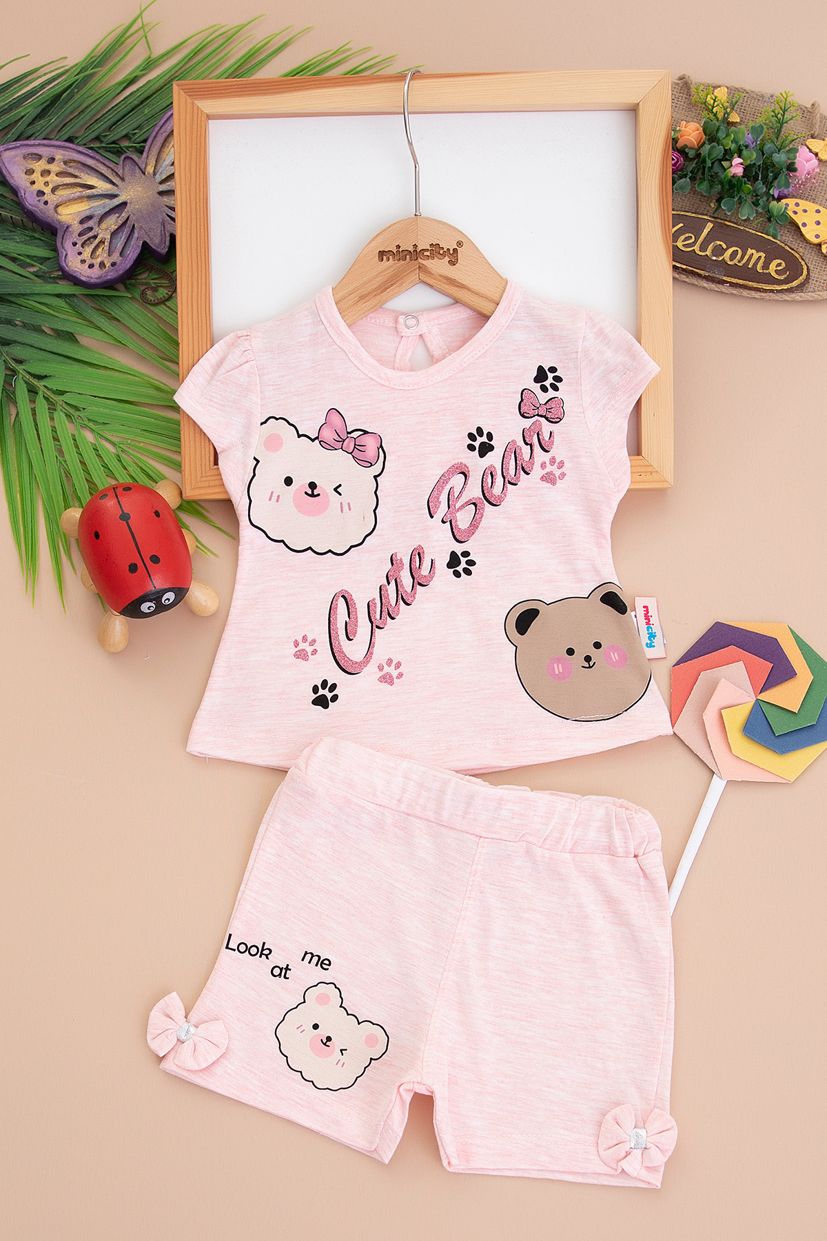 Kız Bebek Cute Bear Baskılı Şortlu Takım - 358 (9-24 Ay)