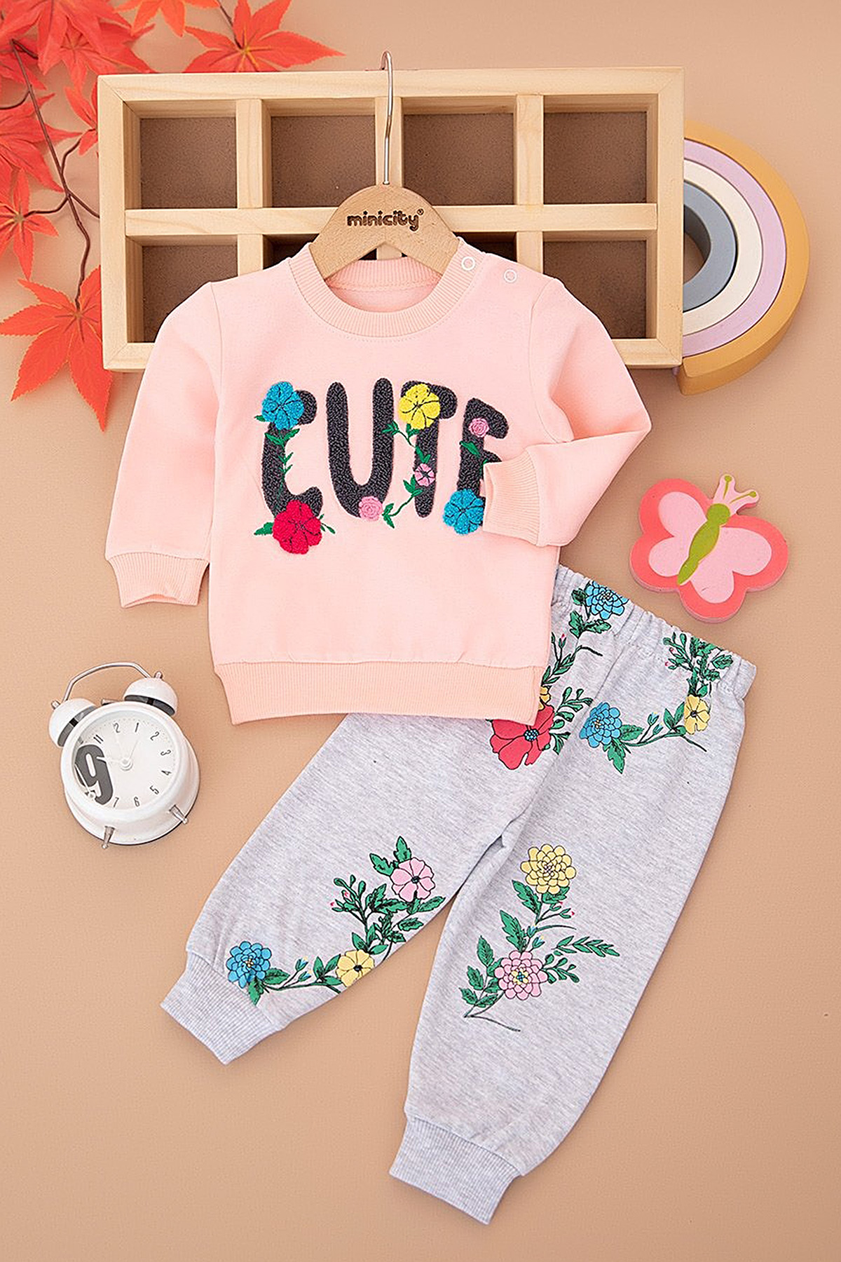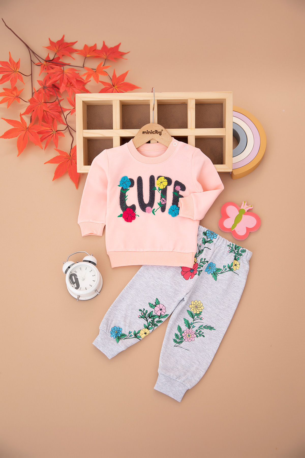 Kız Bebek Cute Çiçek Baskılı Takım - 1047 (6-18 Ay)