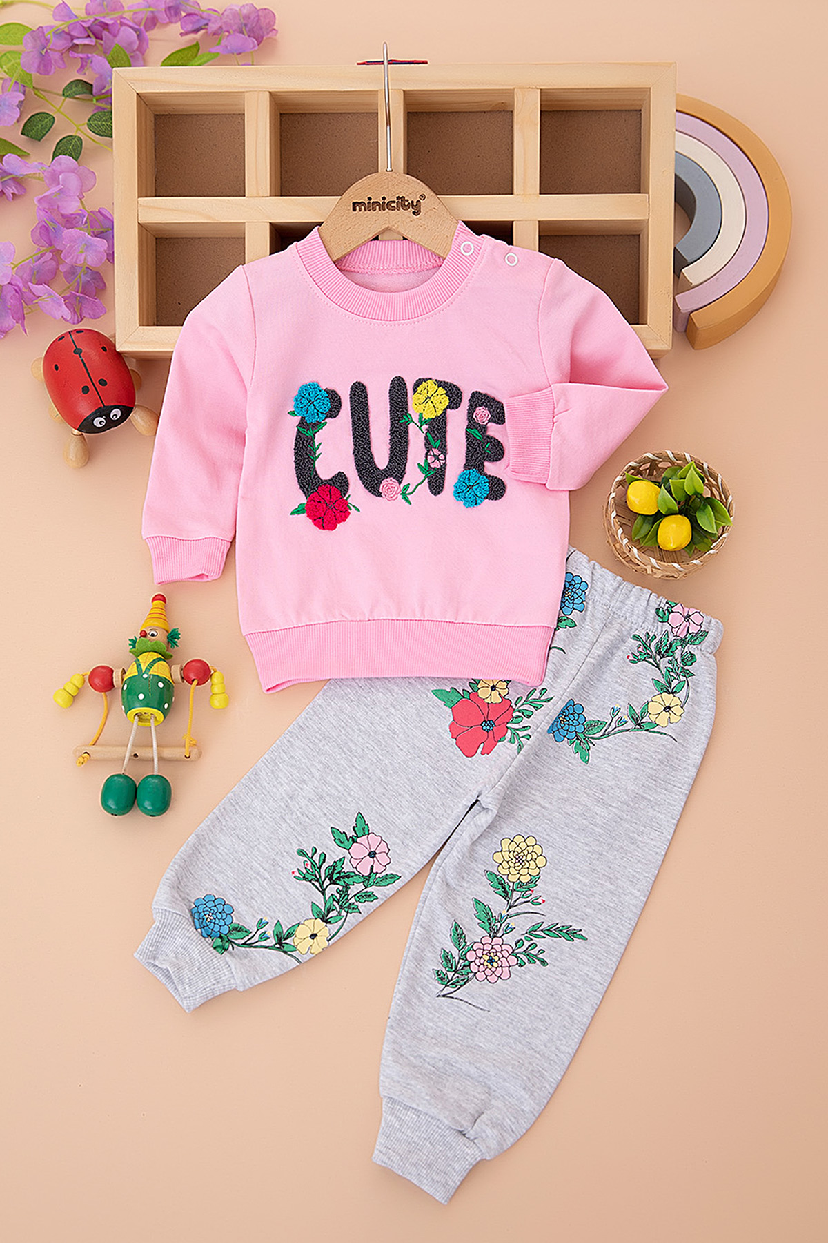 Kız Bebek Cute Çiçek Baskılı Takım - 1047 (6-18 Ay)