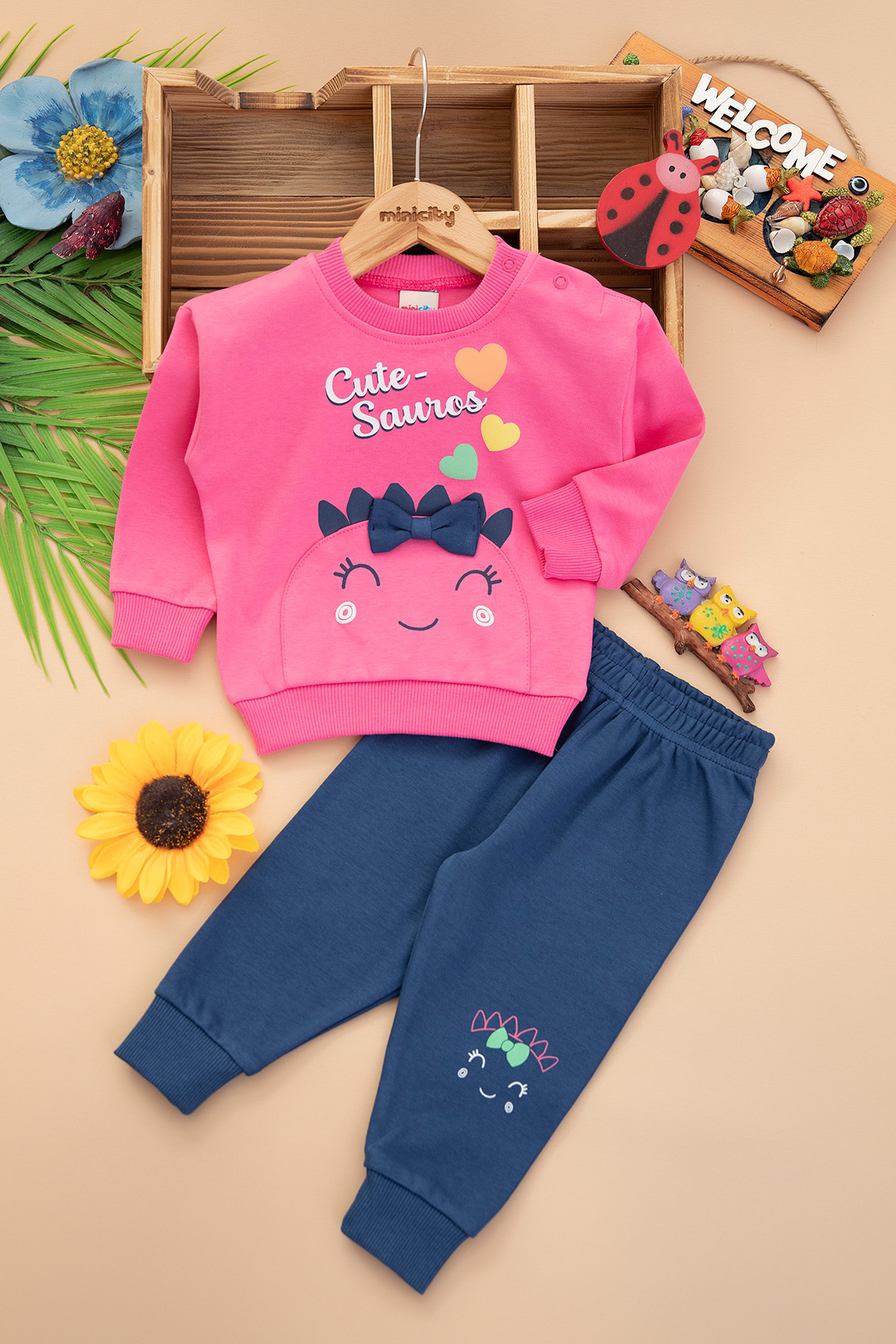 Kız Bebek Cute Sauros Baskılı Takım - 25748 (9-24 Ay)