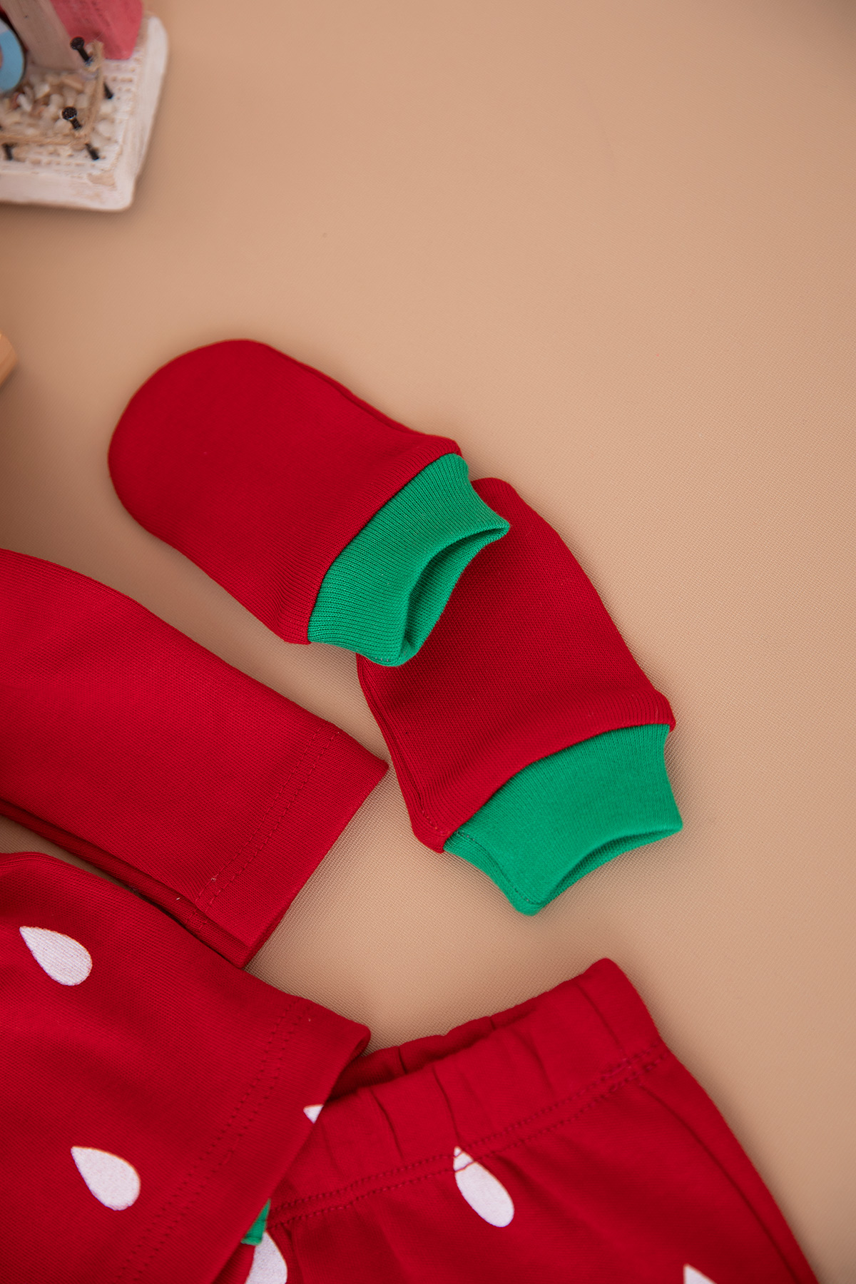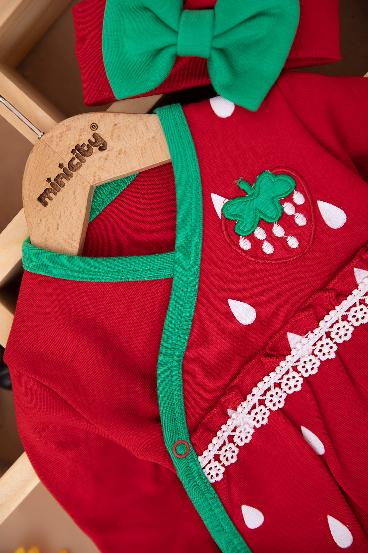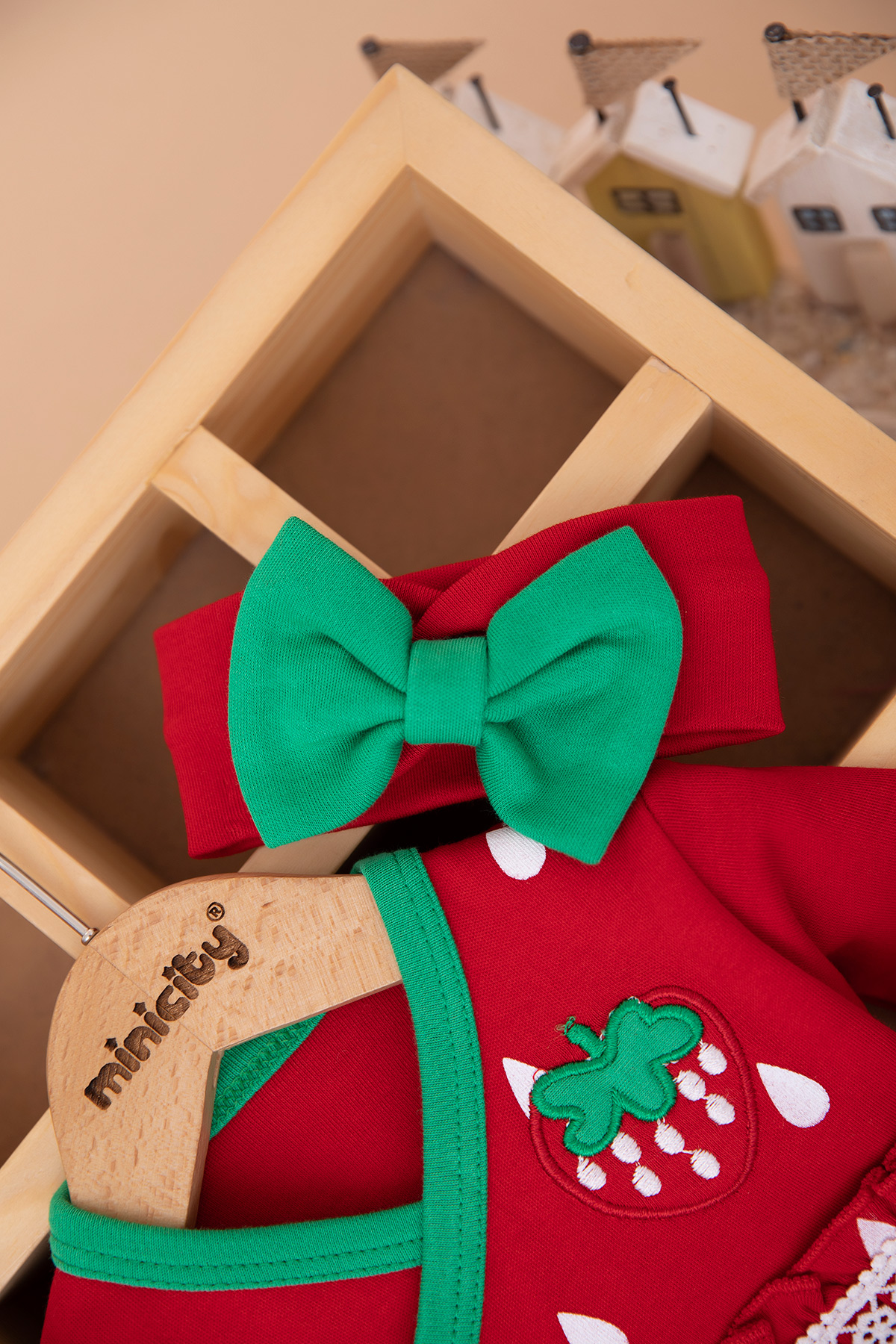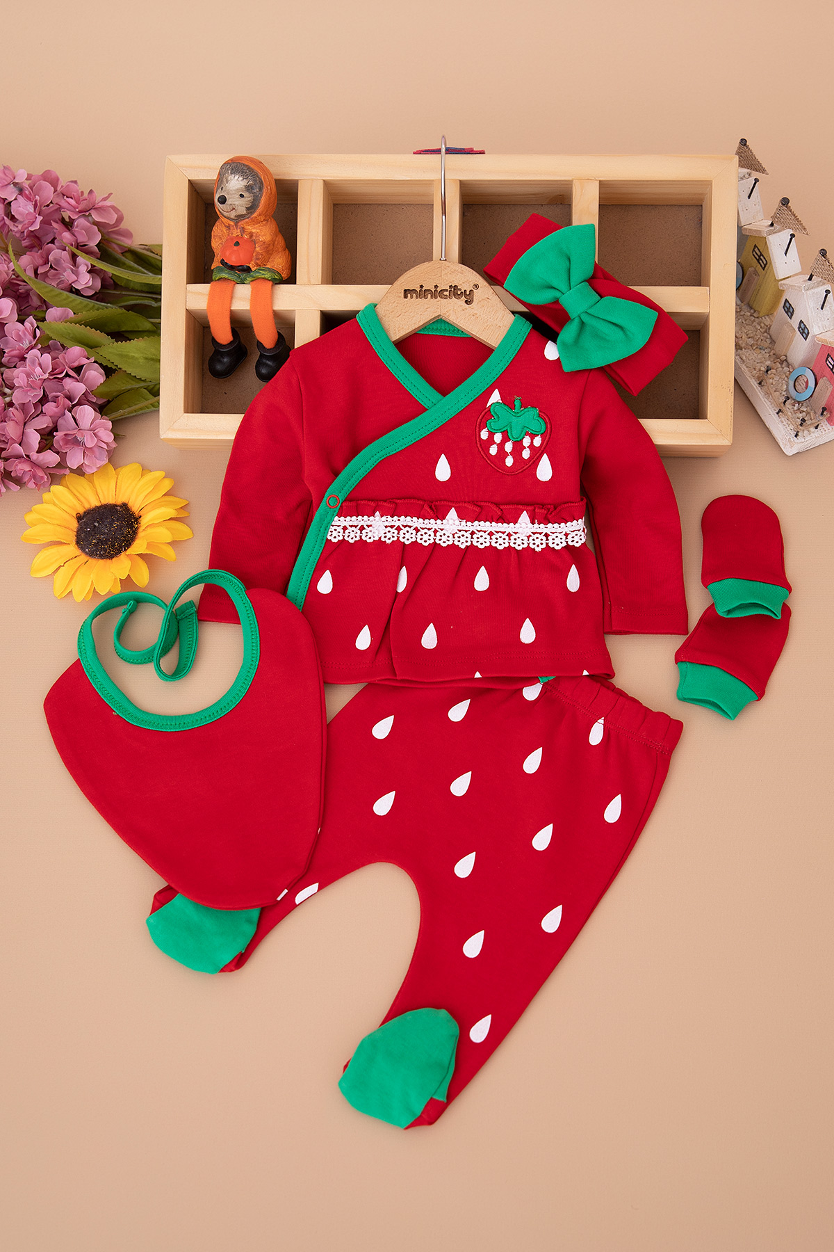 Kız Bebek Damla Çilek Nakışlı 5 Li Zıbın Seti - 230 (0-3 Ay)