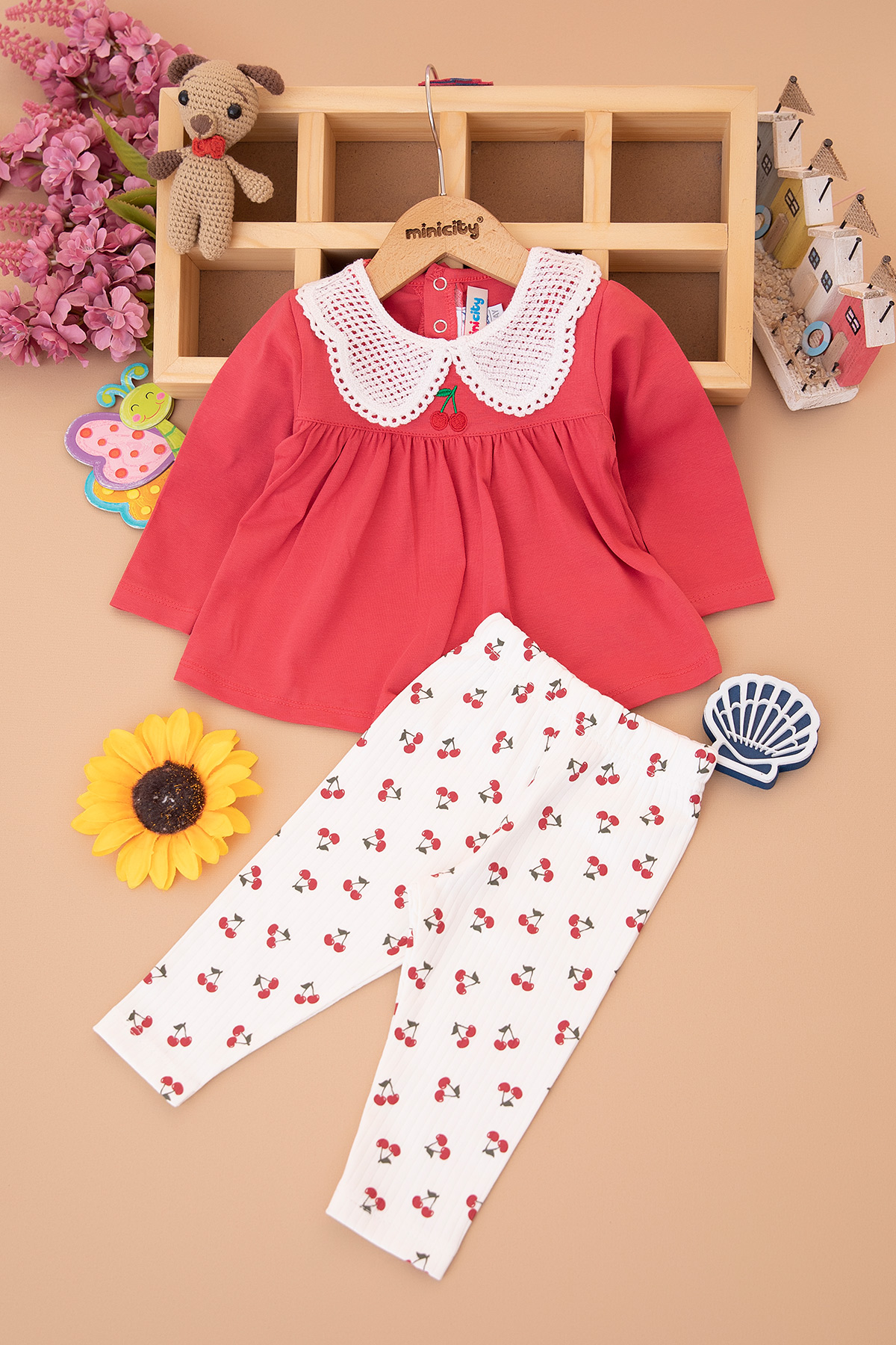 Kız Bebek Dantel Kiraz Nakışlı Takım - 26129 (9-24 Ay)