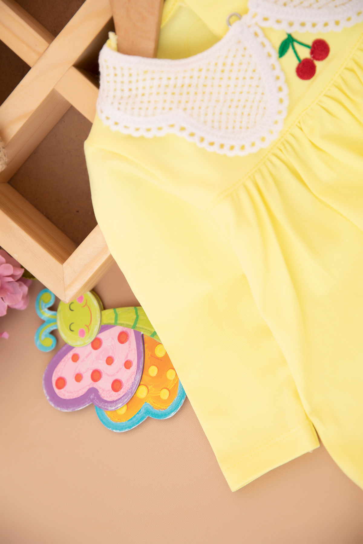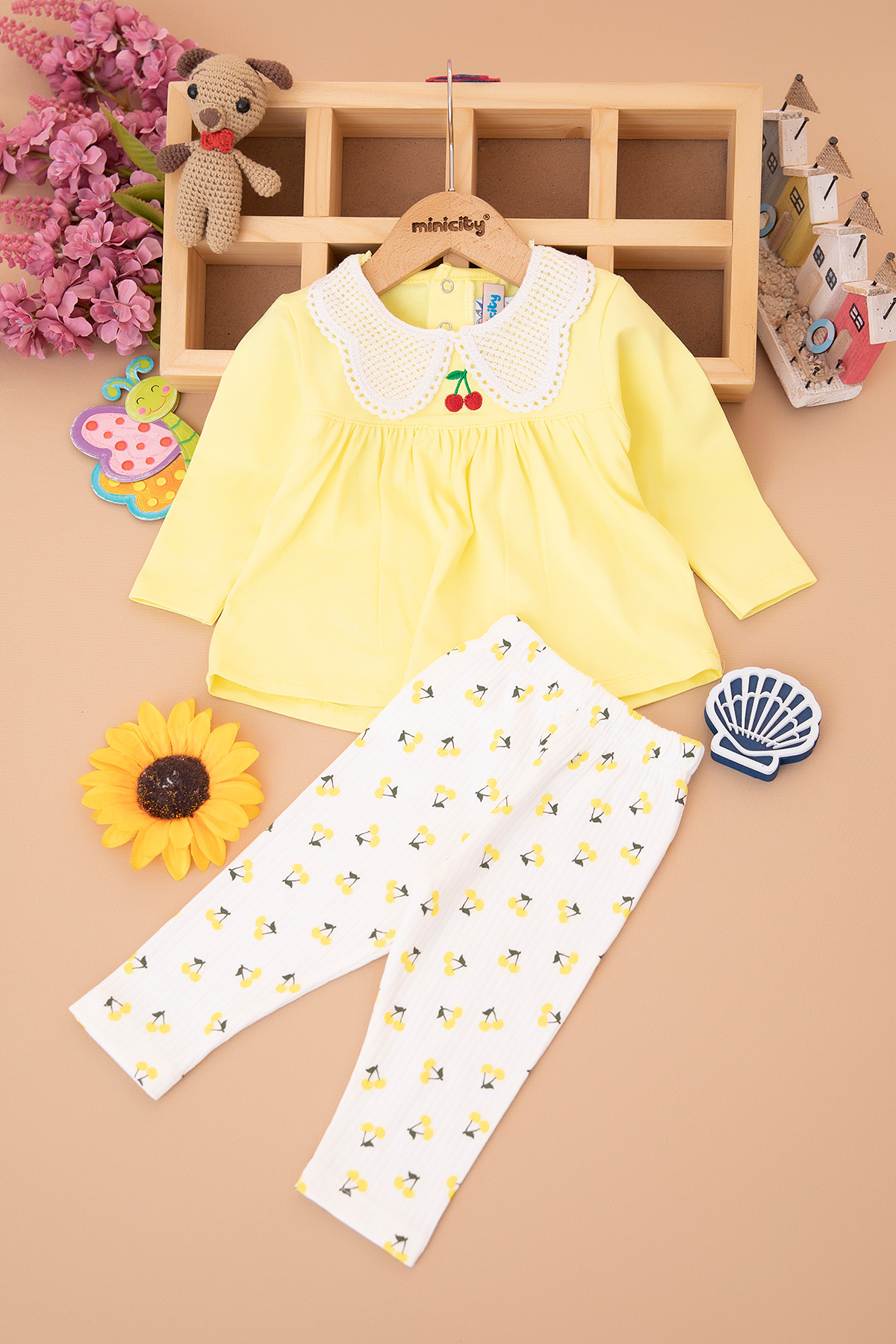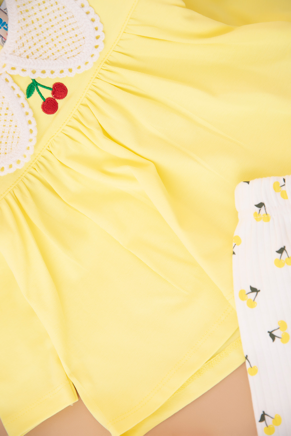 Kız Bebek Dantel Kiraz Nakışlı Takım - 26129 (9-24 Ay)