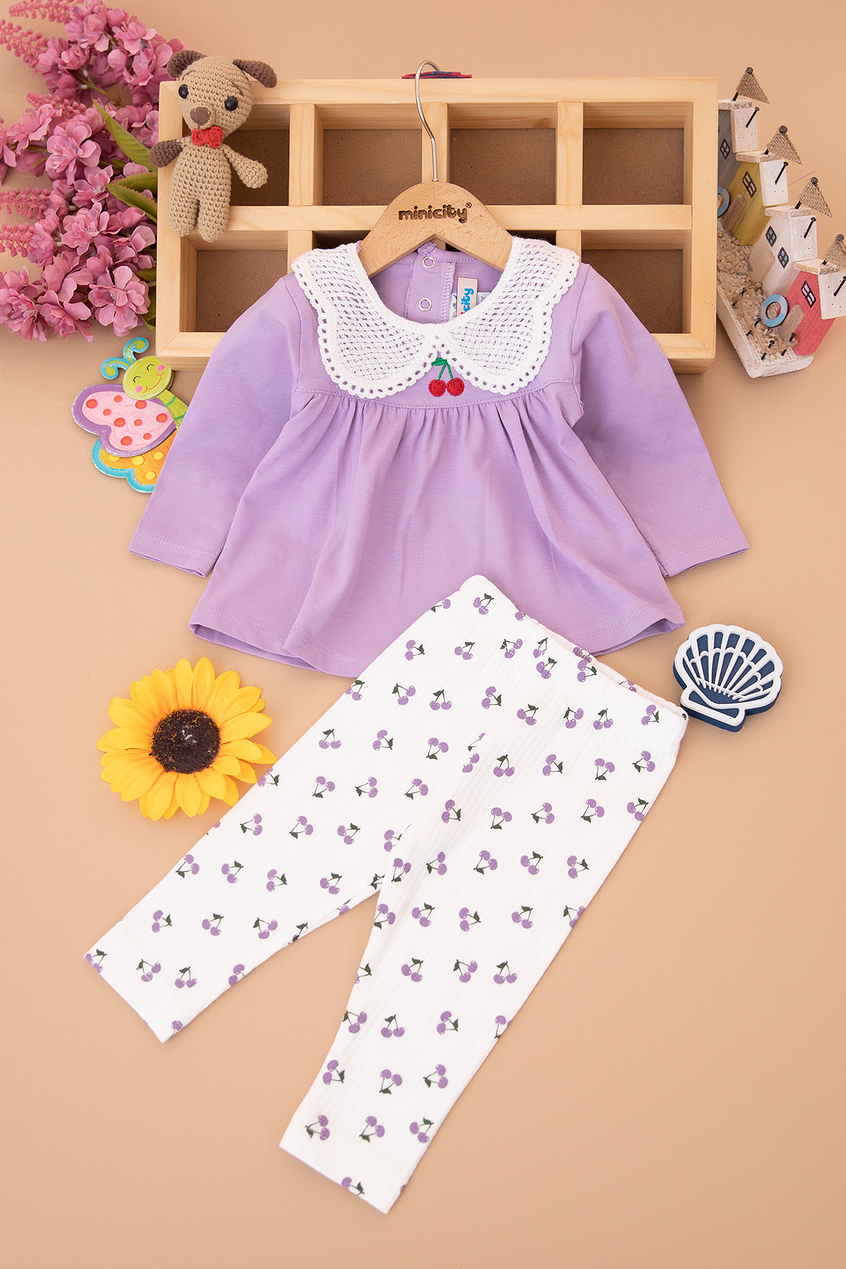 Kız Bebek Dantel Kiraz Nakışlı Takım - 26129 (9-24 Ay)