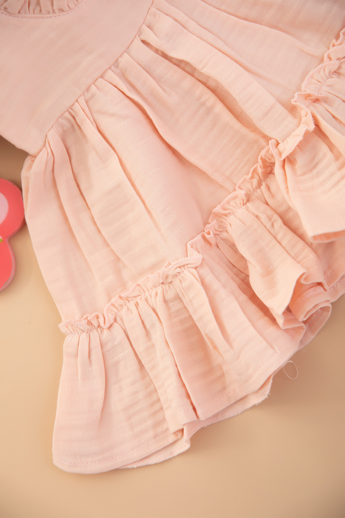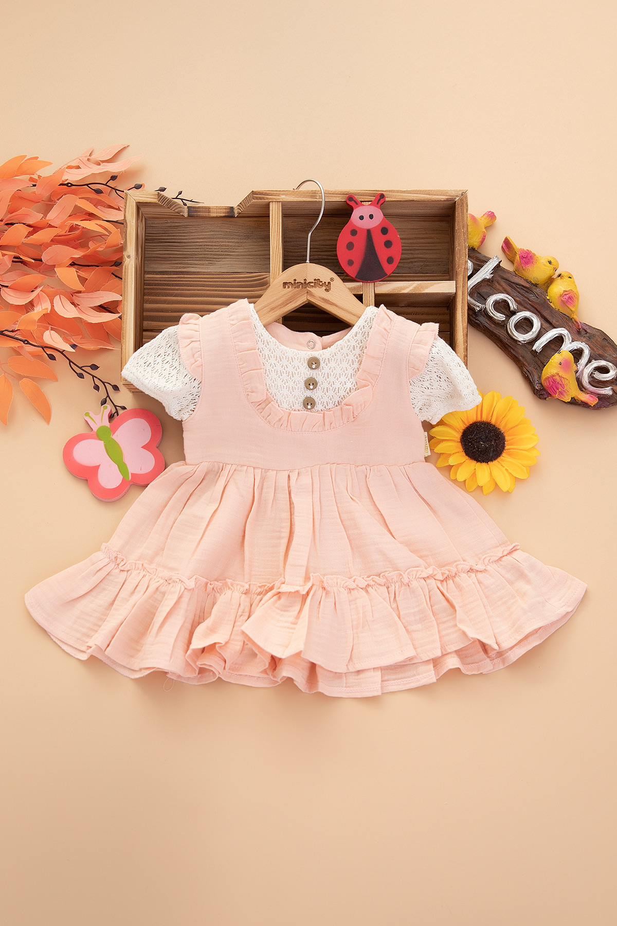 Kız Bebek Dantel Kol Düğmeli Elbise - 1655 (9-24 Ay)