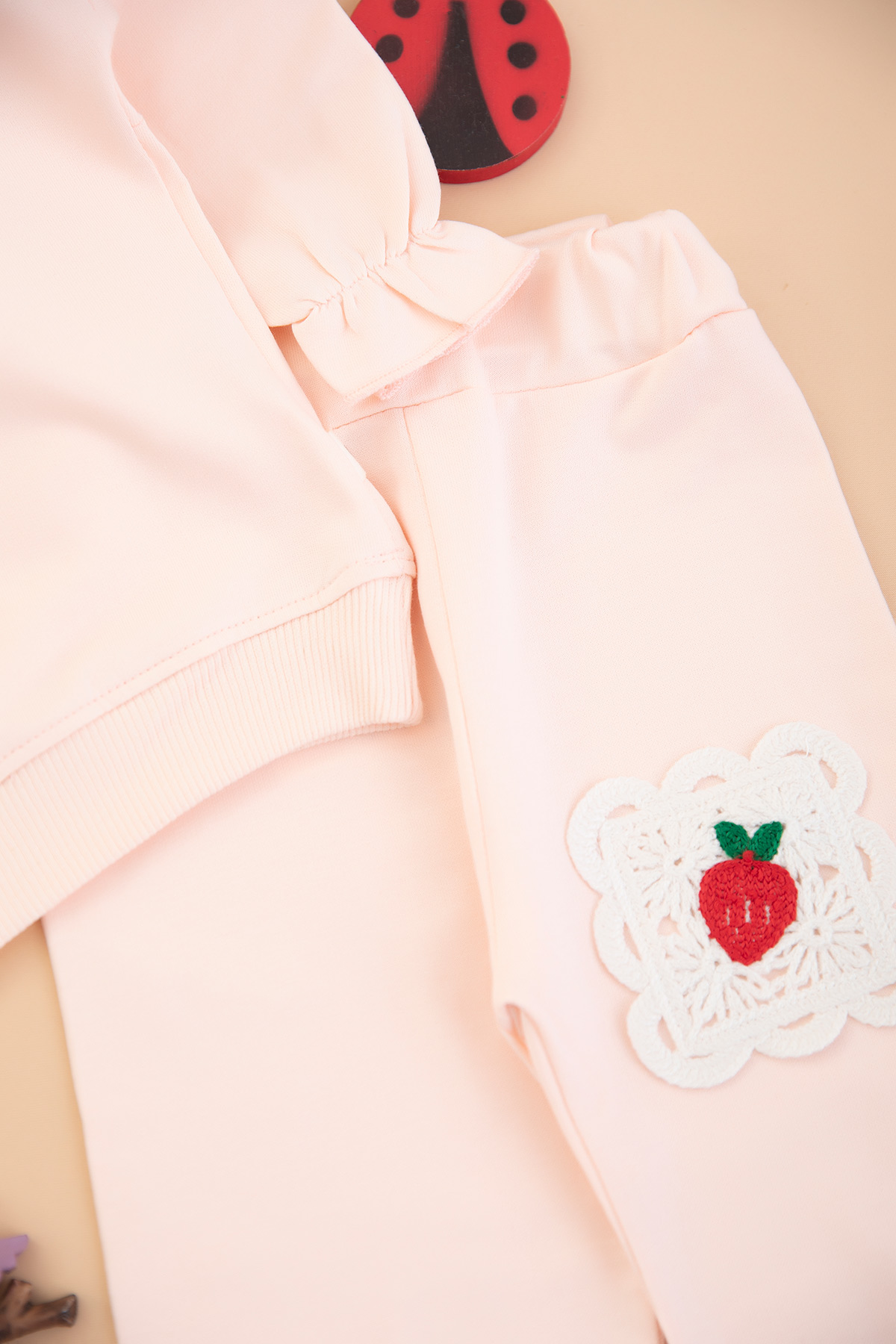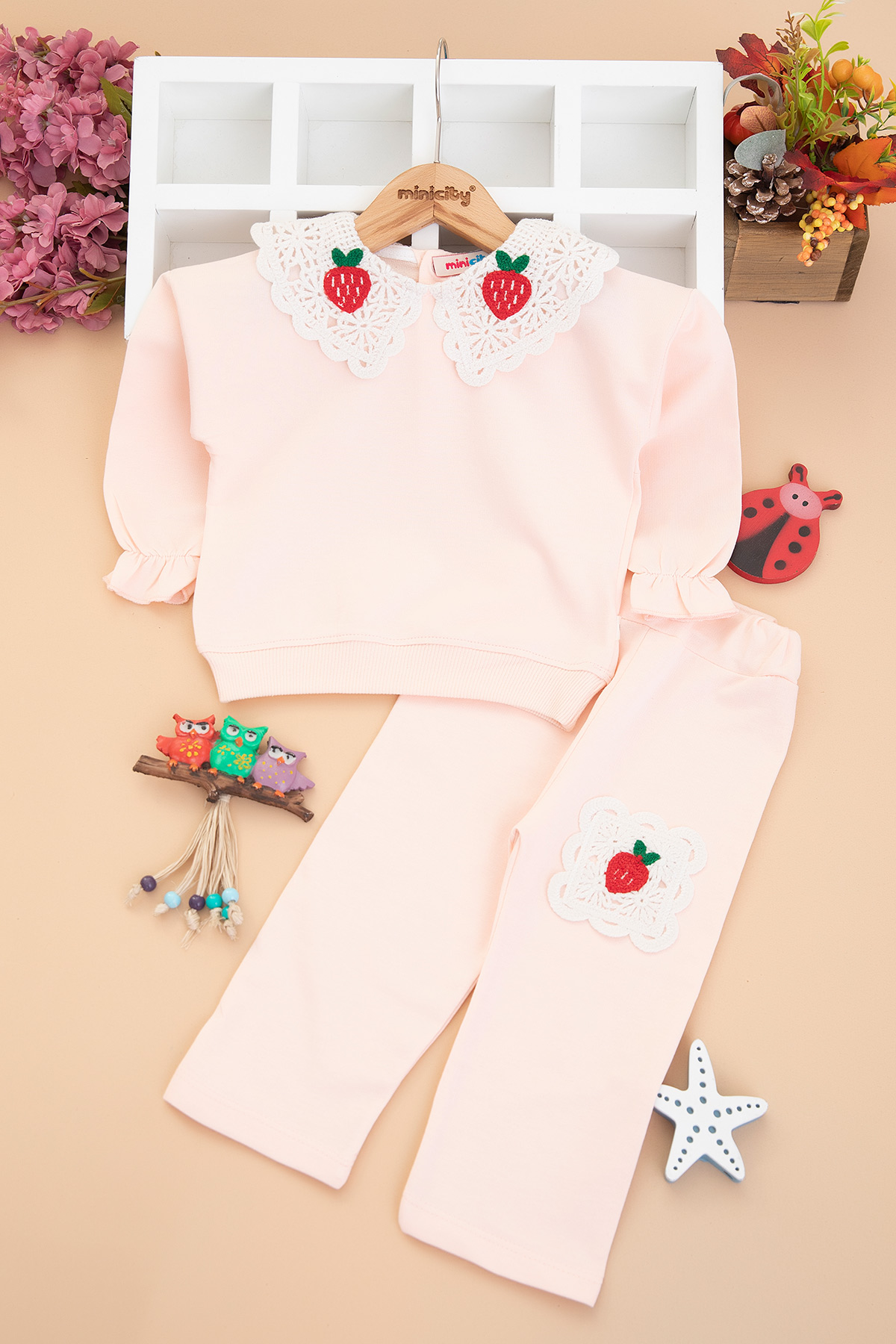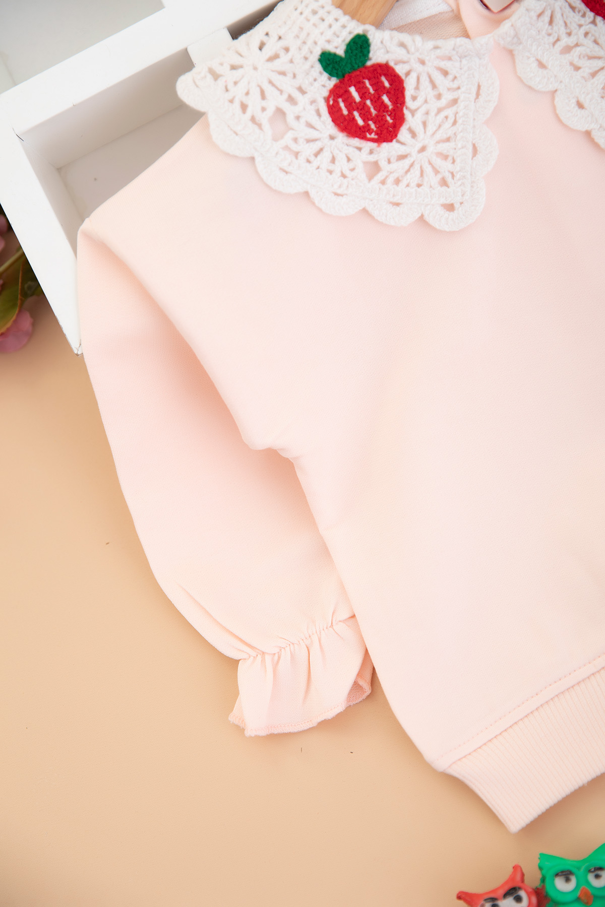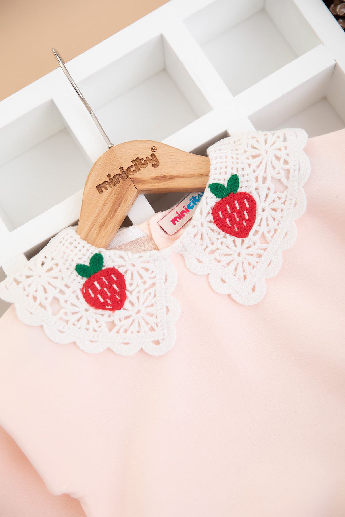 Kız Bebek Dantel Yaka Çilek Nakışlı Takım - 10388 (9-24 Ay)