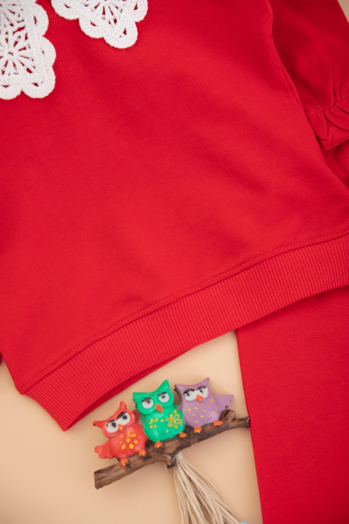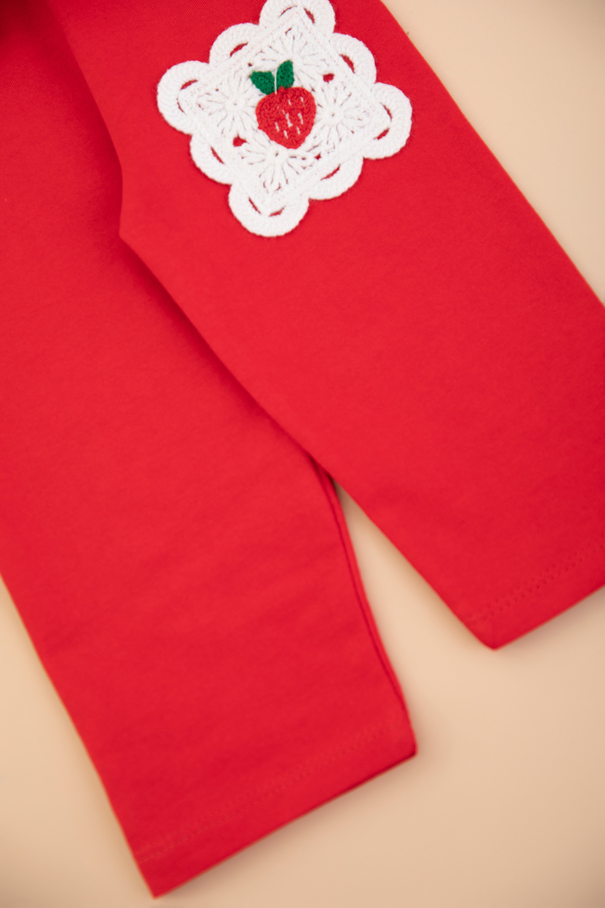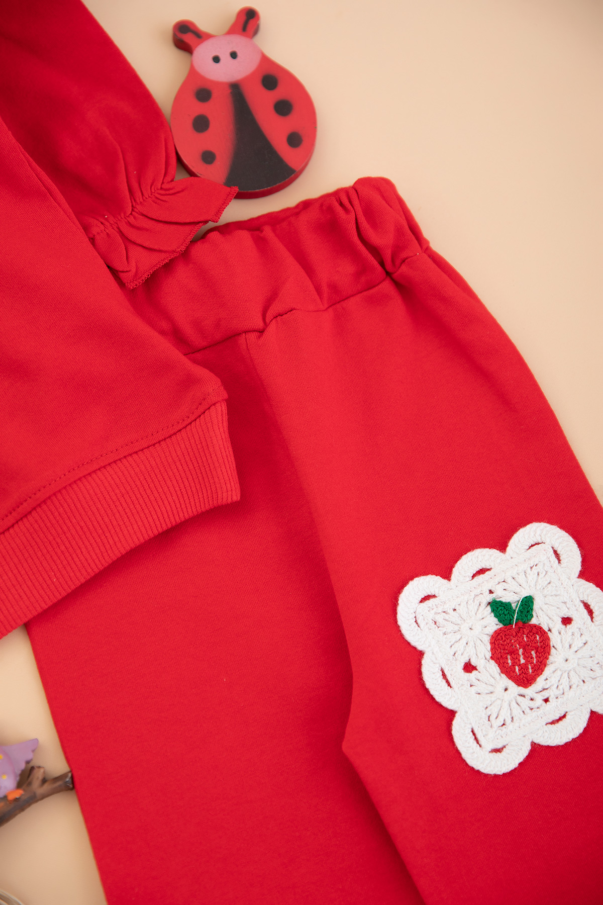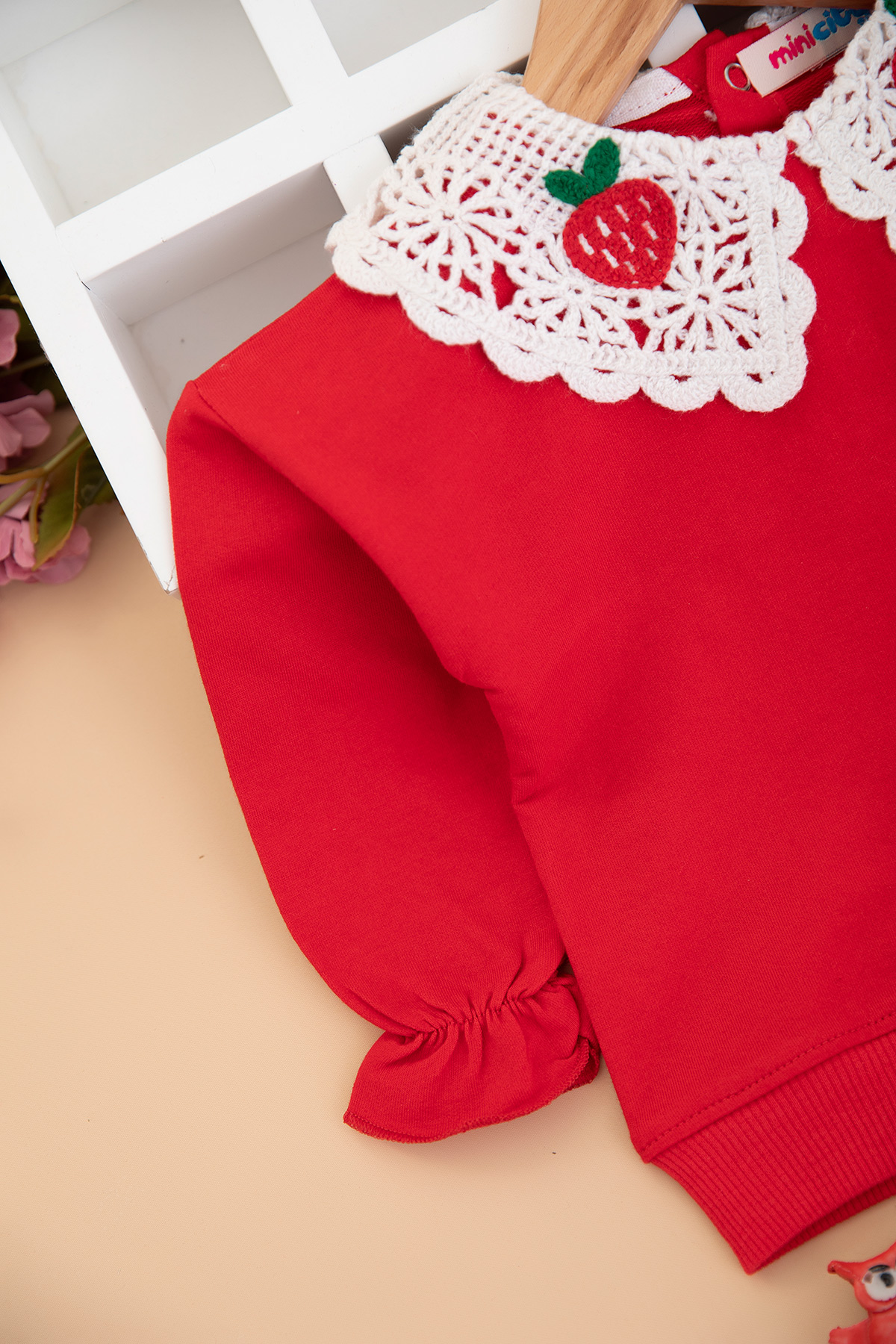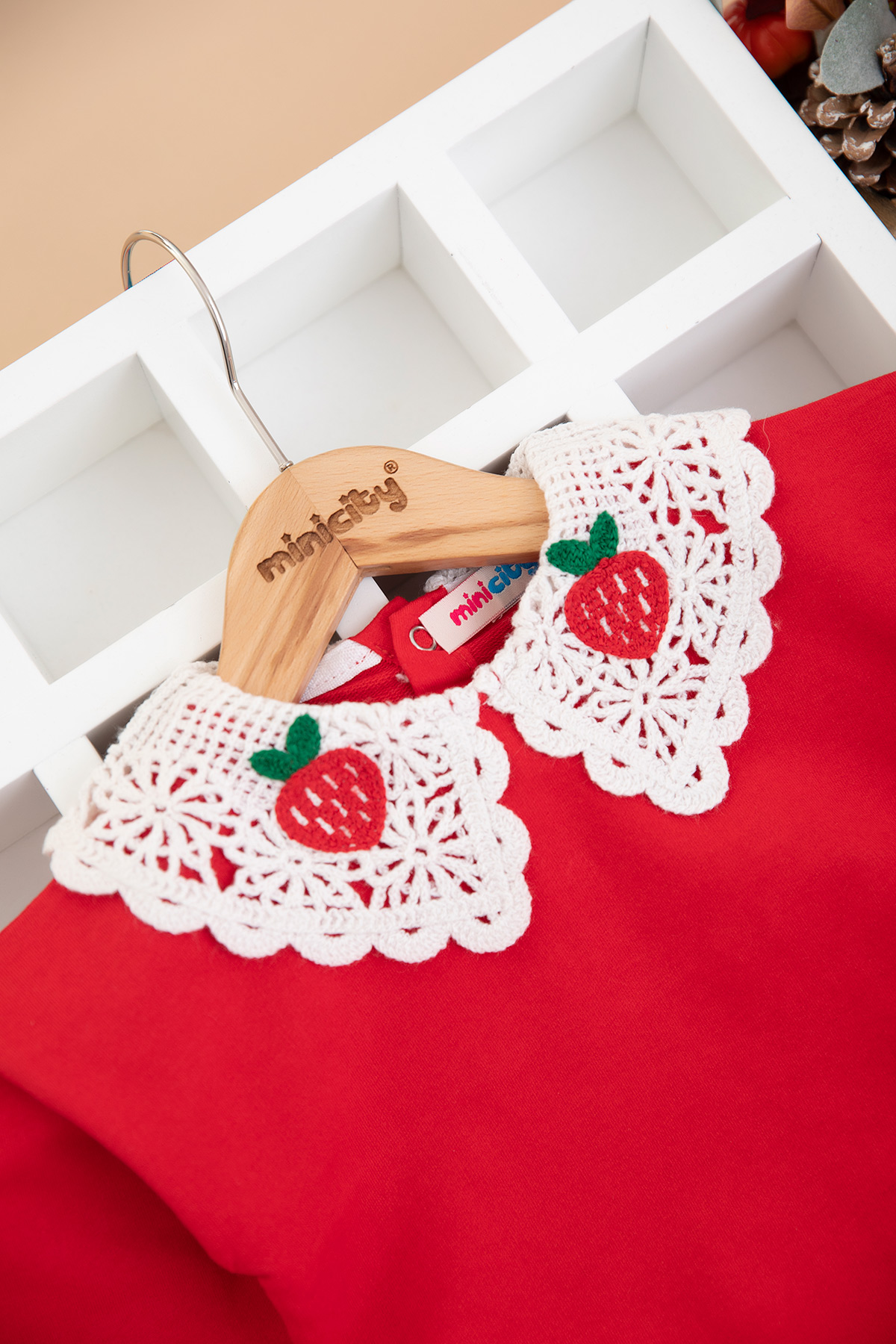 Kız Bebek Dantel Yaka Çilek Nakışlı Takım - 10388 (9-24 Ay)