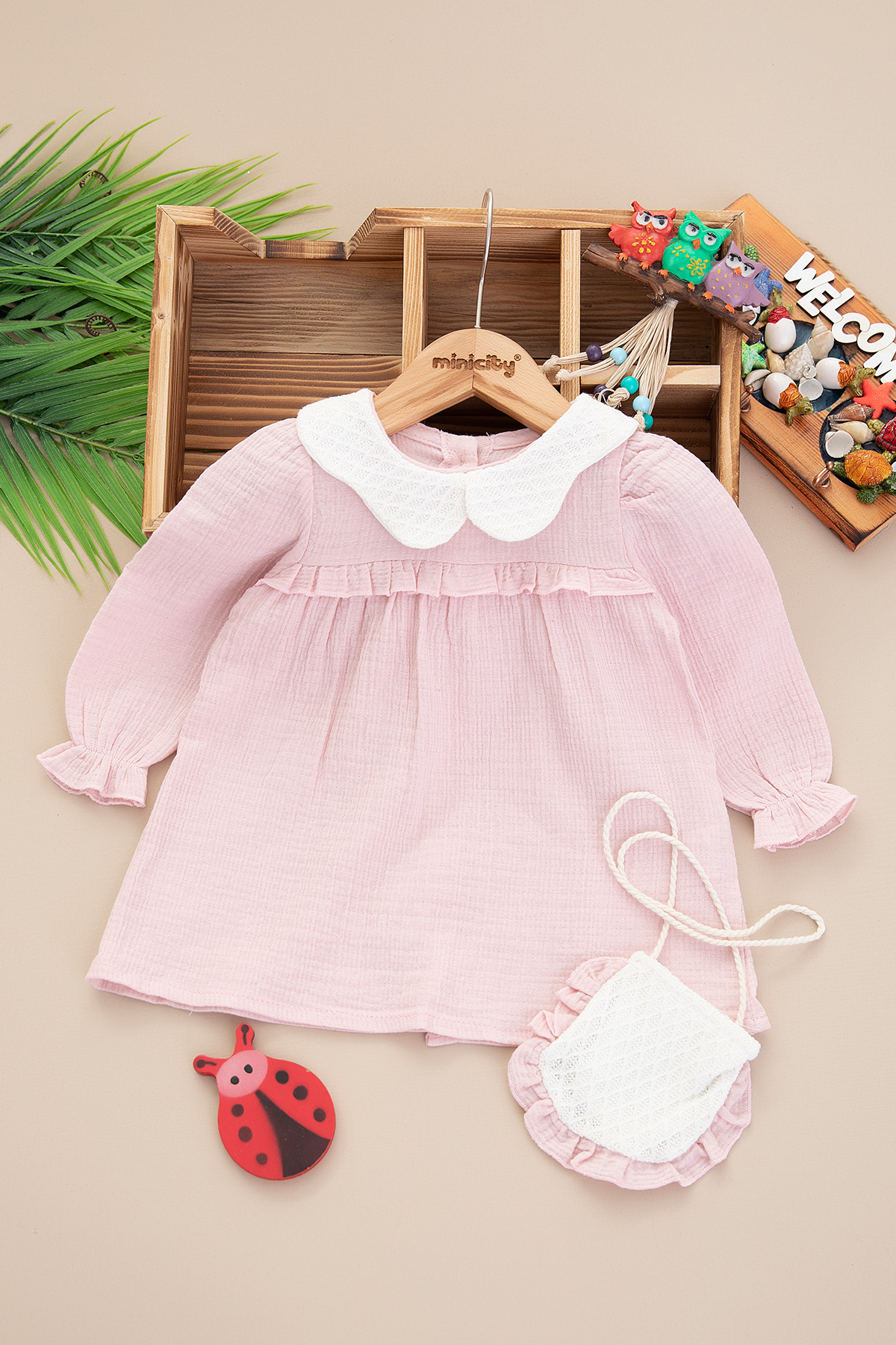 Kız Bebek Dantel Yaka Müslin Elbise - 3157 (9-24 Ay)