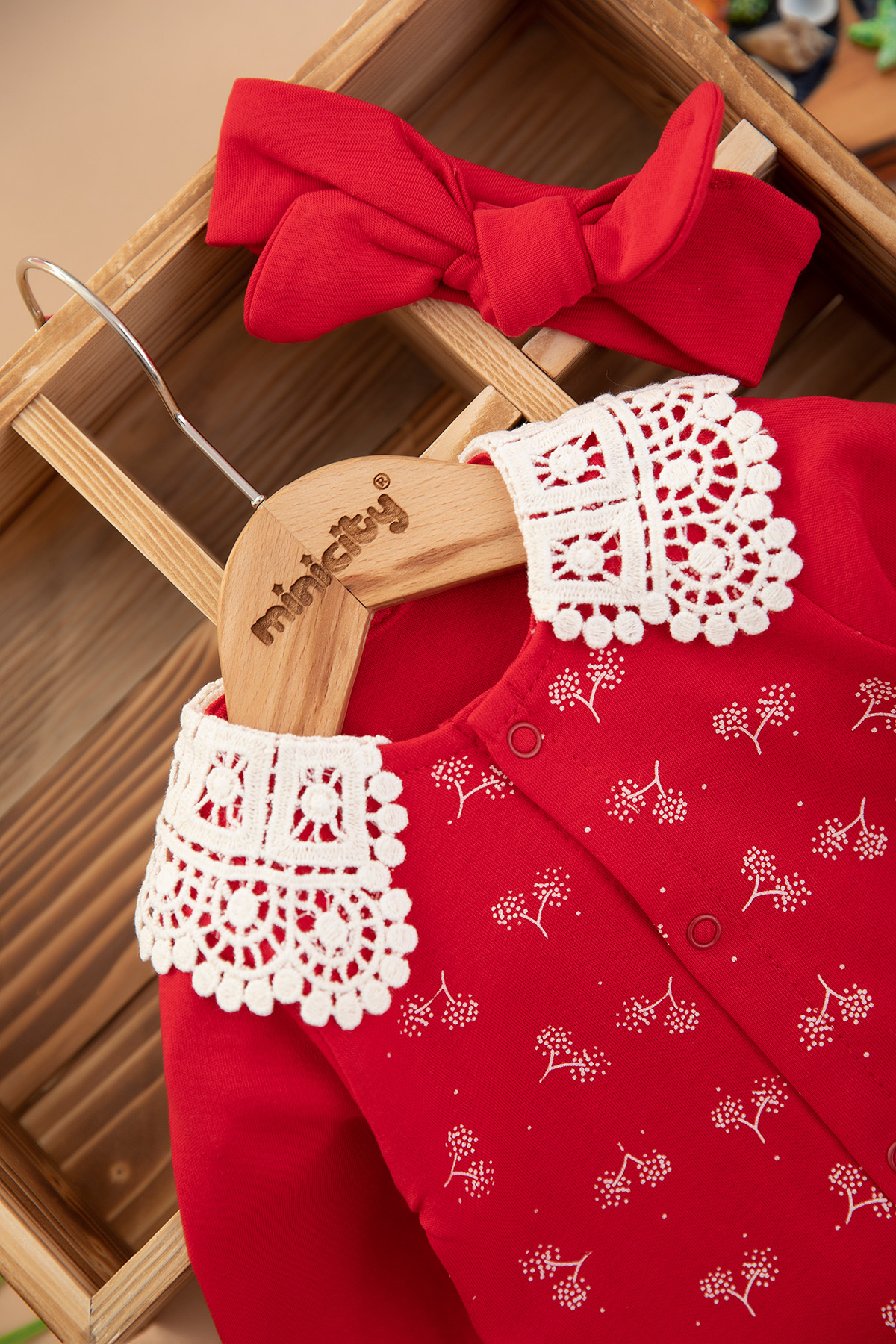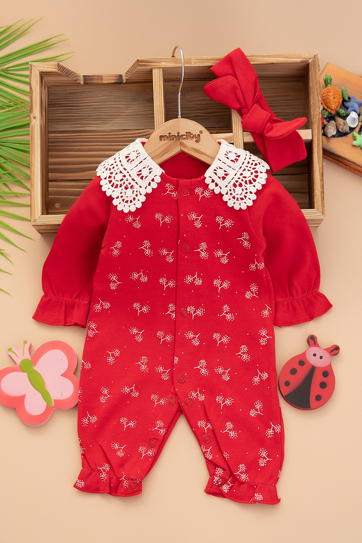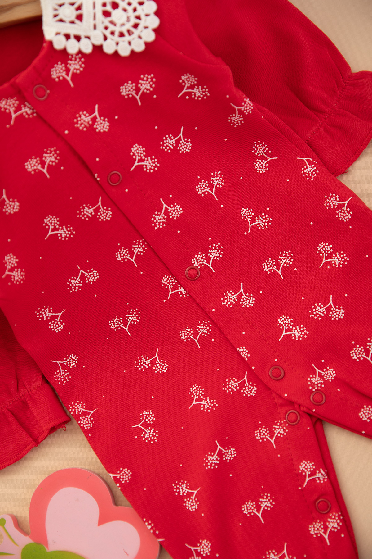 Kız Bebek Dantel Yakalı Baskılı Tulum - 2877 (0-6 Ay)
