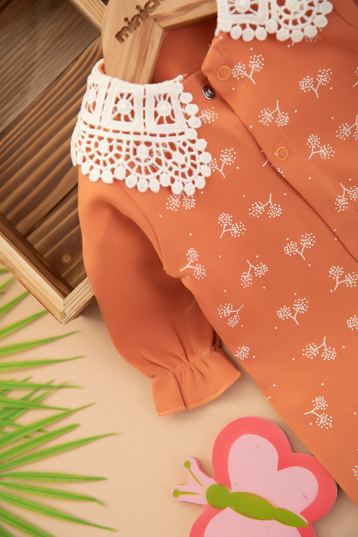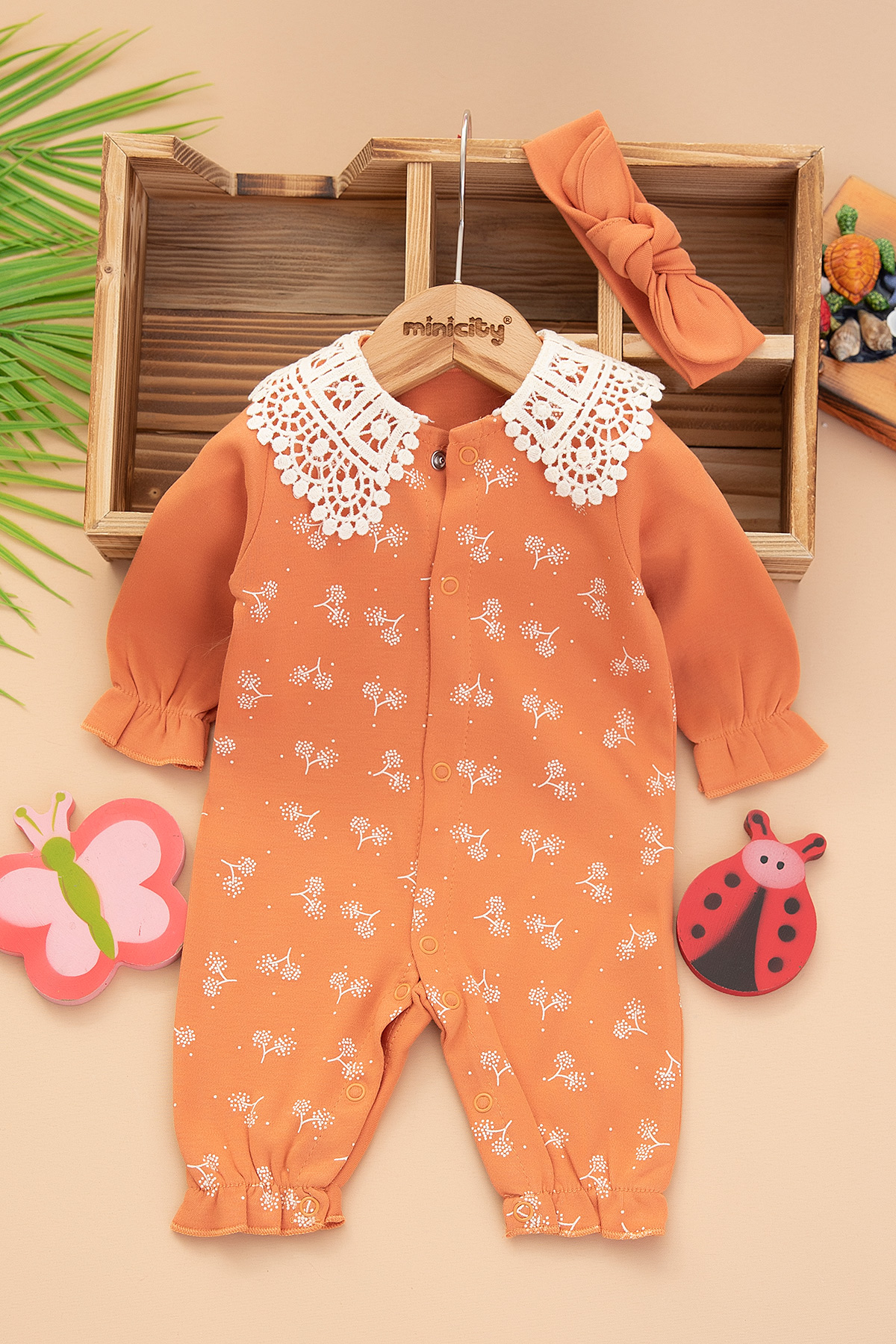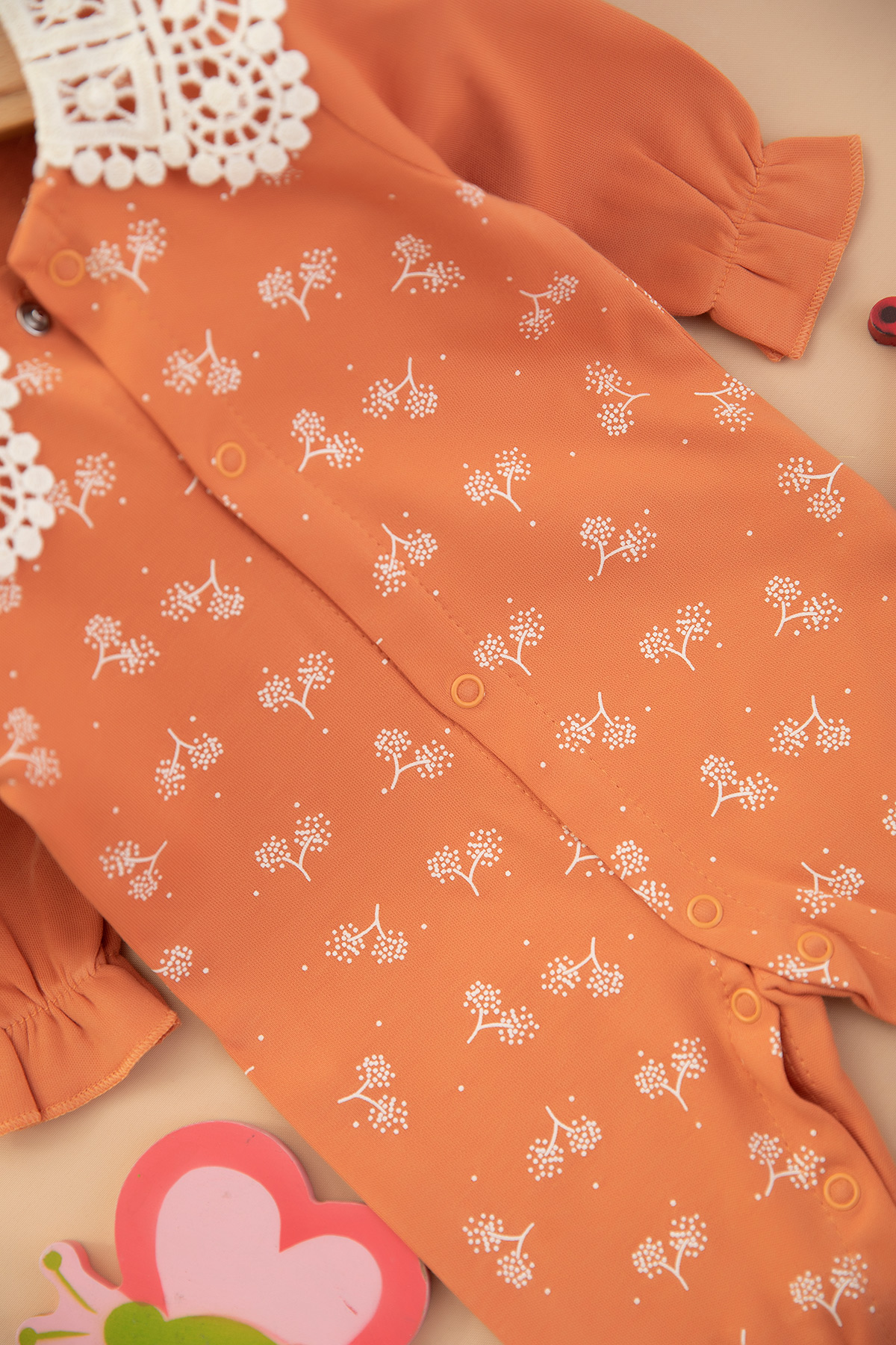 Kız Bebek Dantel Yakalı Baskılı Tulum - 2877 (0-6 Ay)