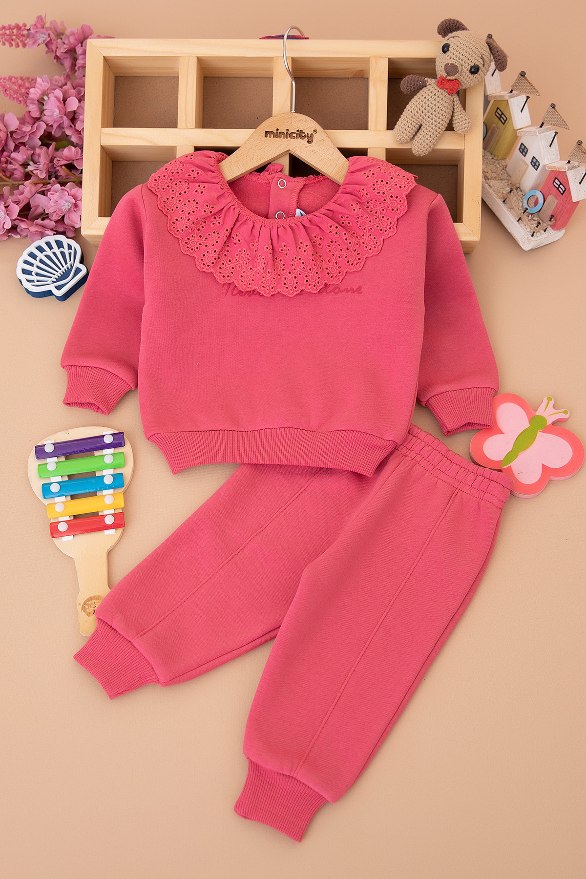 Kız Bebek Dantel Yakalı Üçip Takım - 25866 (9-24 Ay)