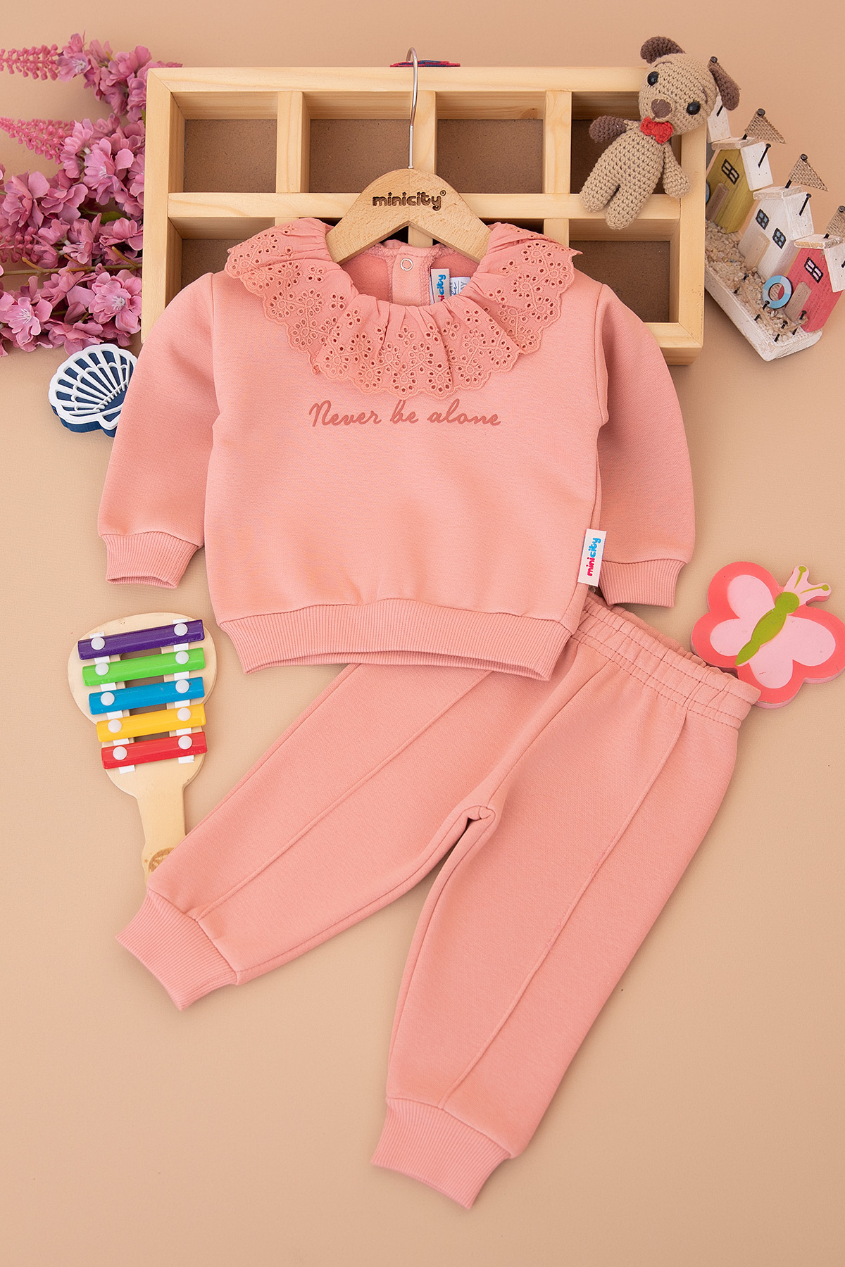 Kız Bebek Dantel Yakalı Üçip Takım - 25866 (9-24 Ay)