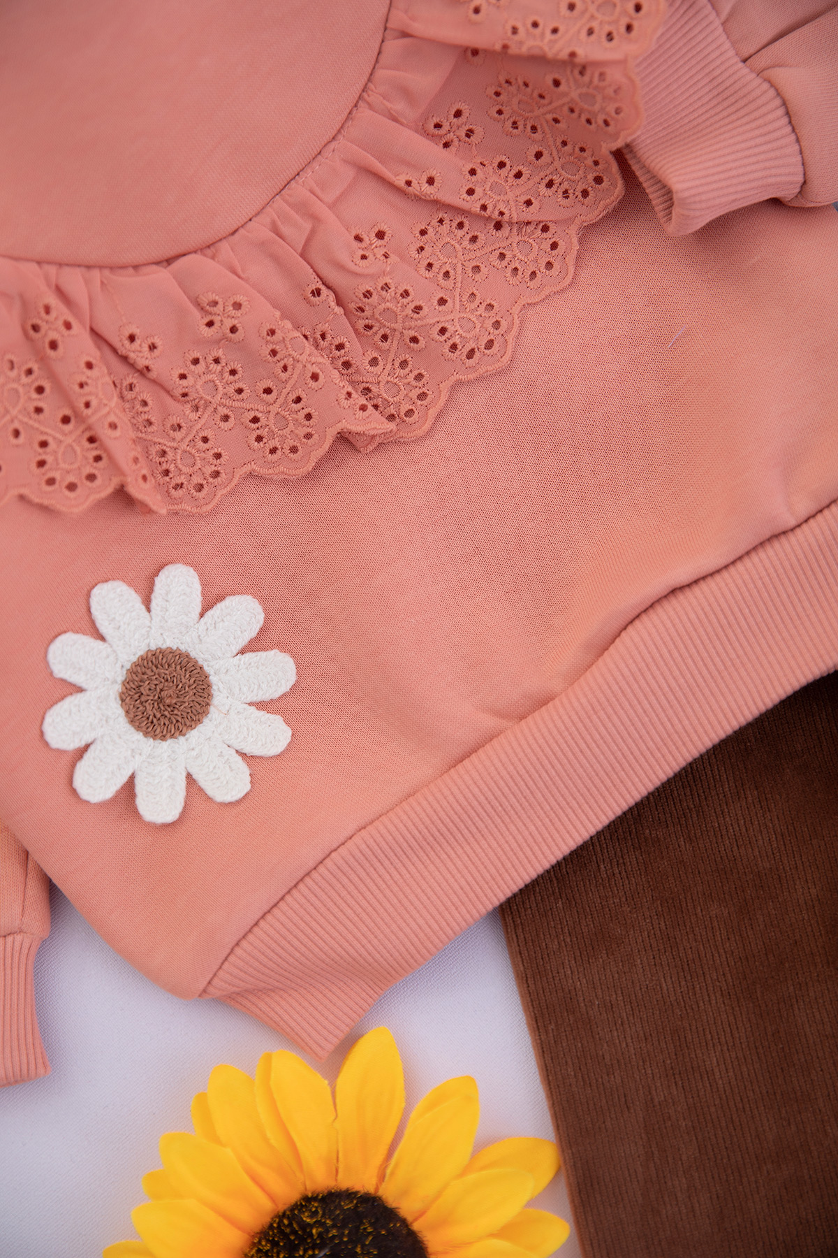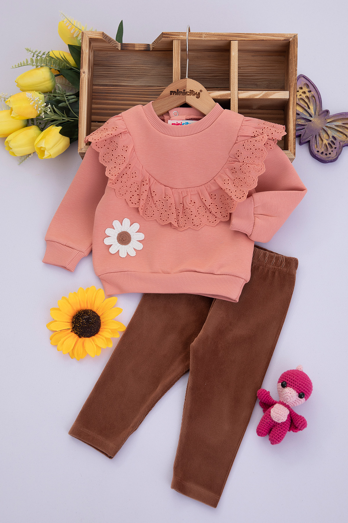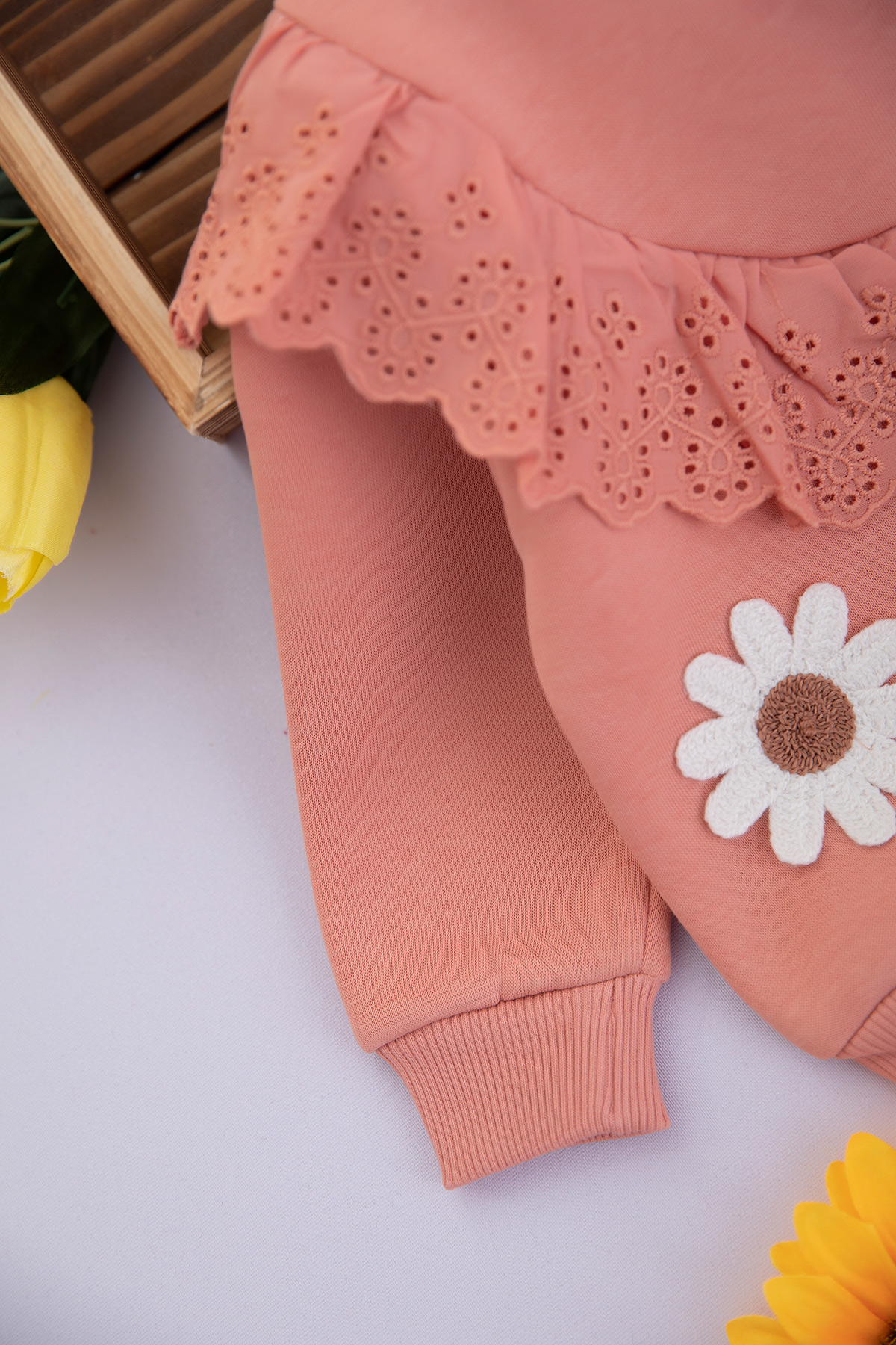Kız Bebek Dantelli Çiçek Nakışlı Üç İp Takım - 24826 (9-24 Ay)