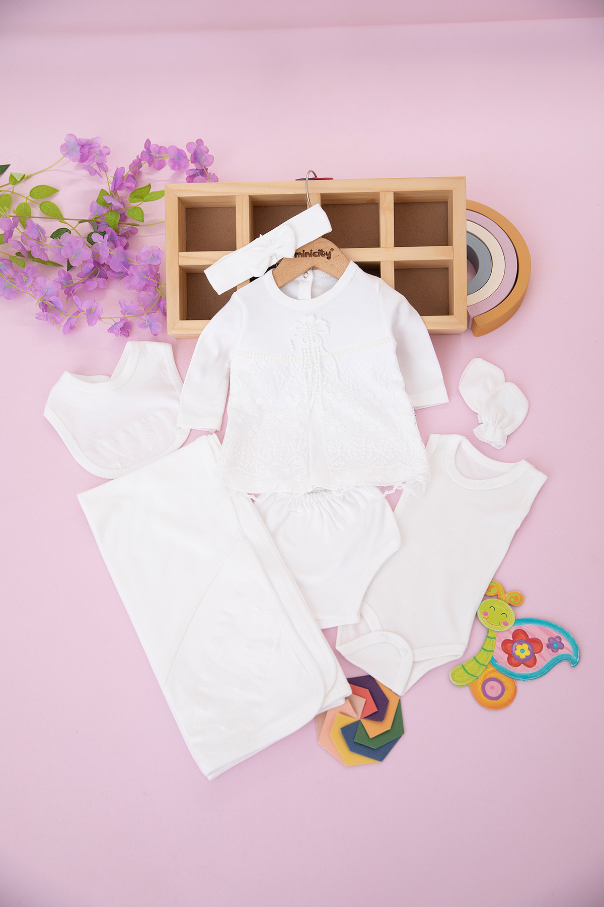 Kız Bebek Dantelli Taşlı 7`Li Zıbın Seti - 11006 (0-3 Ay)