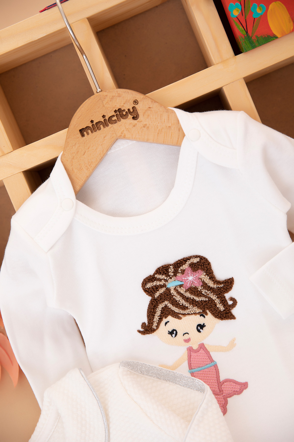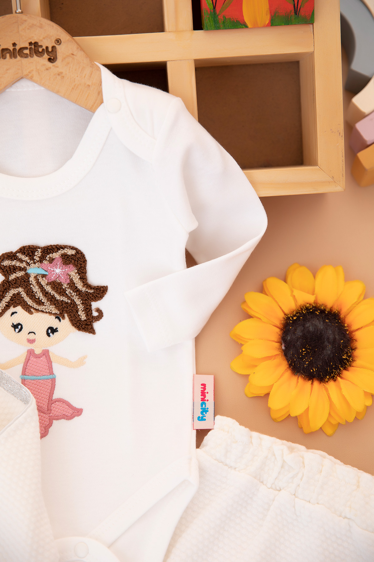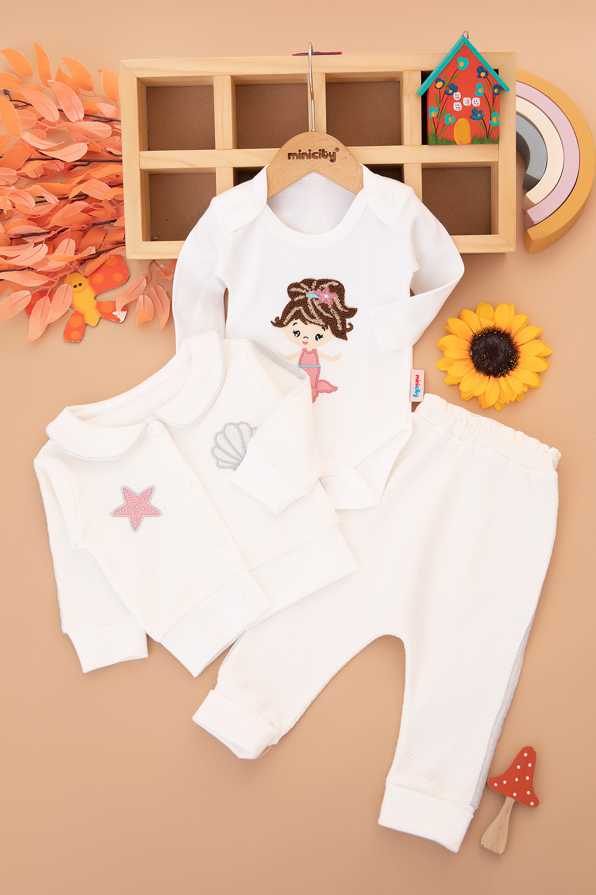 Kız Bebek Deniz Kızı Nakışlı Üçlü Takım - 1221 (3-9 Ay)