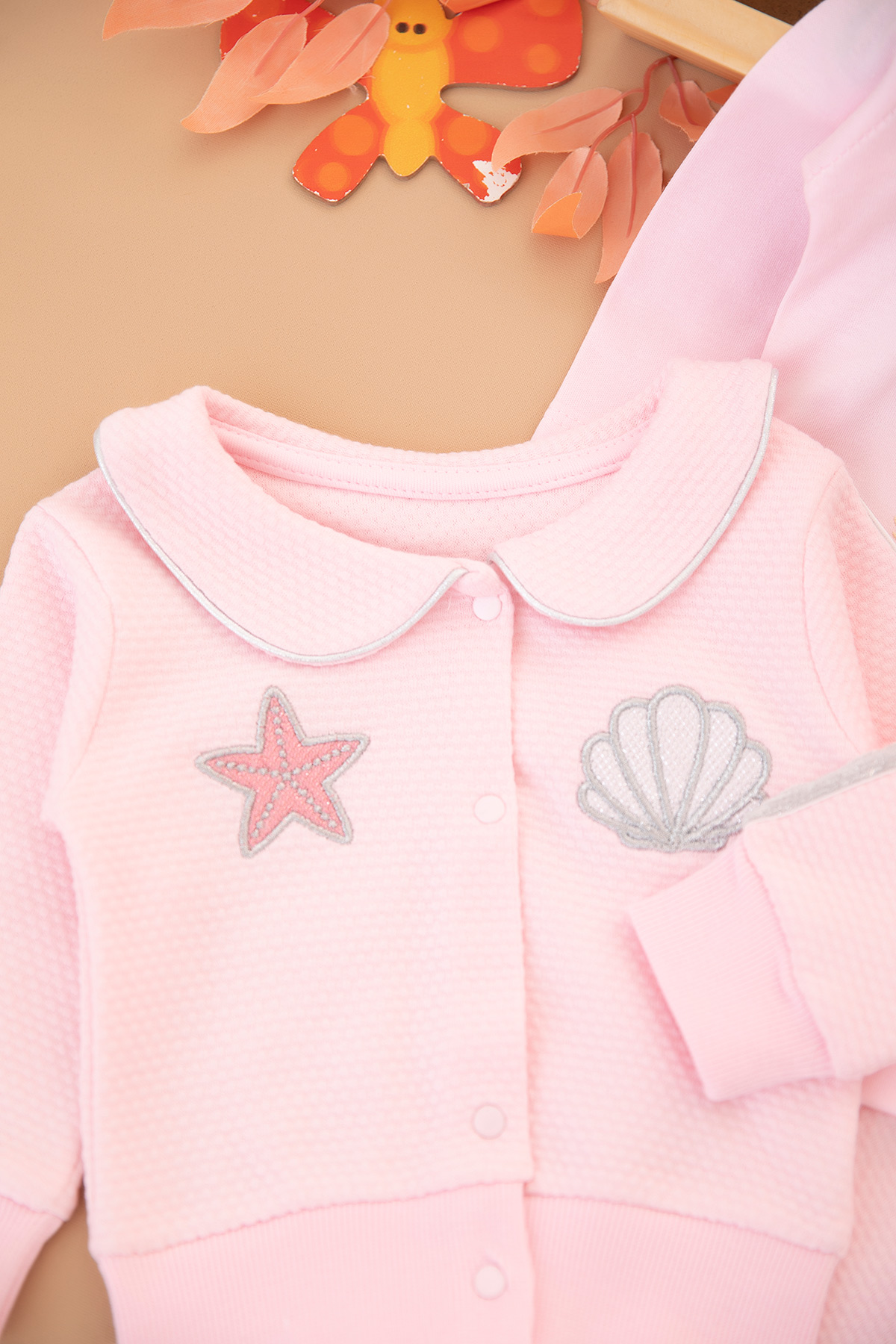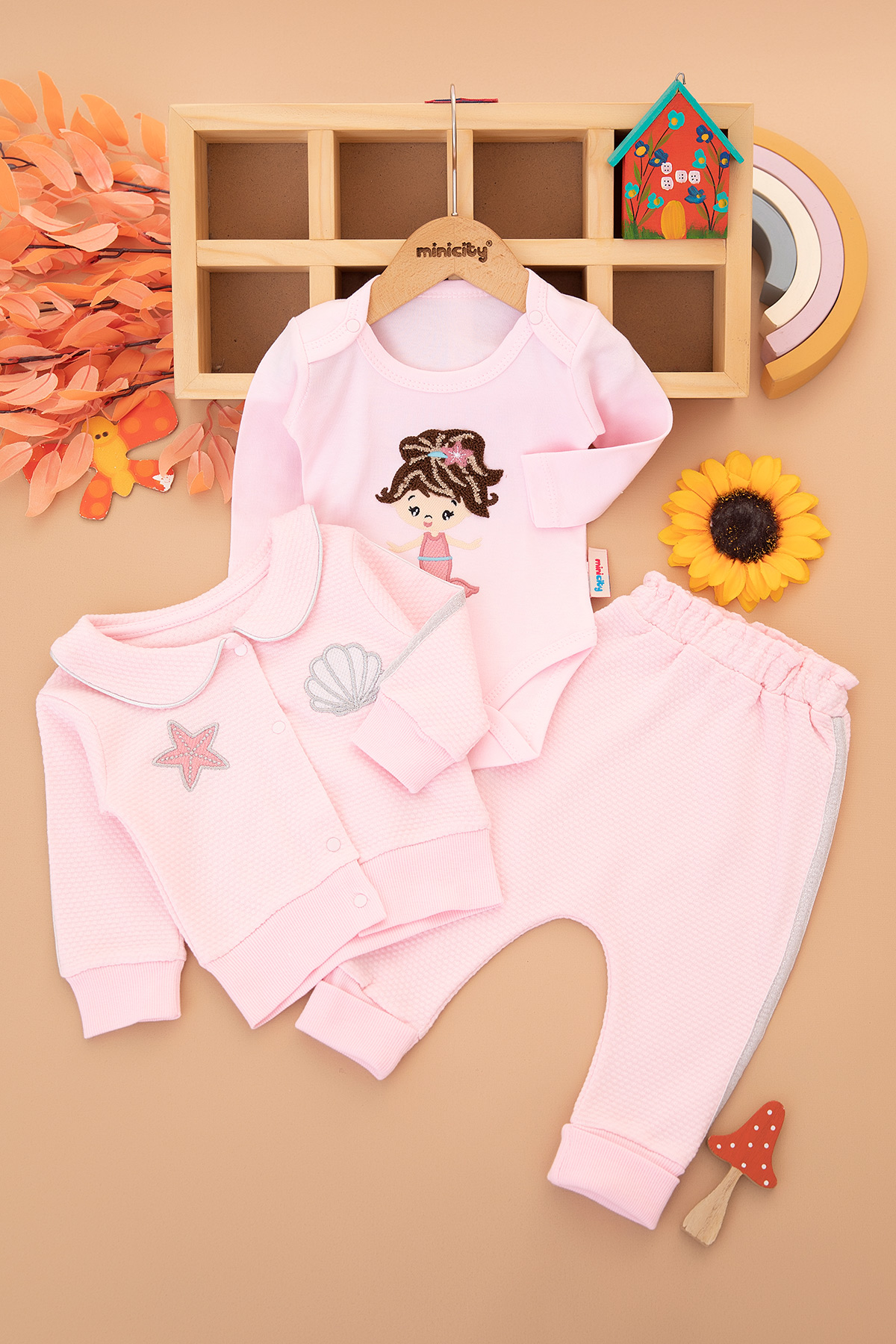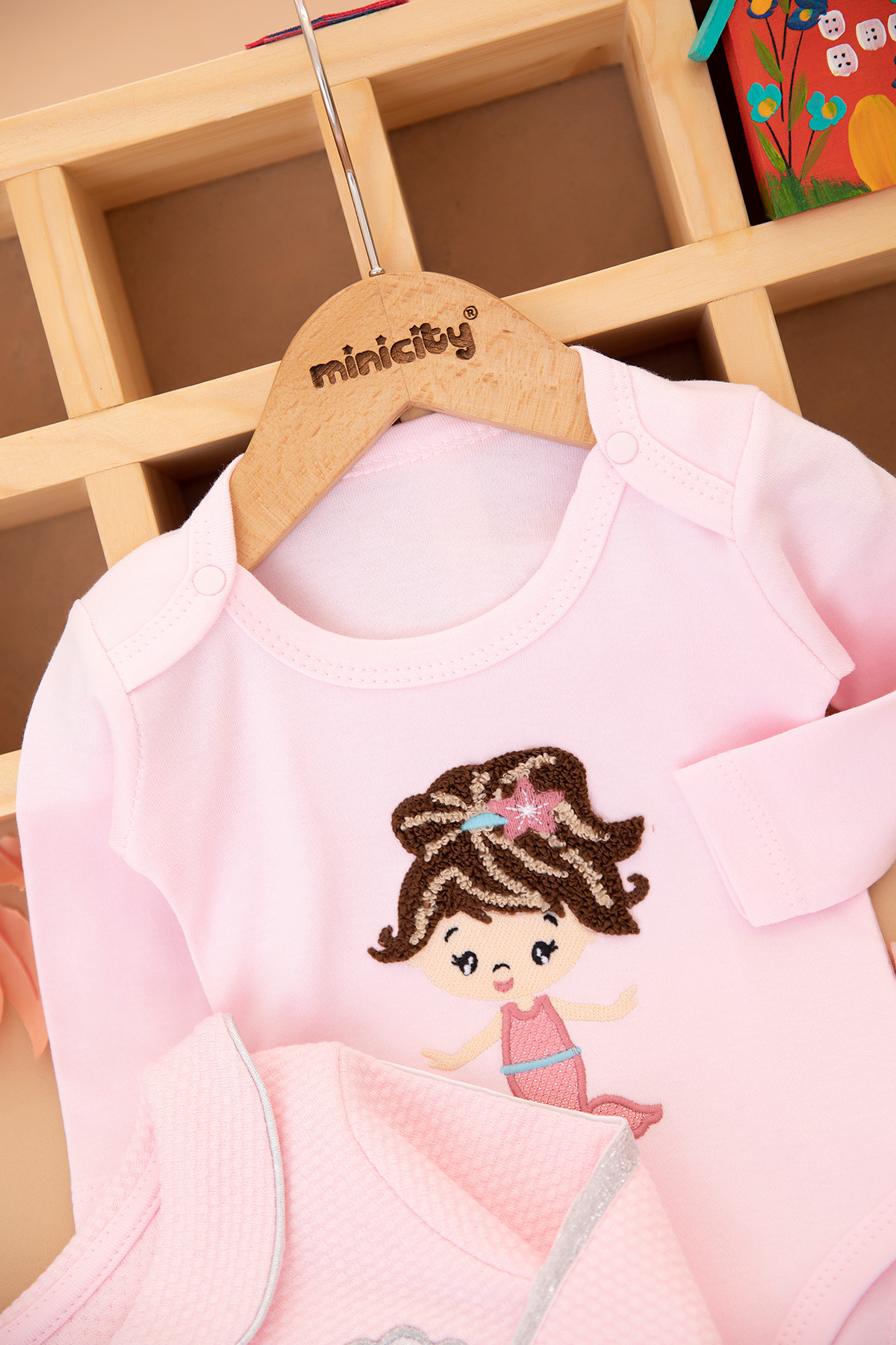 Kız Bebek Deniz Kızı Nakışlı Üçlü Takım - 1221 (3-9 Ay)