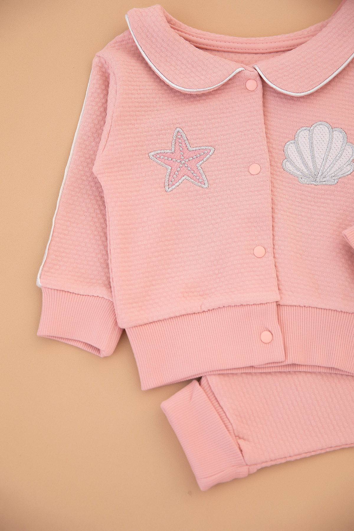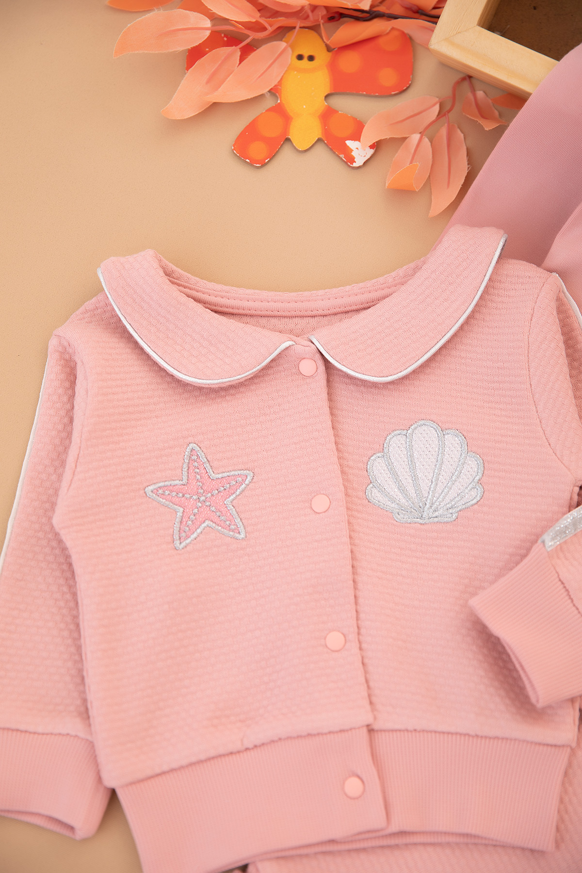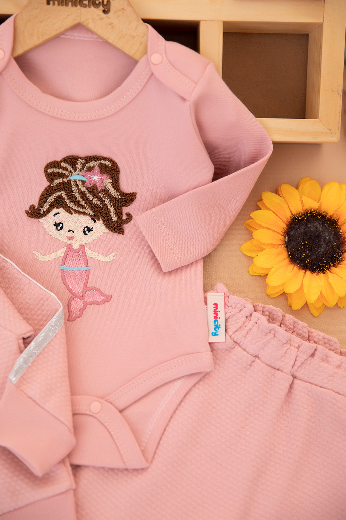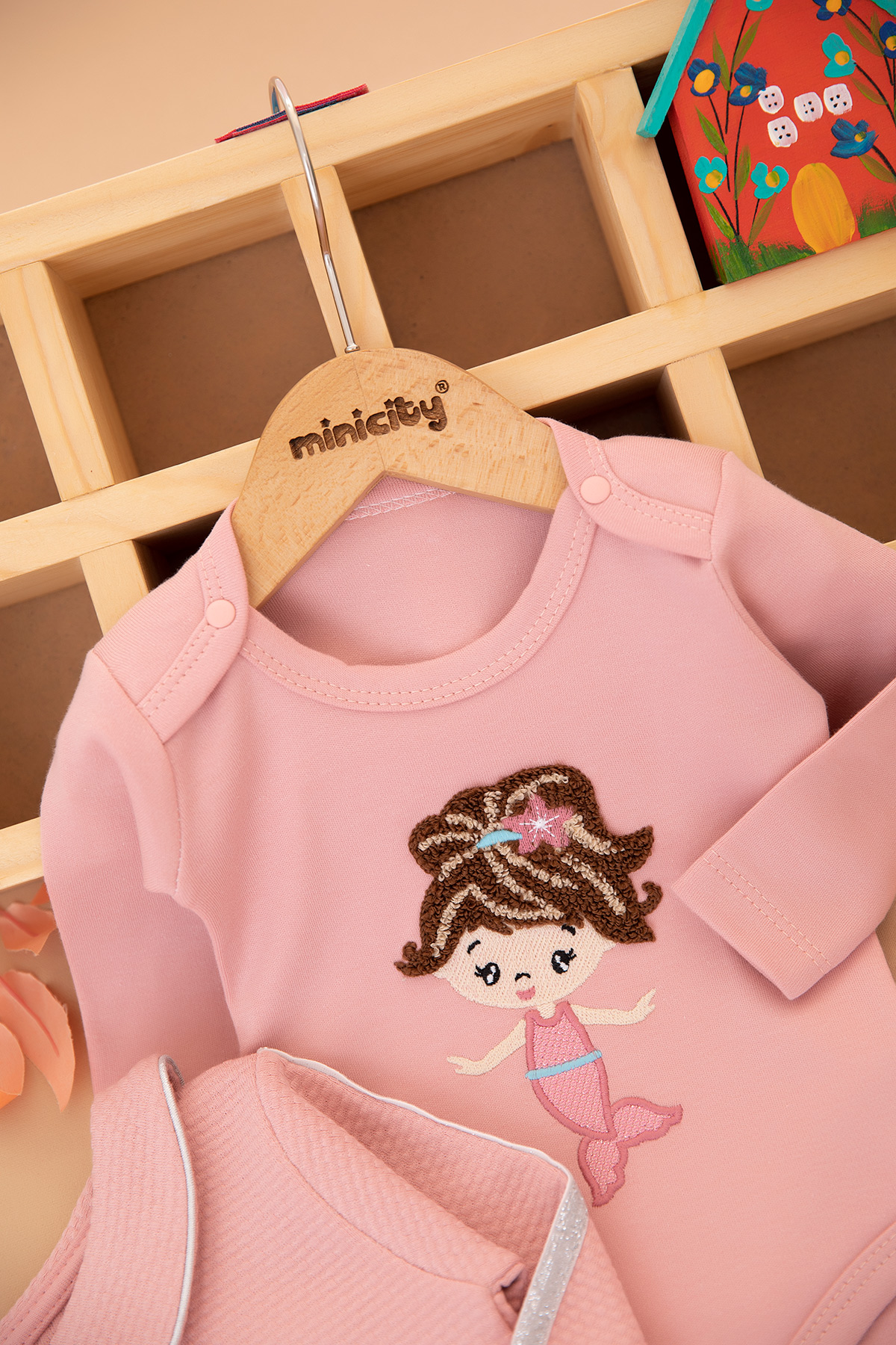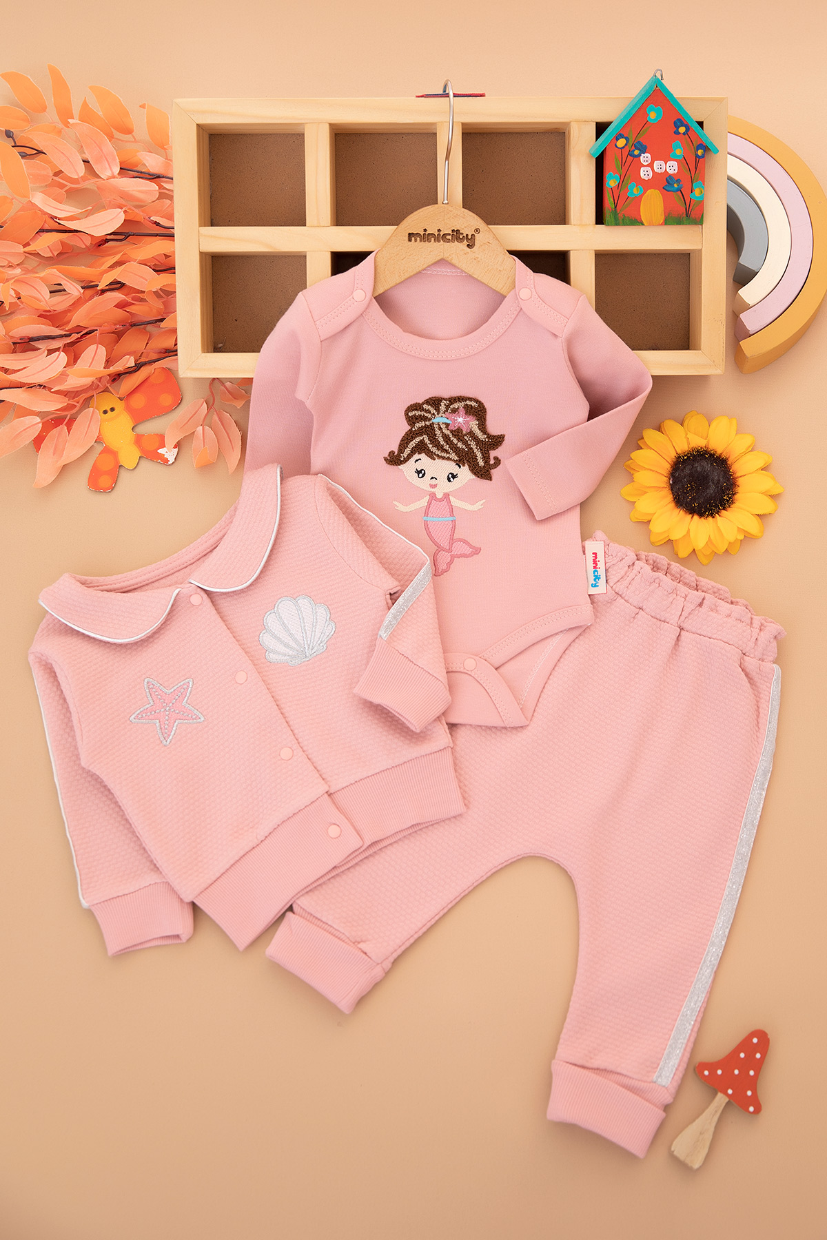Kız Bebek Deniz Kızı Nakışlı Üçlü Takım - 1221 (3-9 Ay)