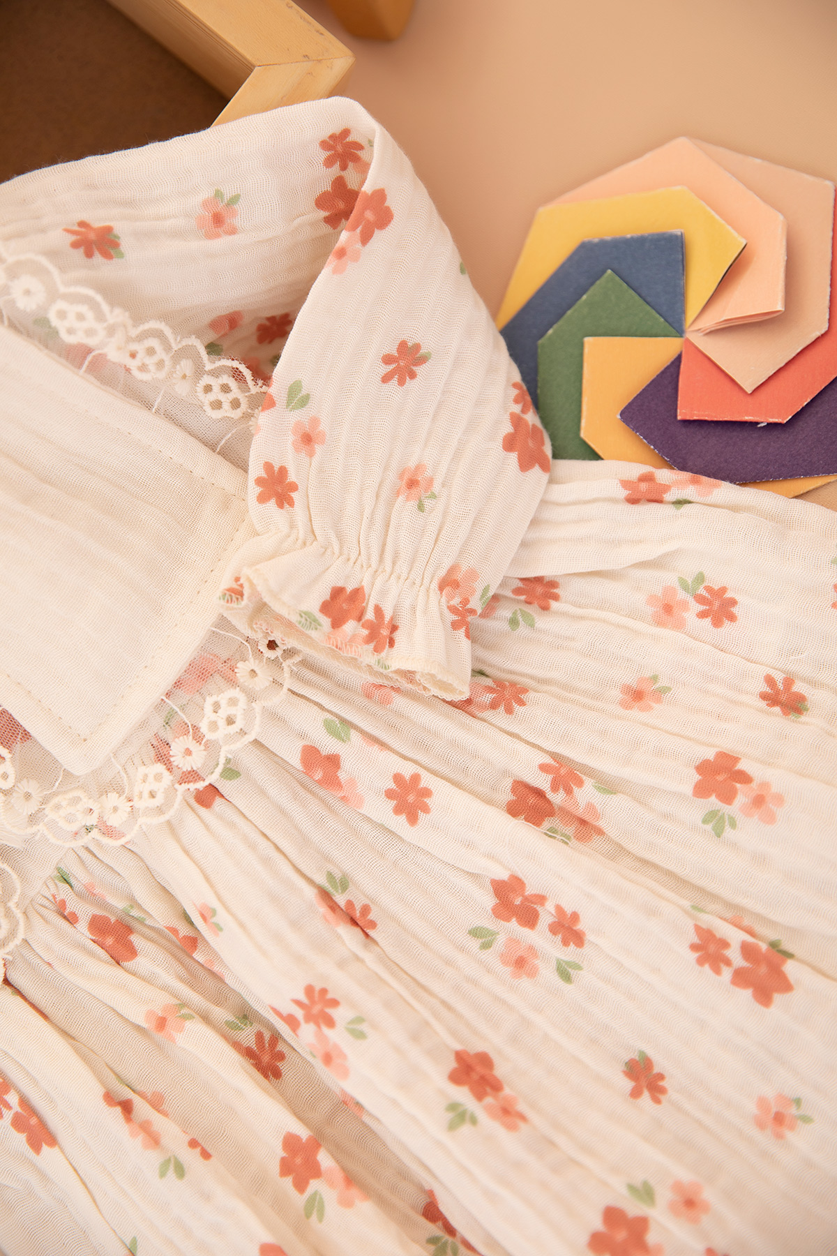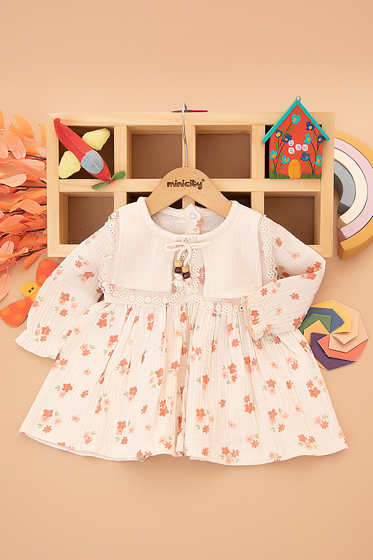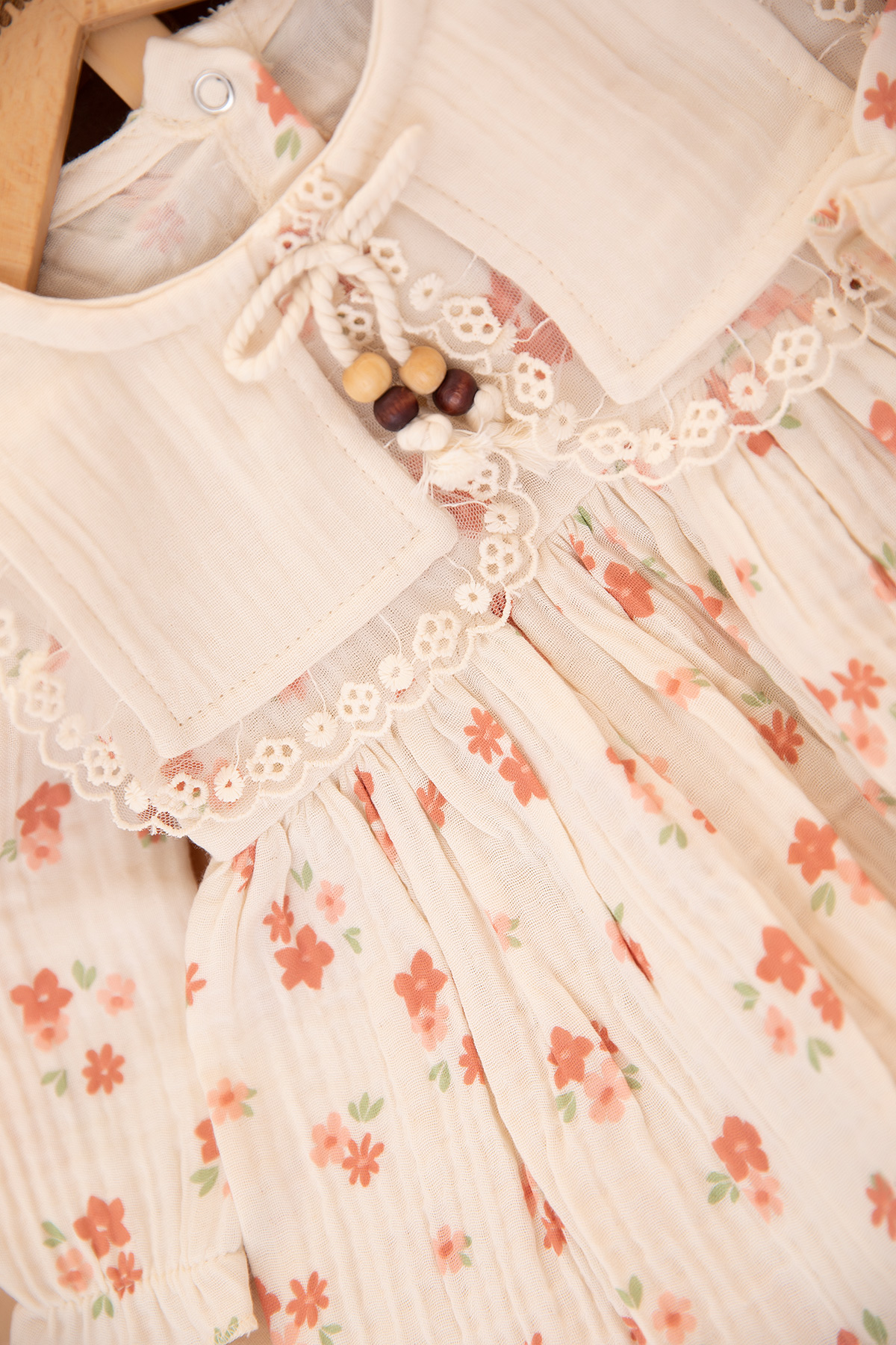 Kız Bebek Denizci Yaka Çiçekli Elbise - 2134 (9-24 Ay)