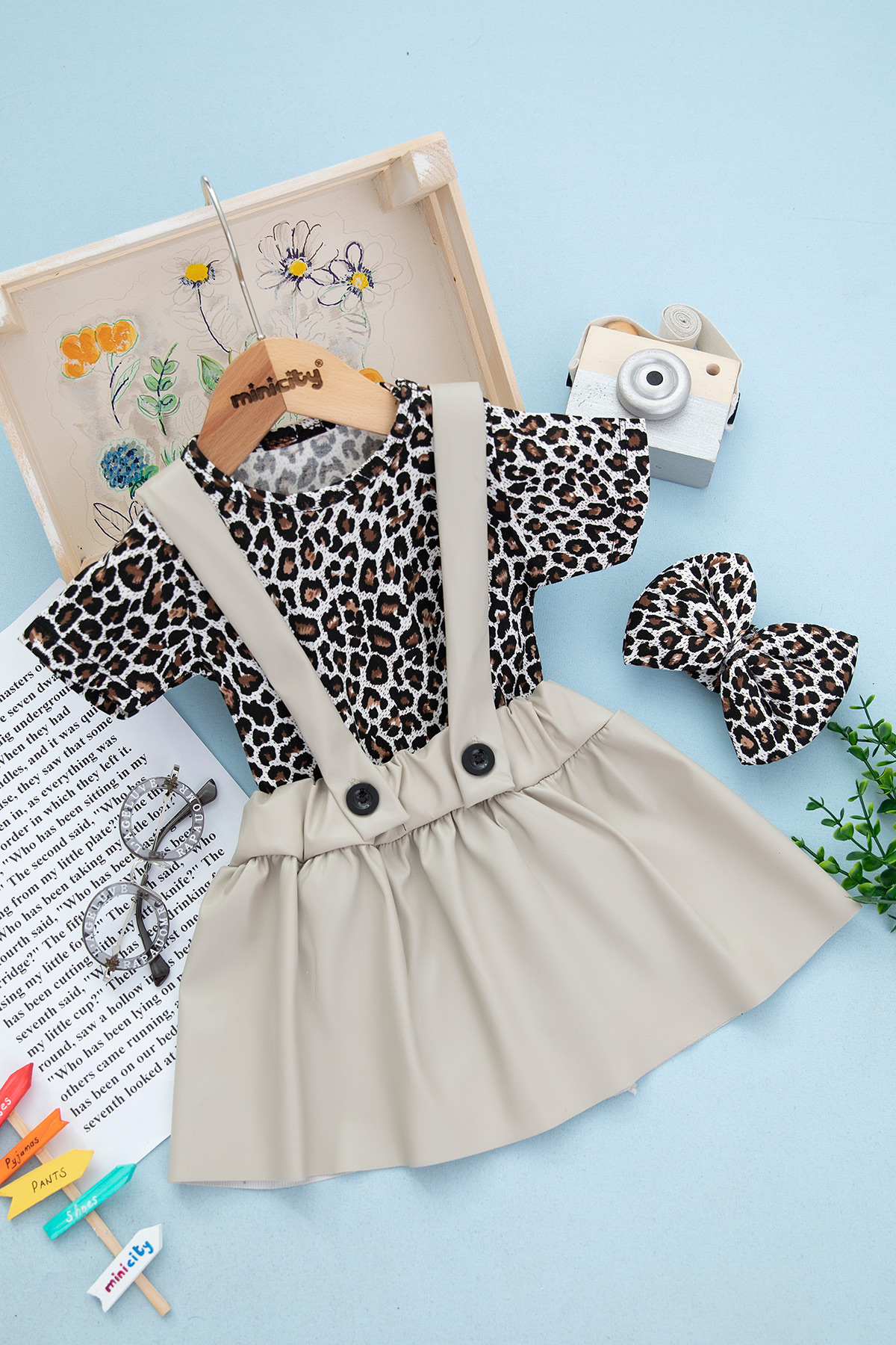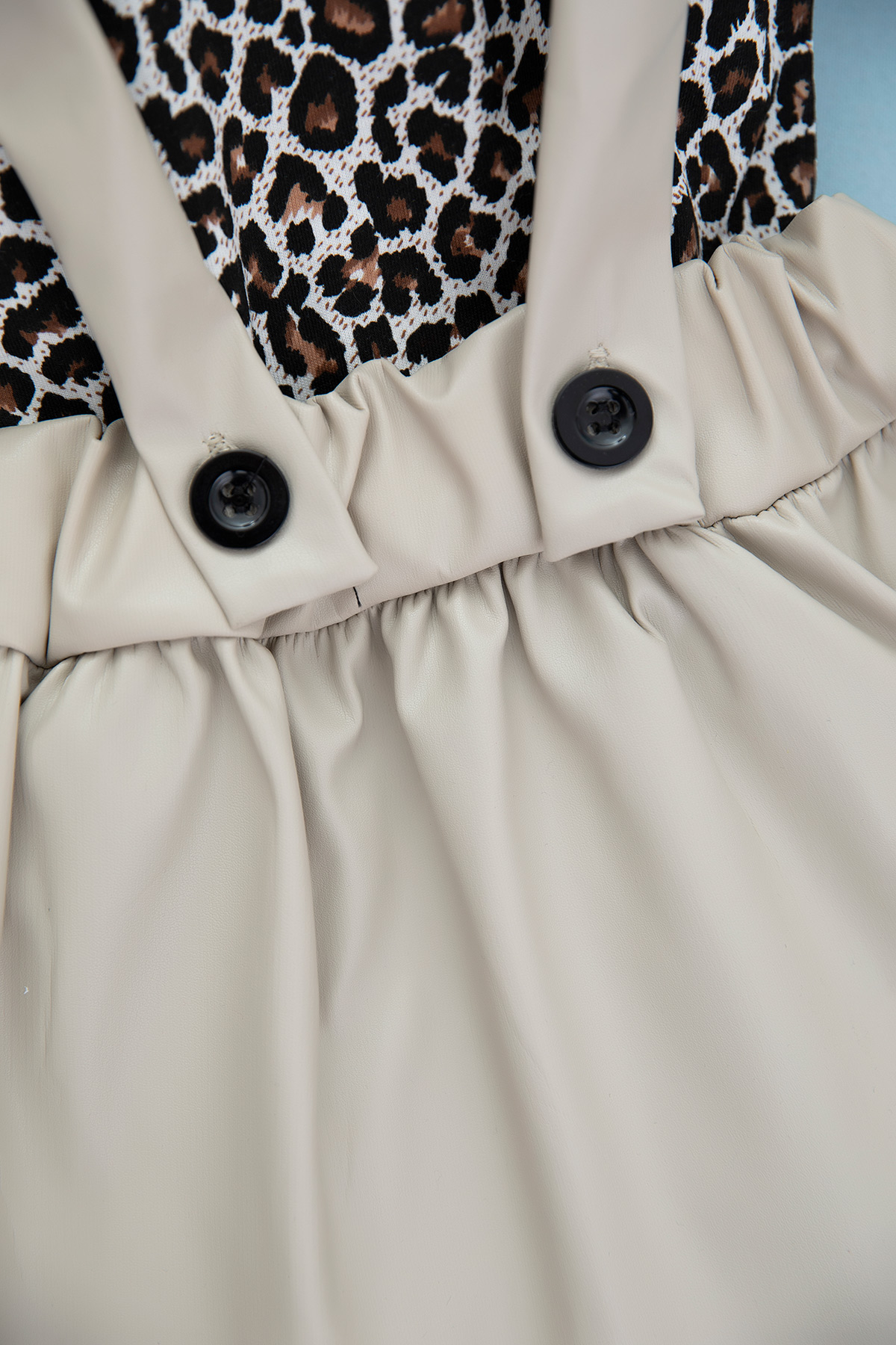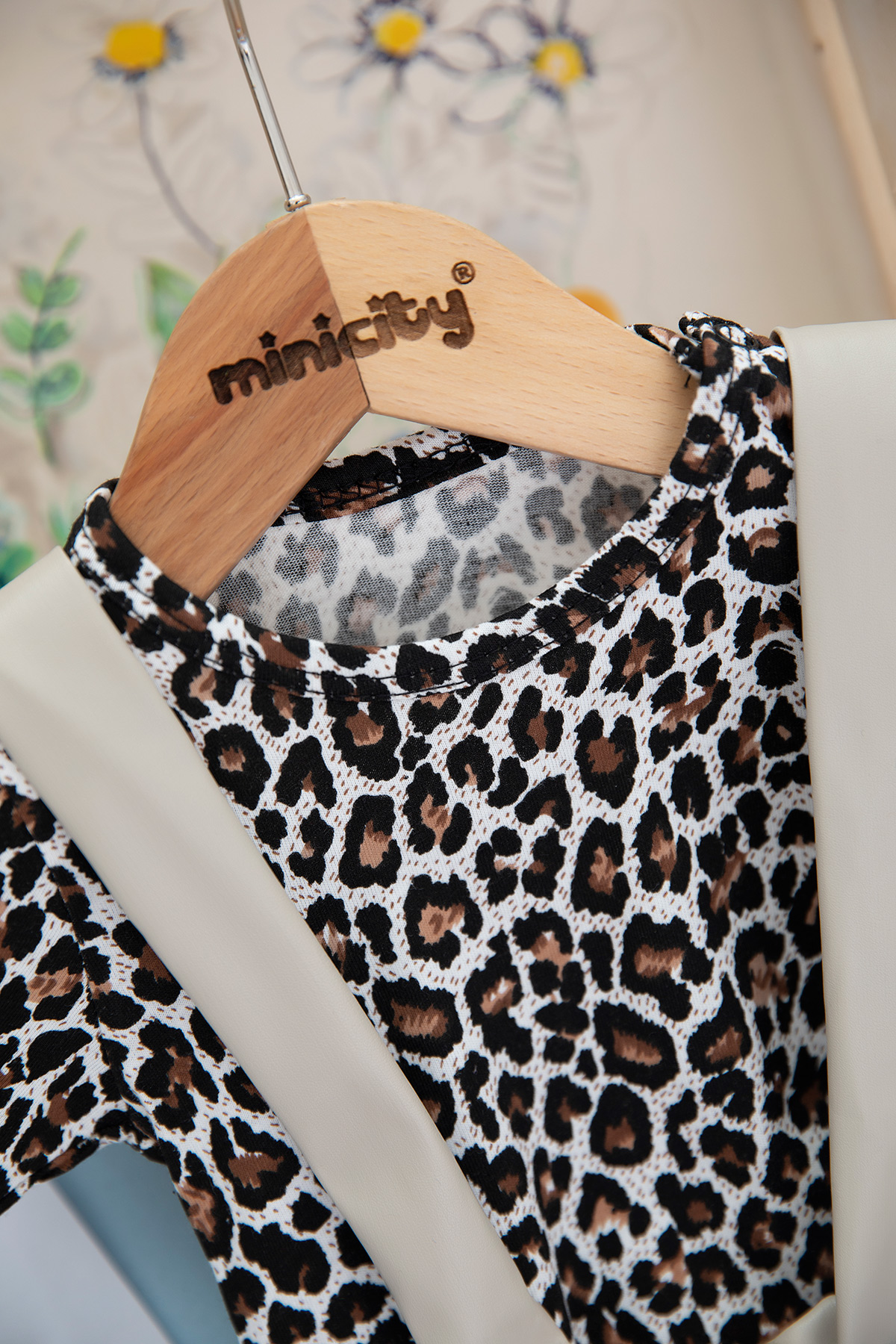 Kız Bebek Deri Leopar Badili Salopet - 1564-6472 (3-12 Ay)